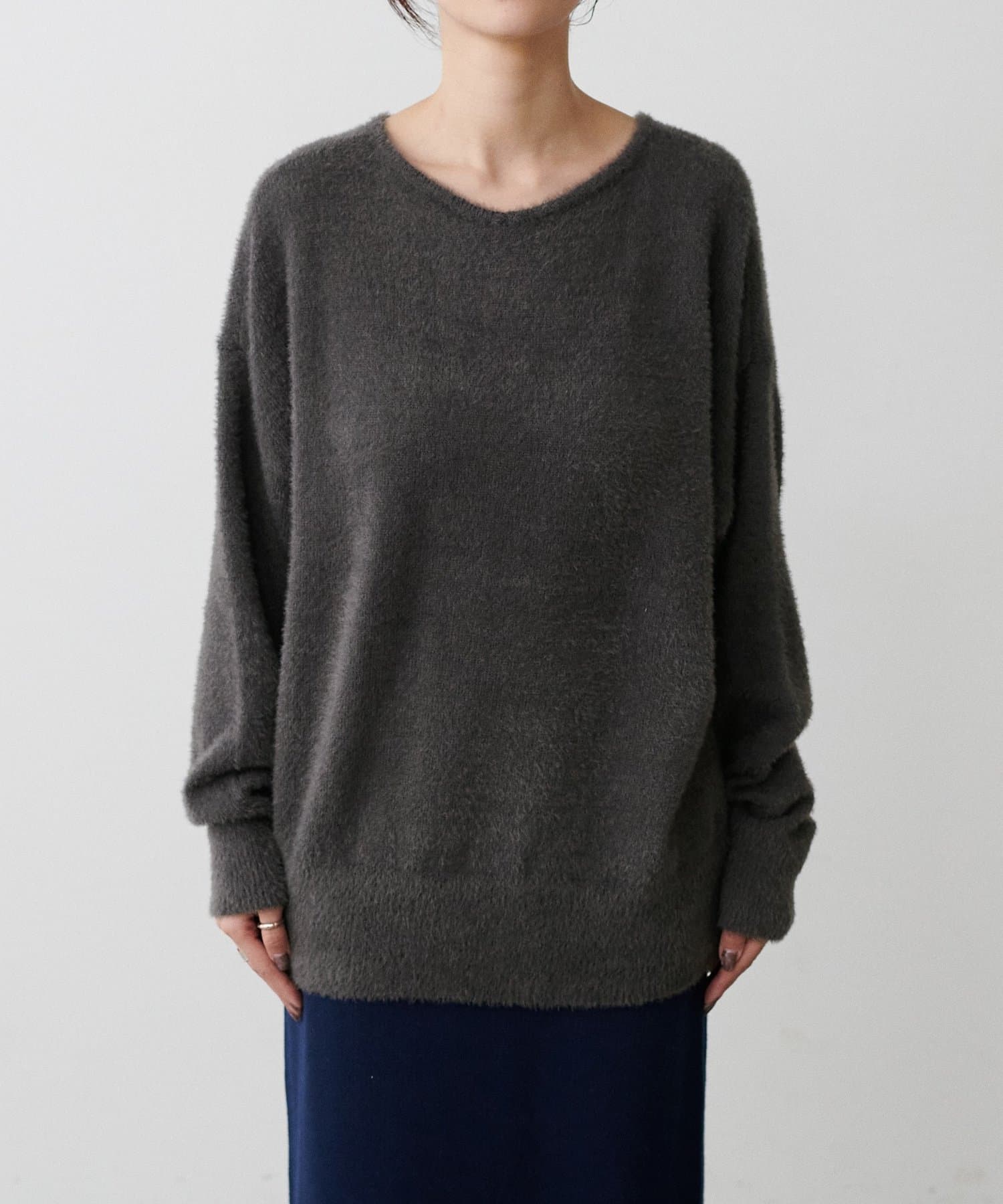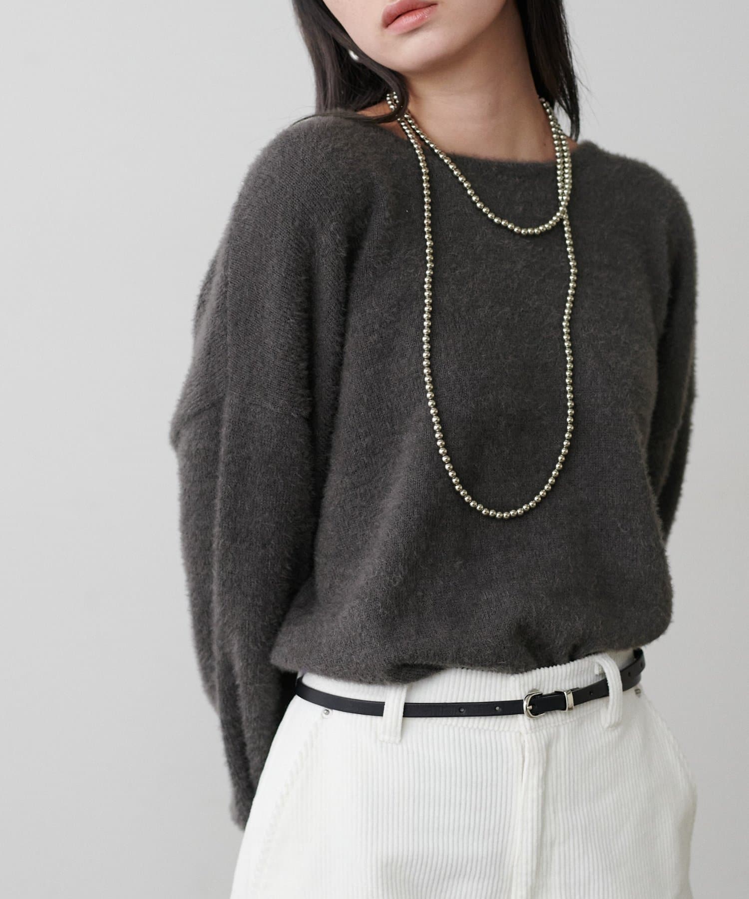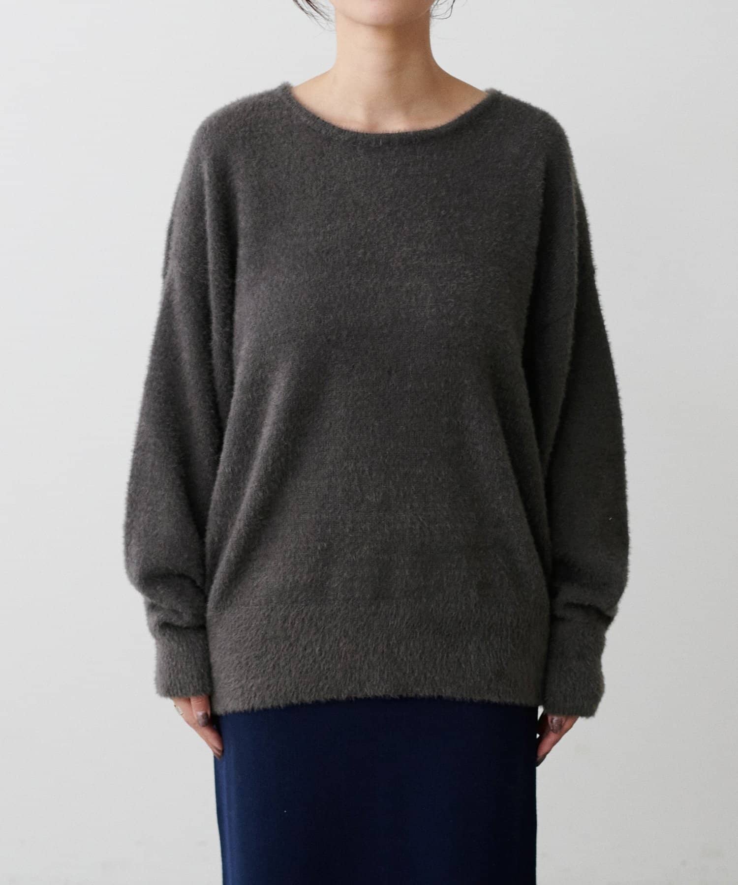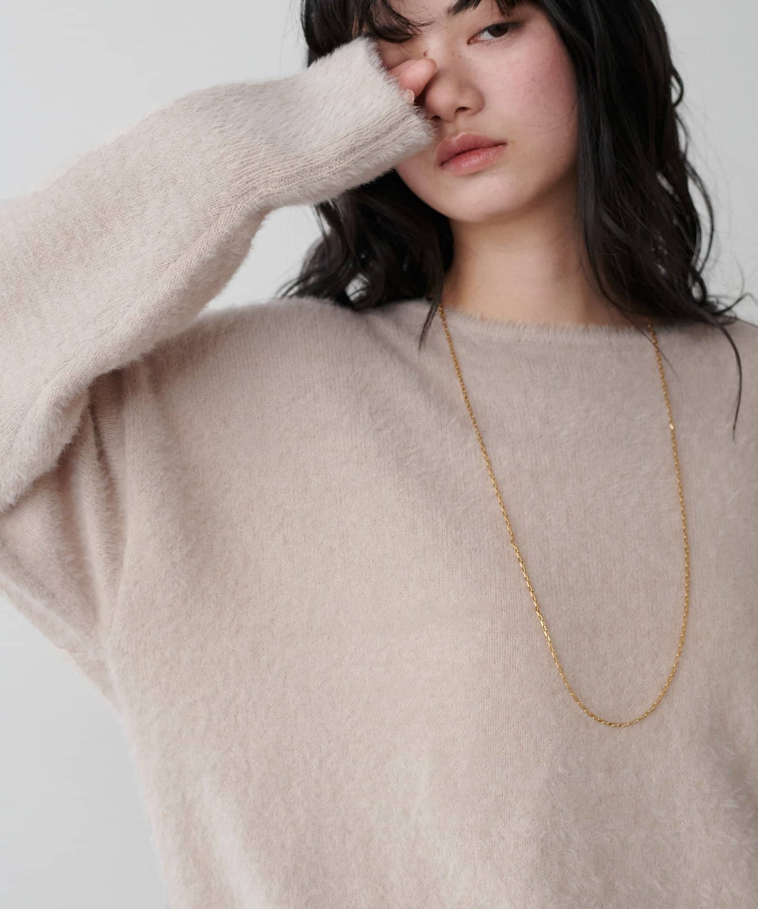 軽さと柔らかさを兼ね備えたミニフェザーニットを使用したプルオーバー。