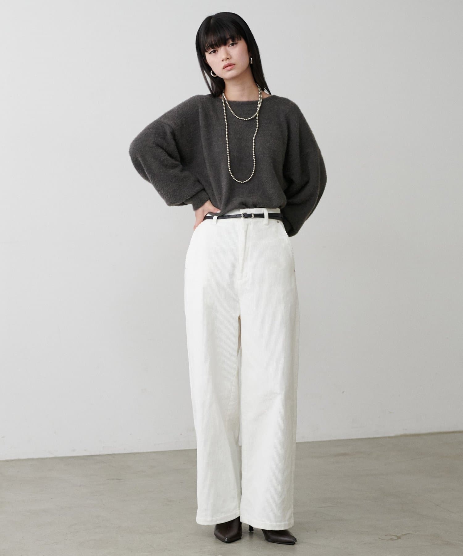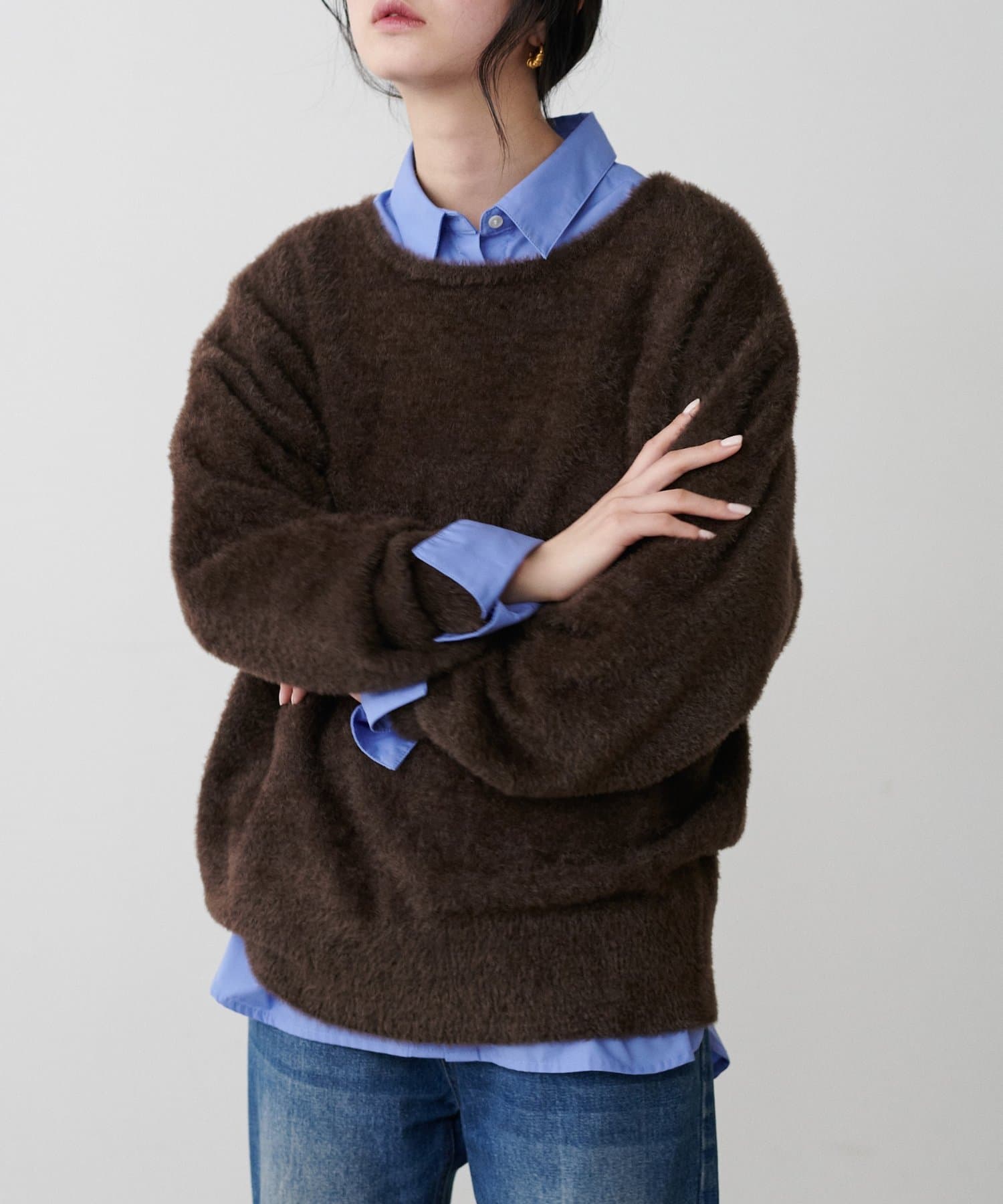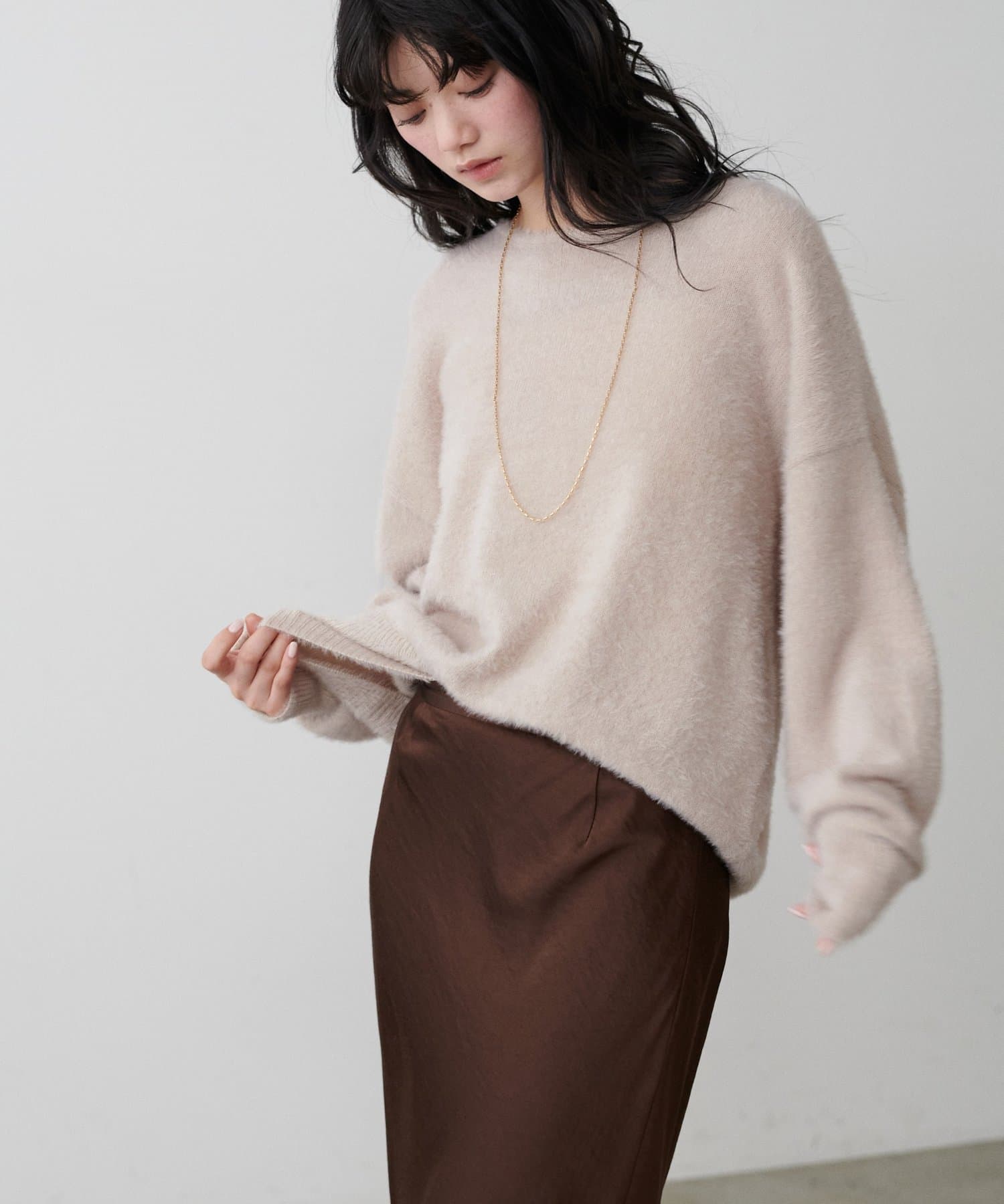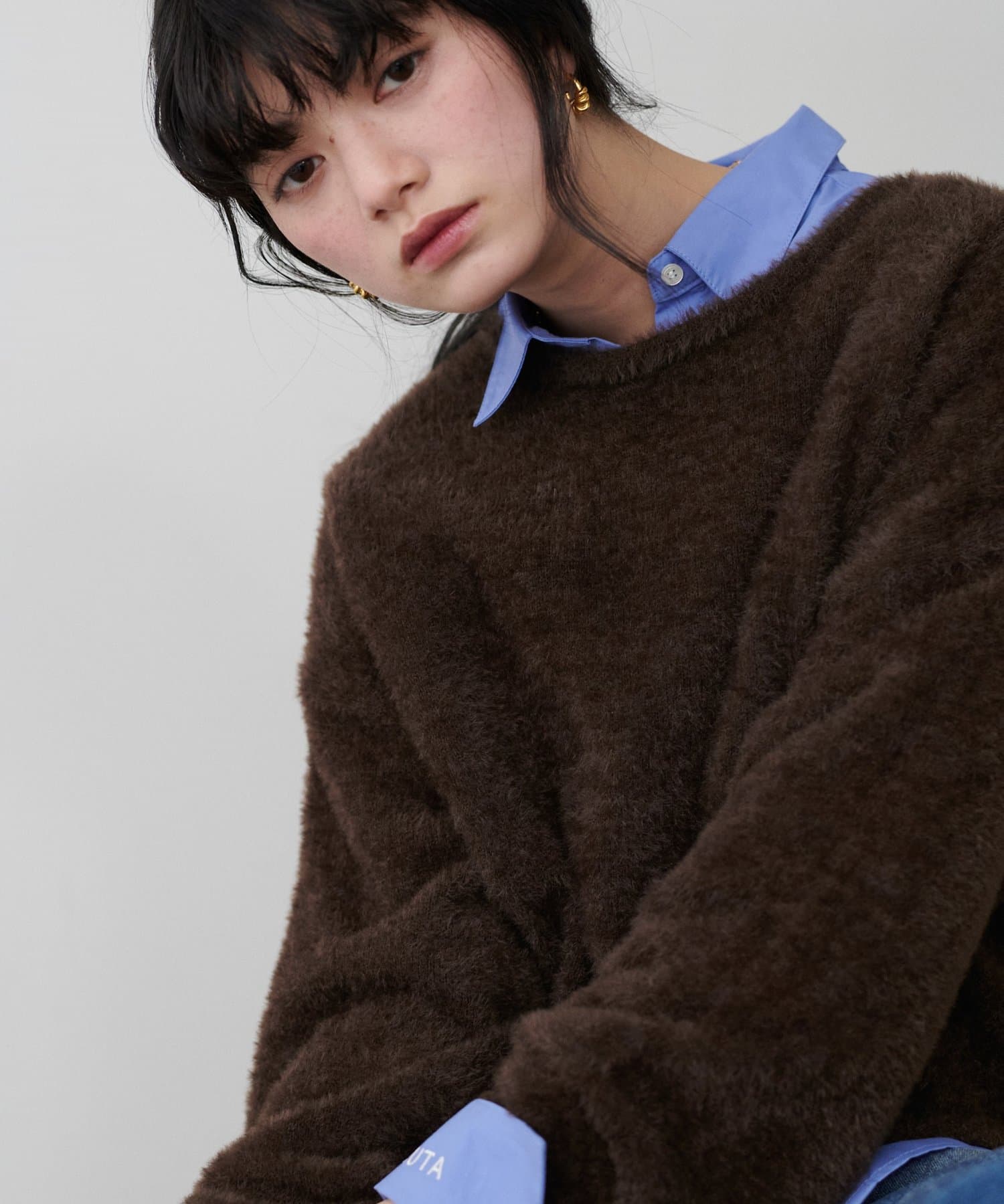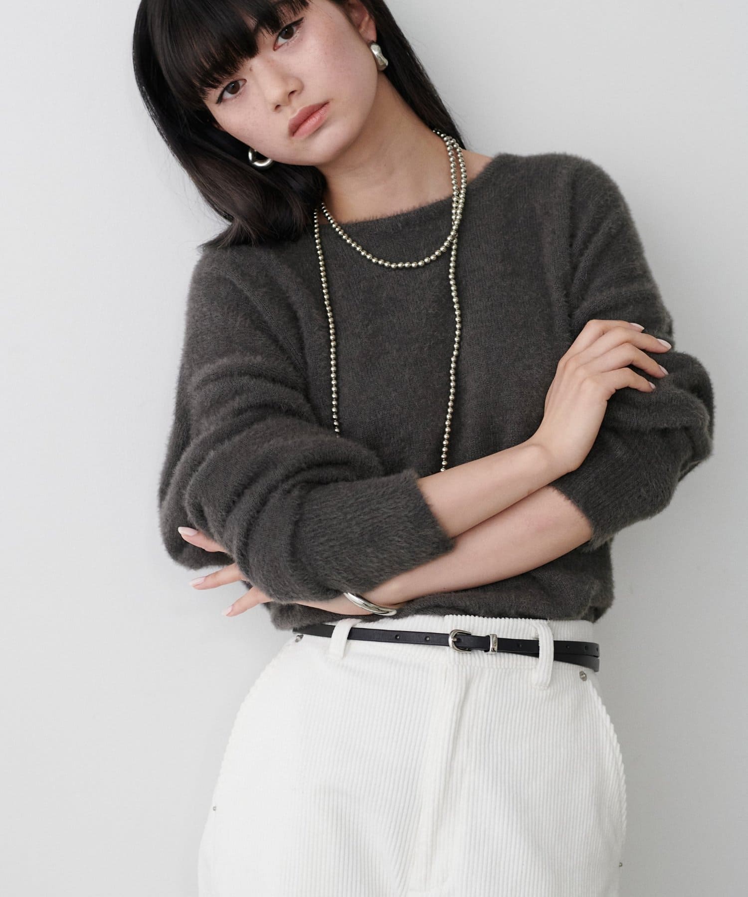 軽さと柔らかさを兼ね備えたミニフェザーニットを使用したプルオーバー。