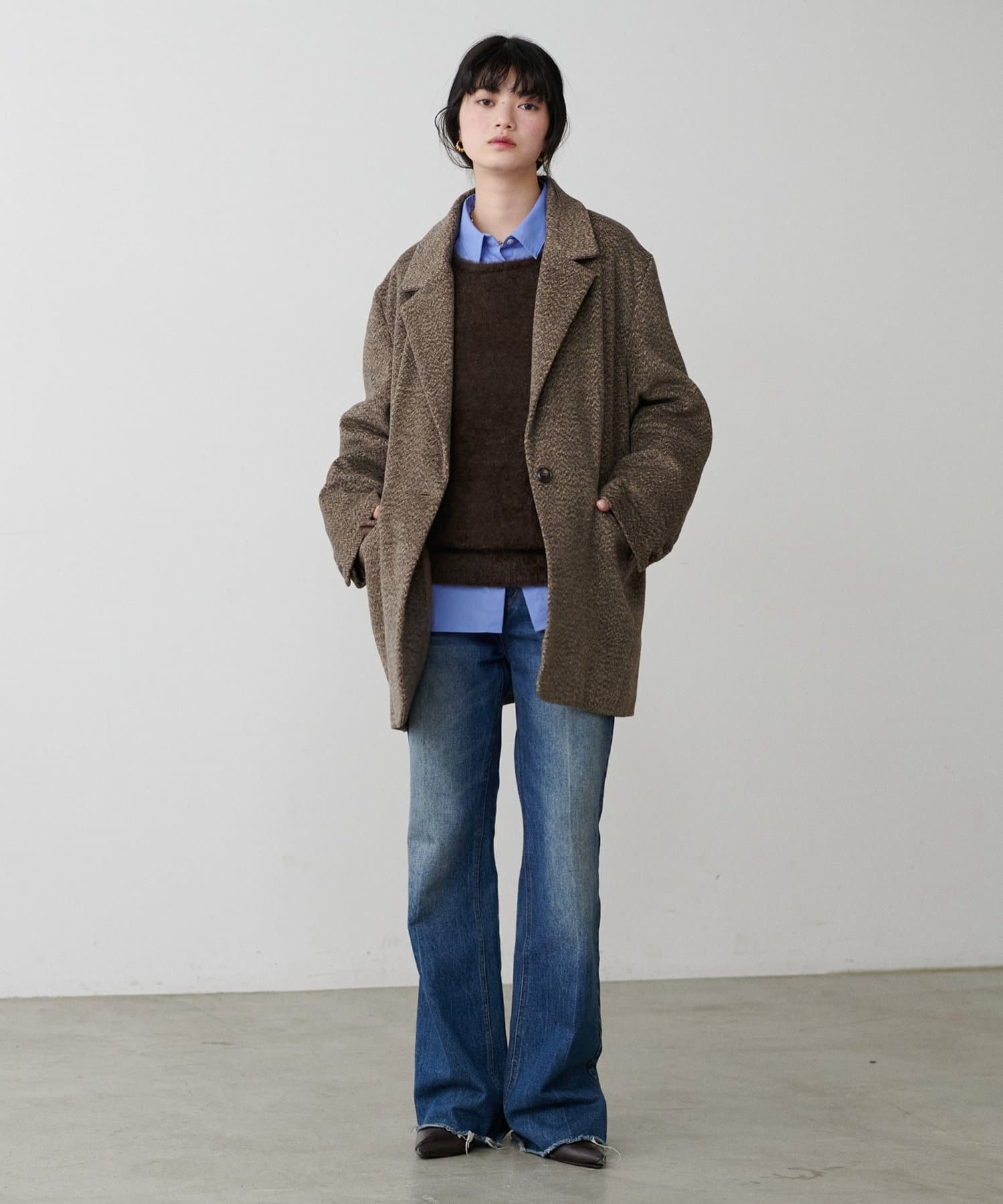 アウターを選ばず、ジャケット・ショートコート・ロングコートまで幅広くレイヤードできます。