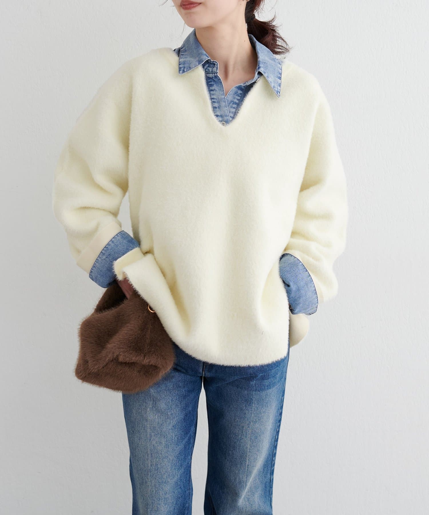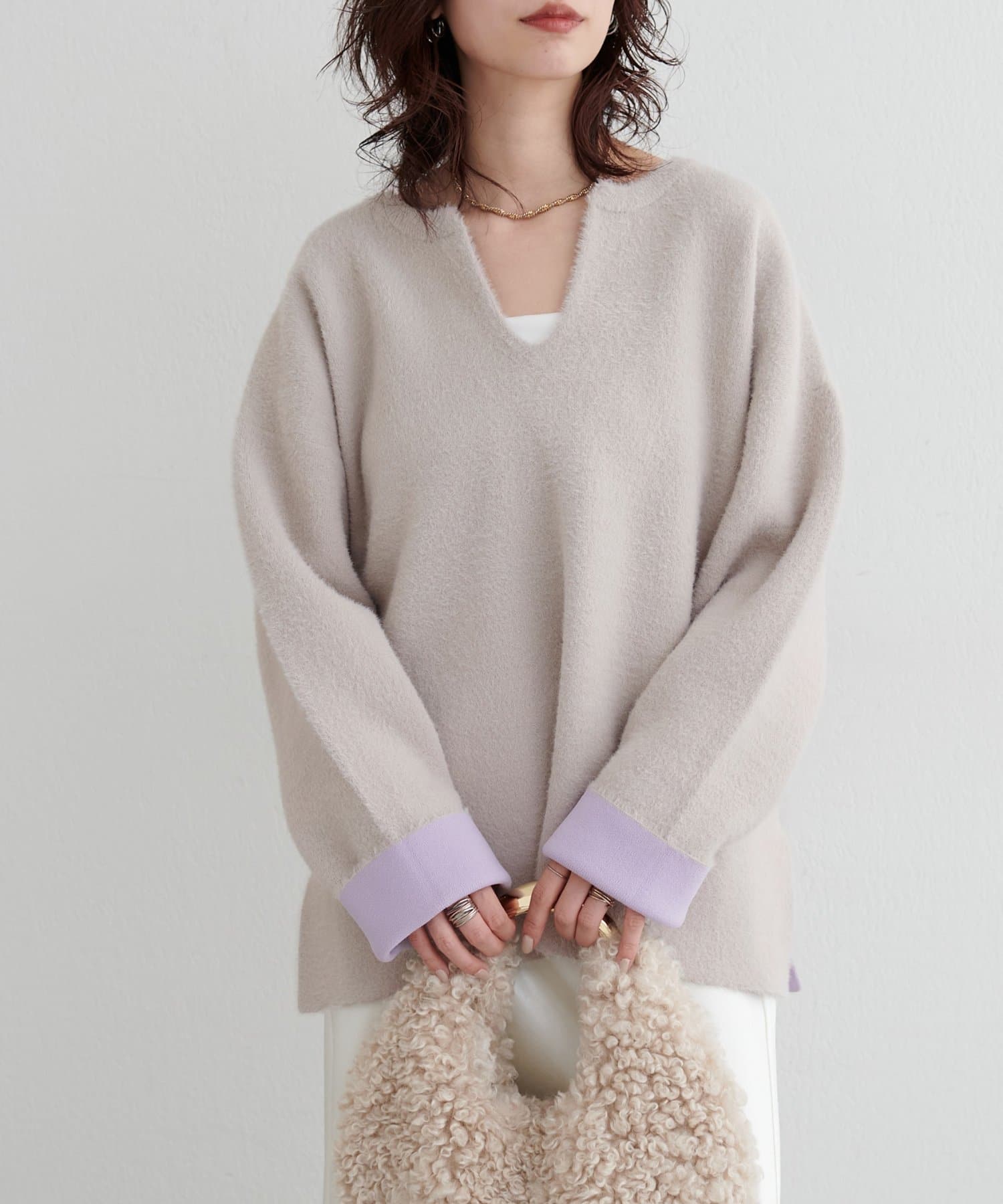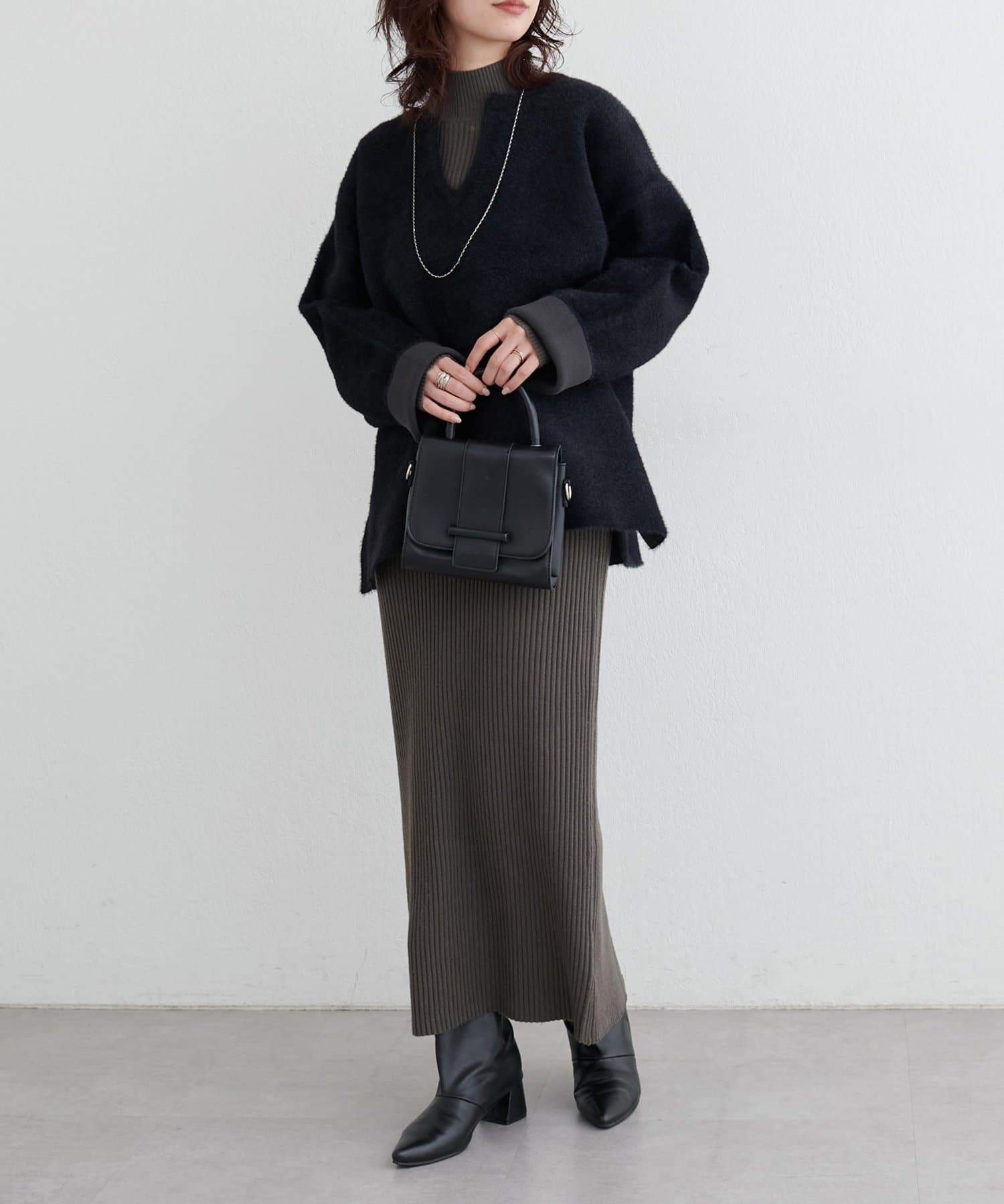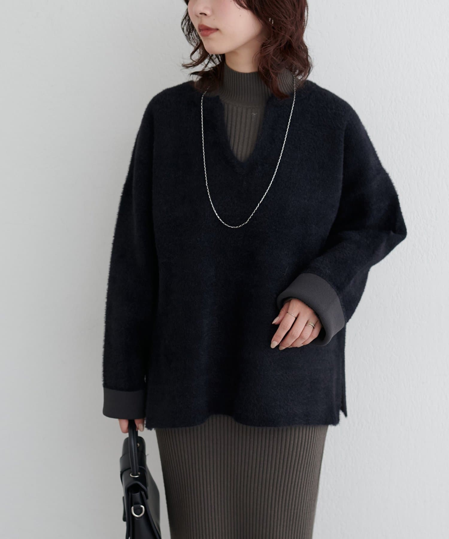 アウターのインにも着やすいボリューム感で、季節の変わり目から春先まで長く活躍します。