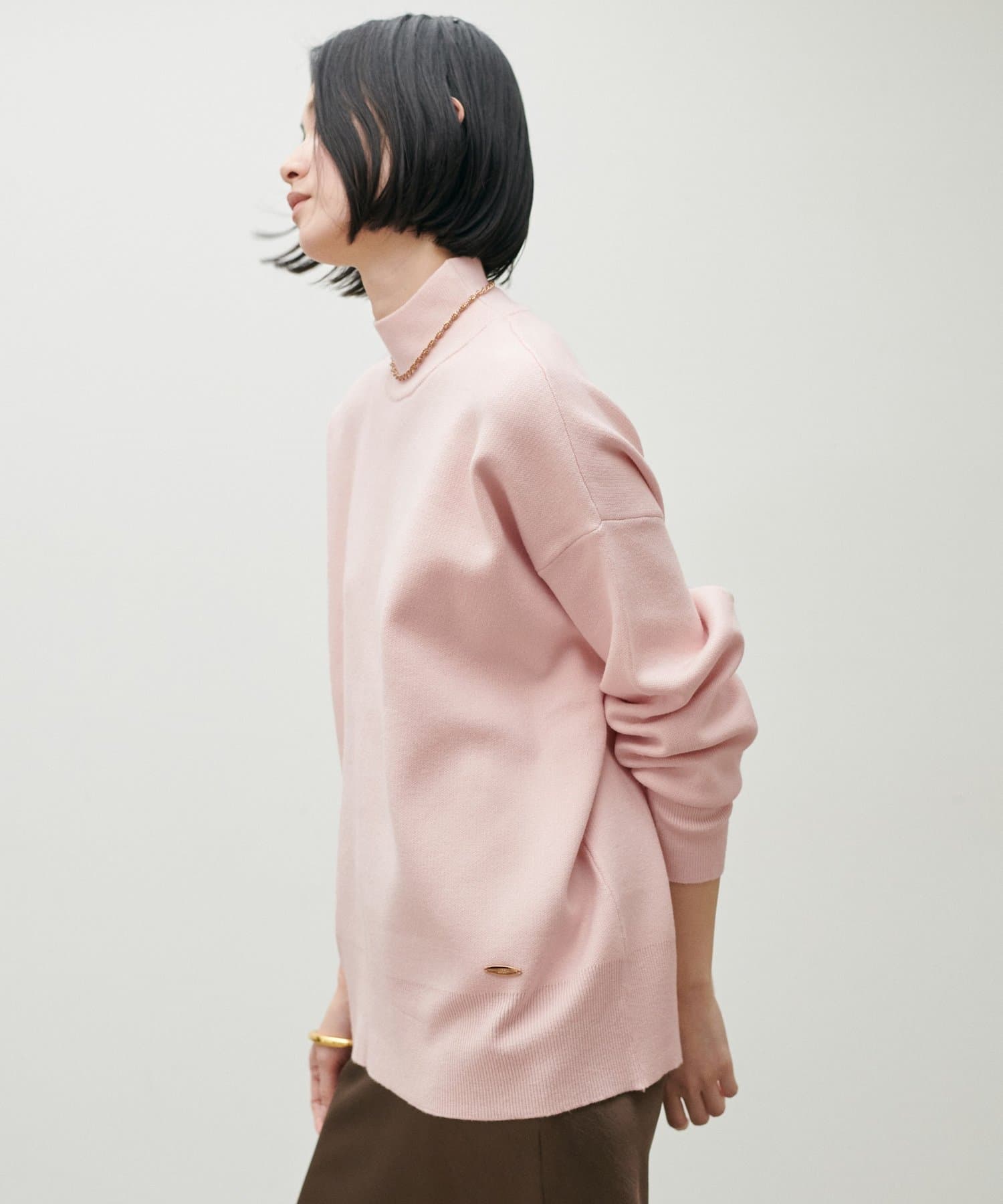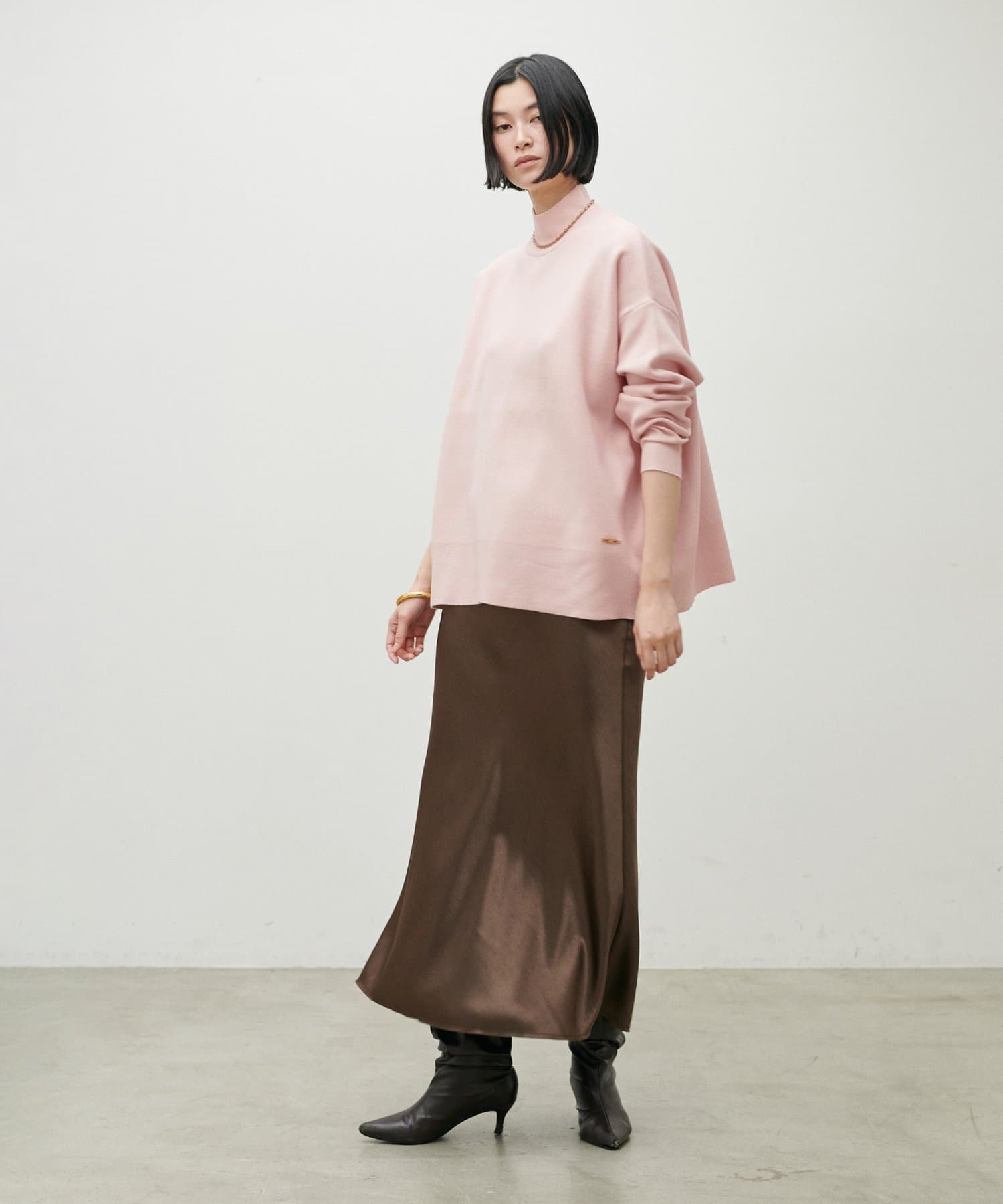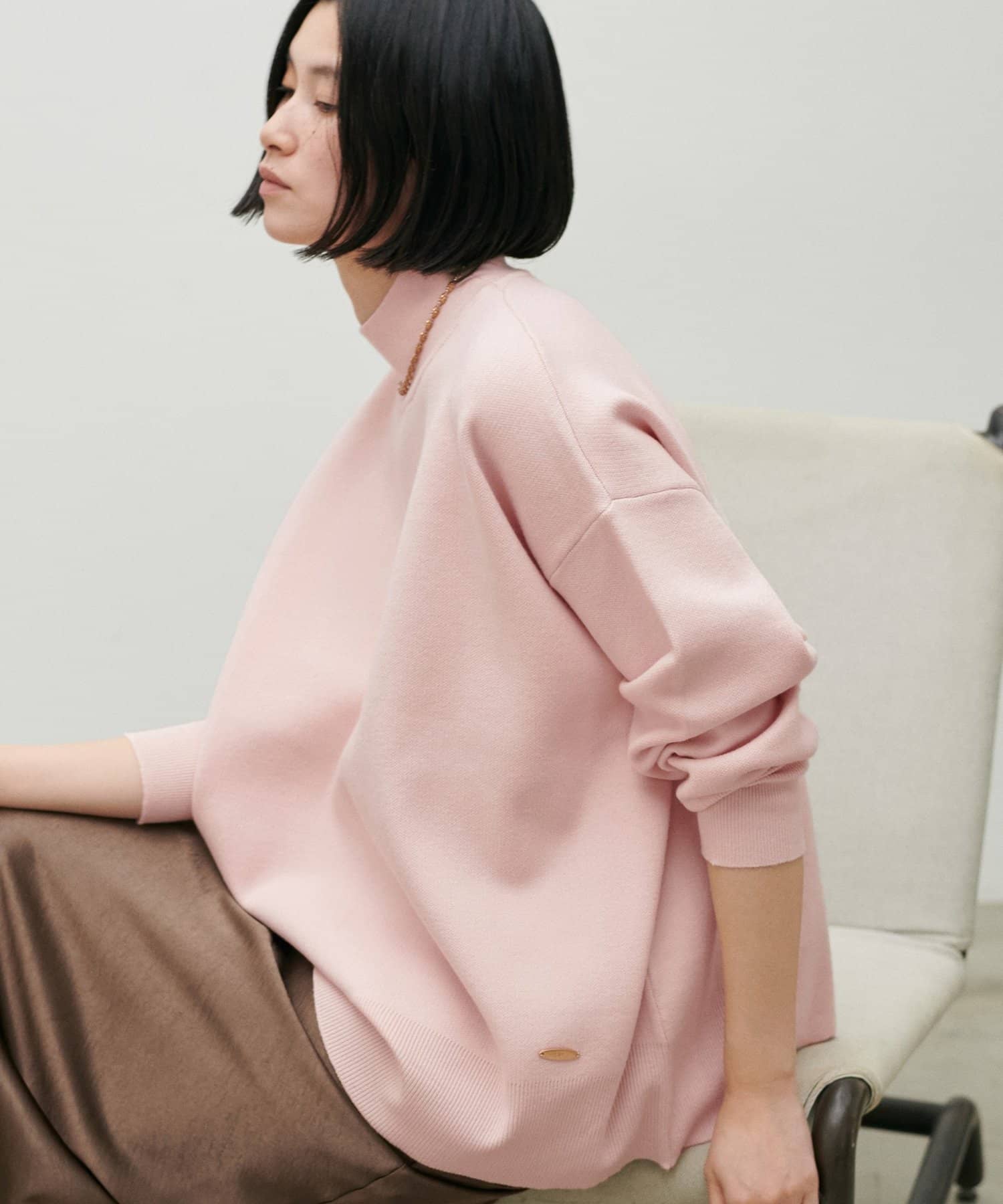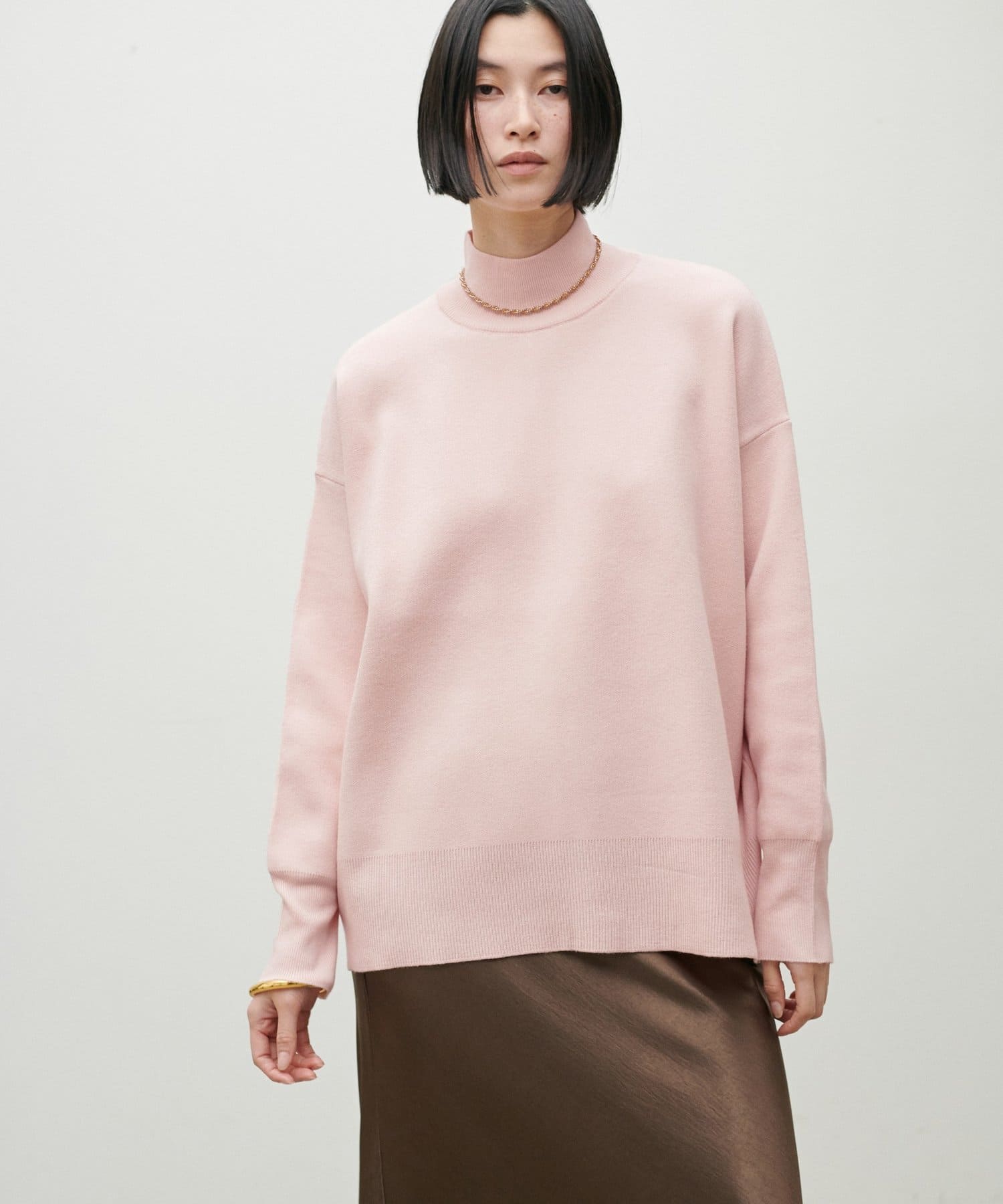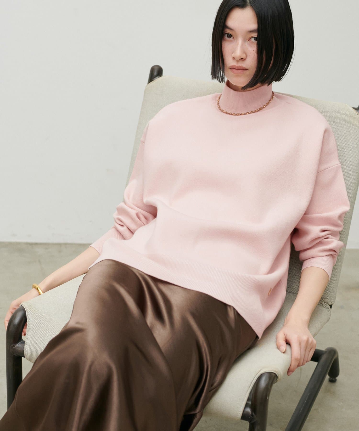 ハイネックは冬時期にも暖かく、デコルテ周りをすっきりと見せてくれるデザインに。