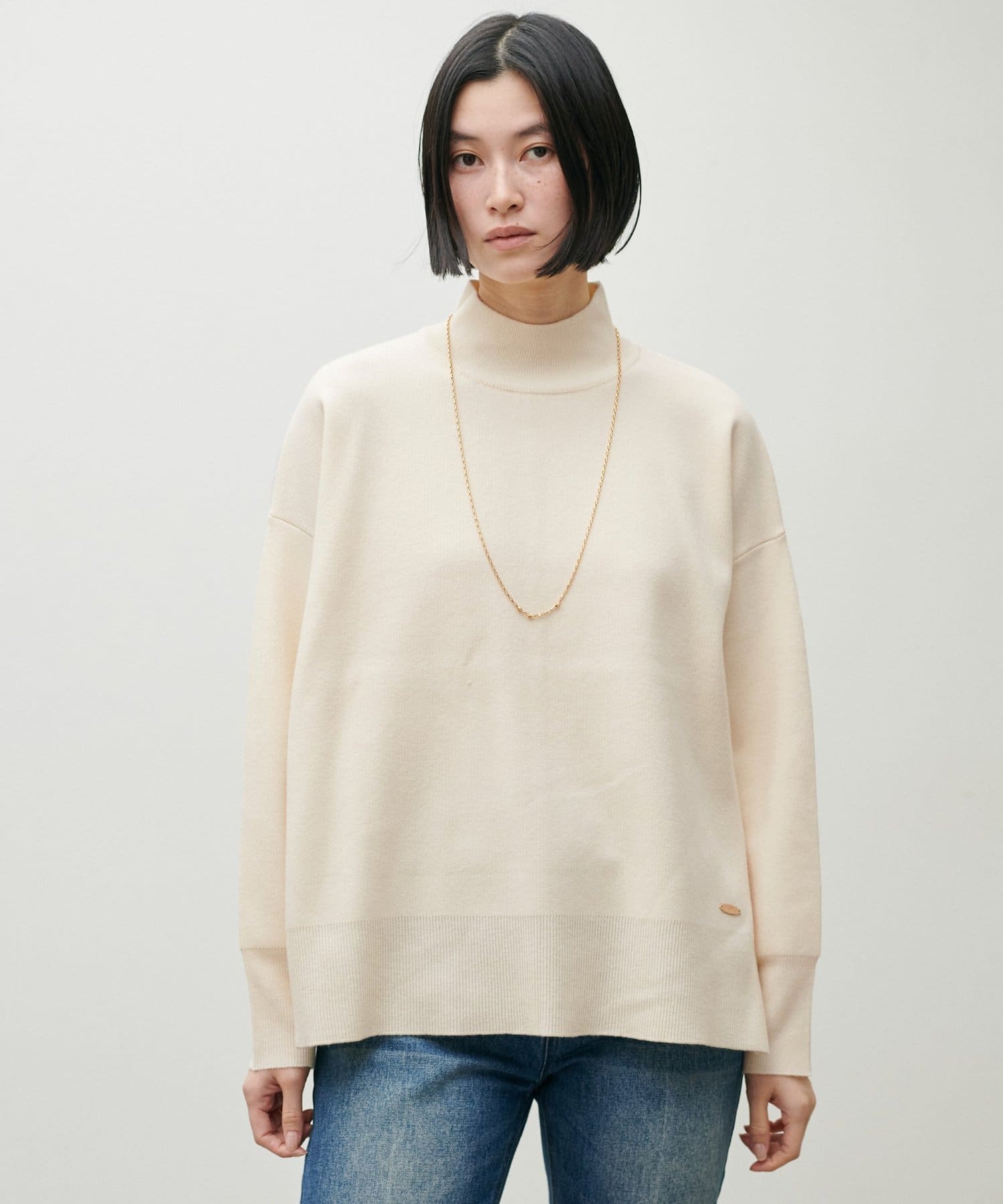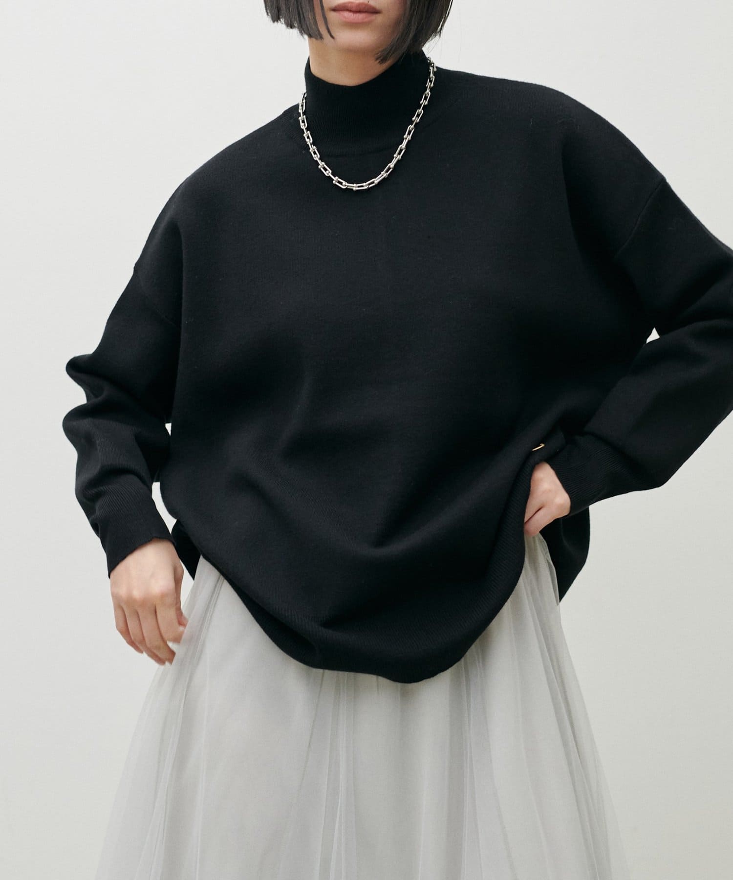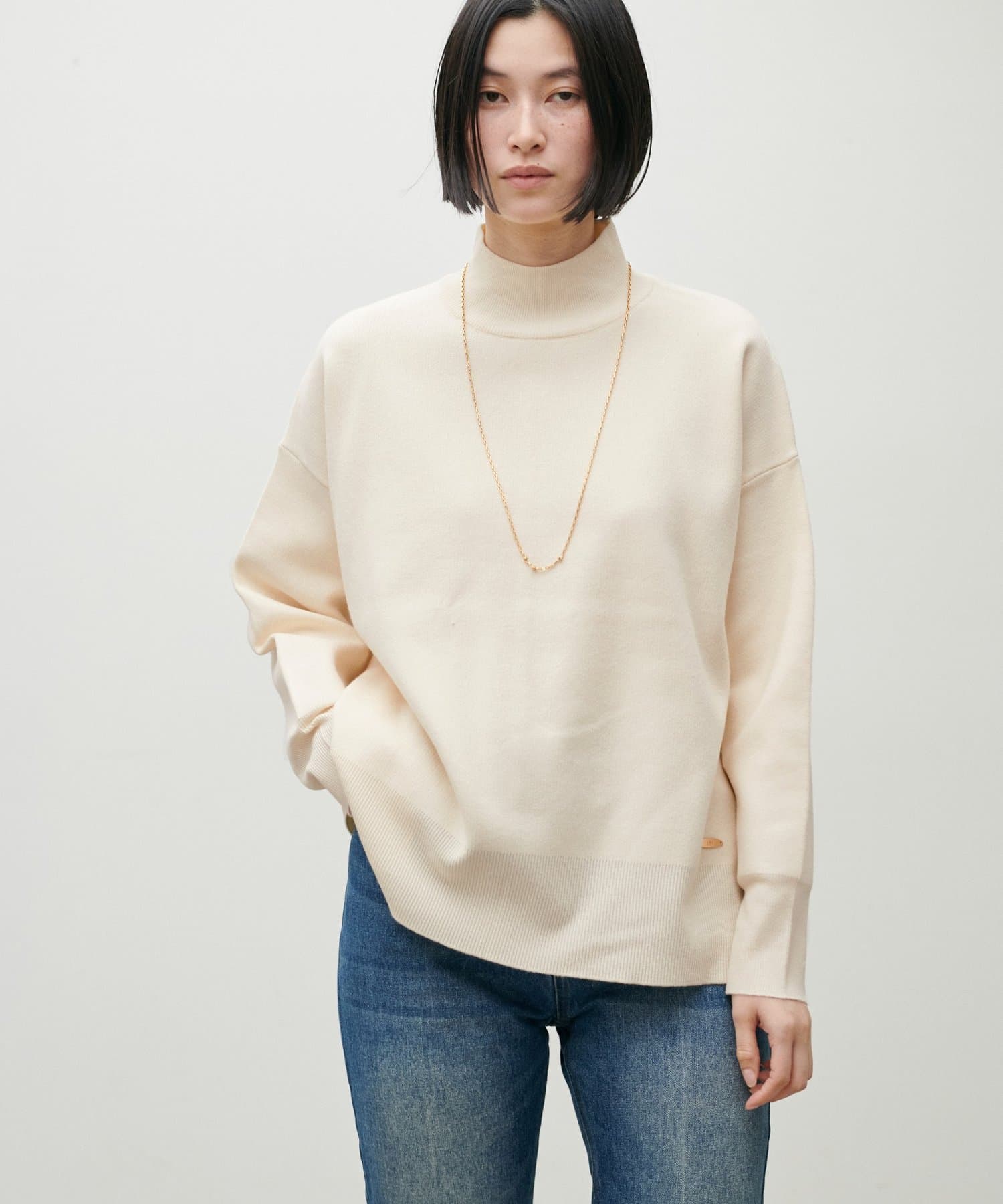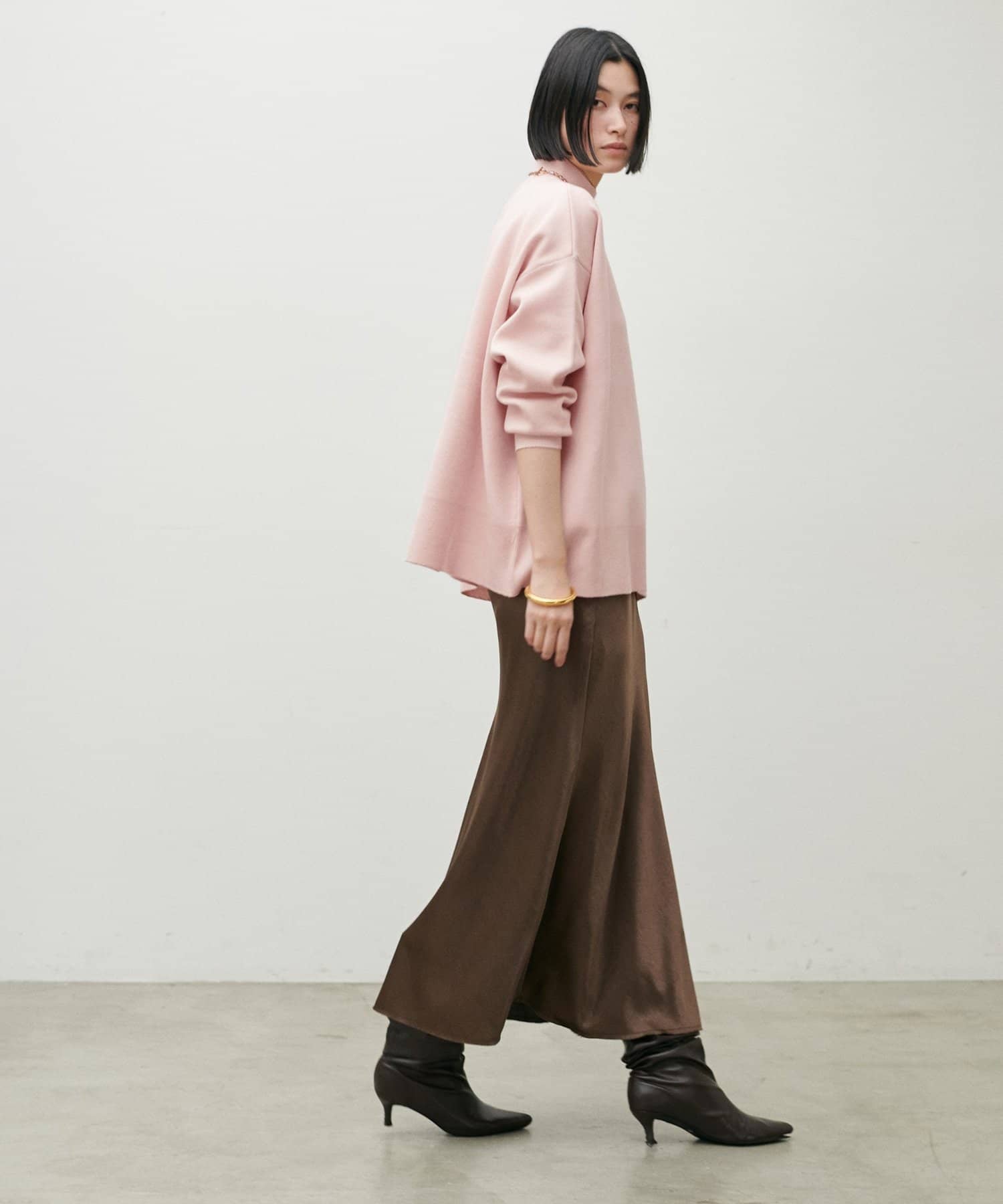 ハイネックは冬時期にも暖かく、デコルテ周りをすっきりと見せてくれるデザインに。