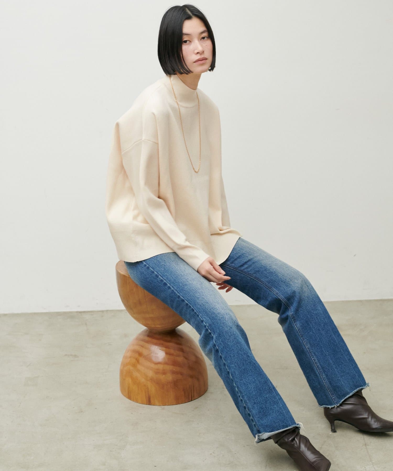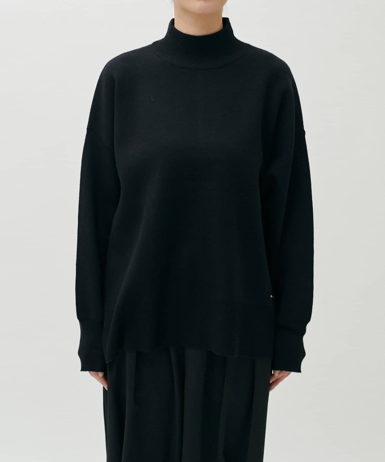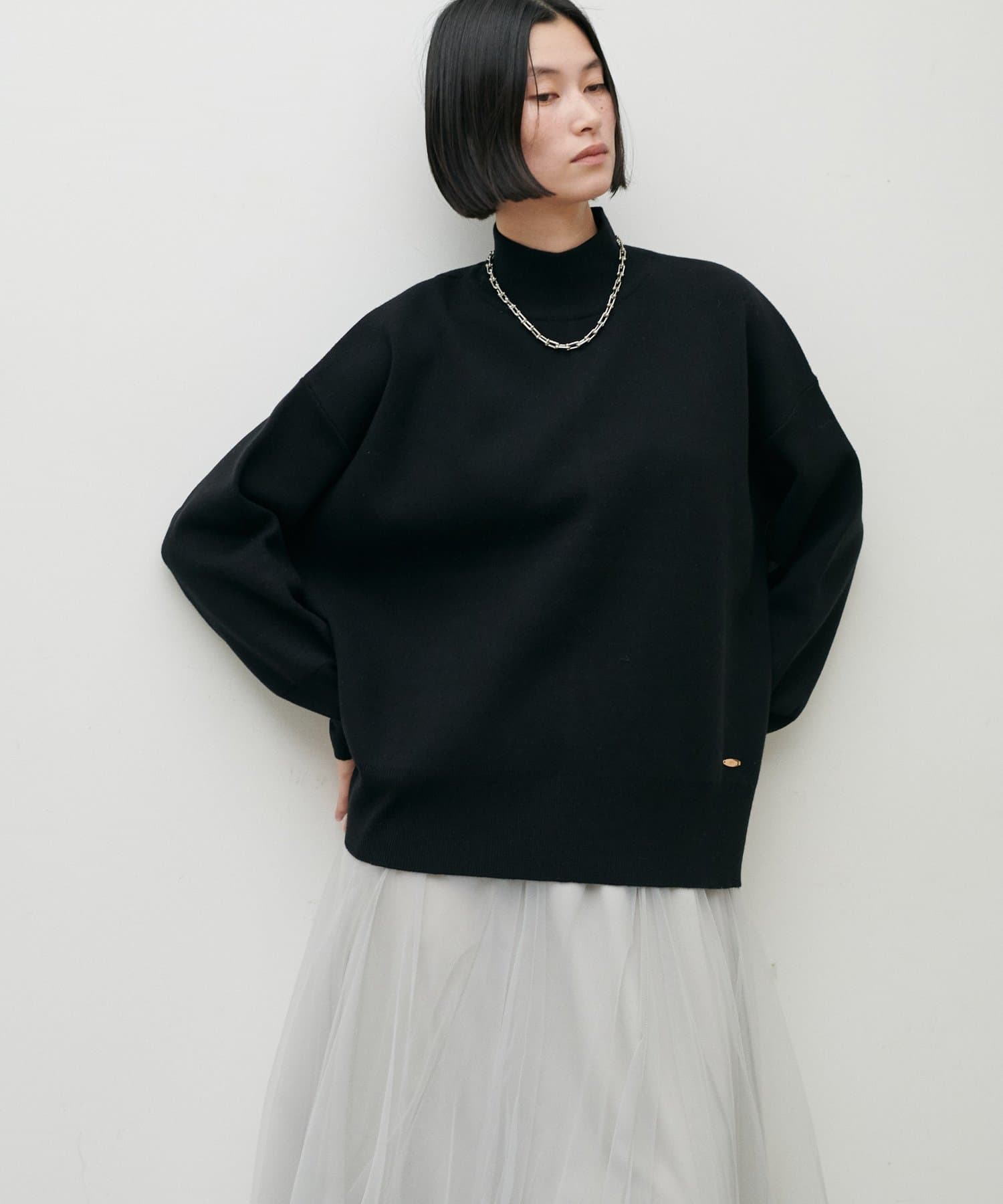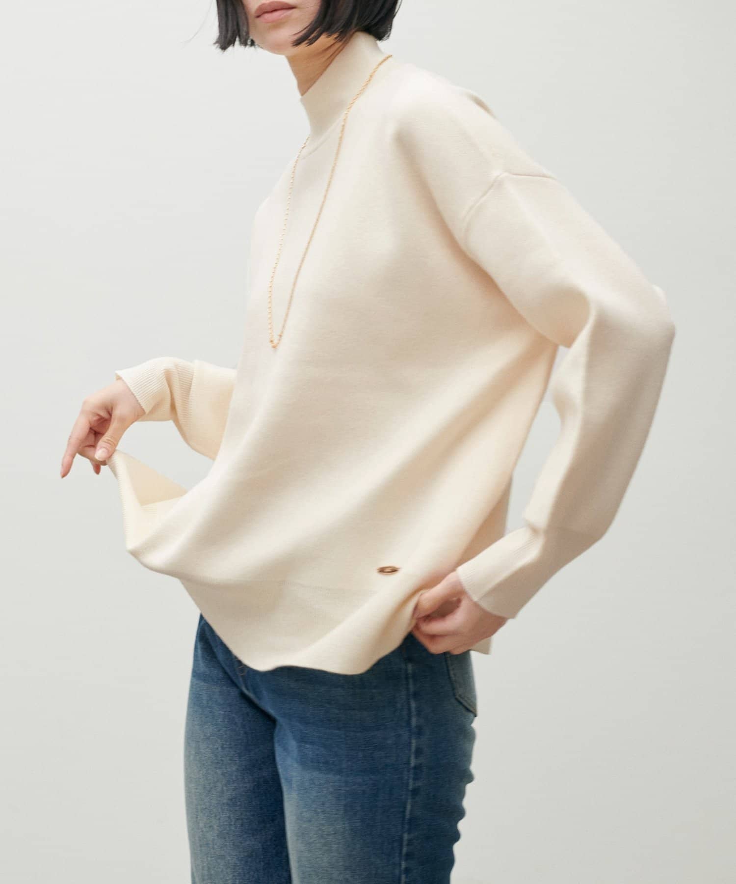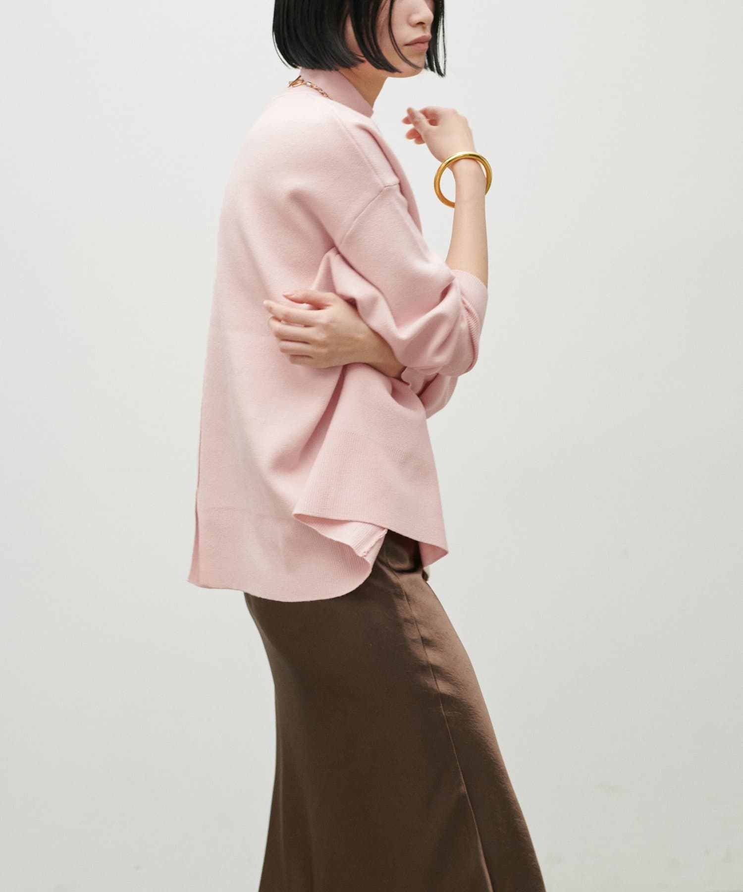 ハイネックは冬時期にも暖かく、デコルテ周りをすっきりと見せてくれるデザインに。