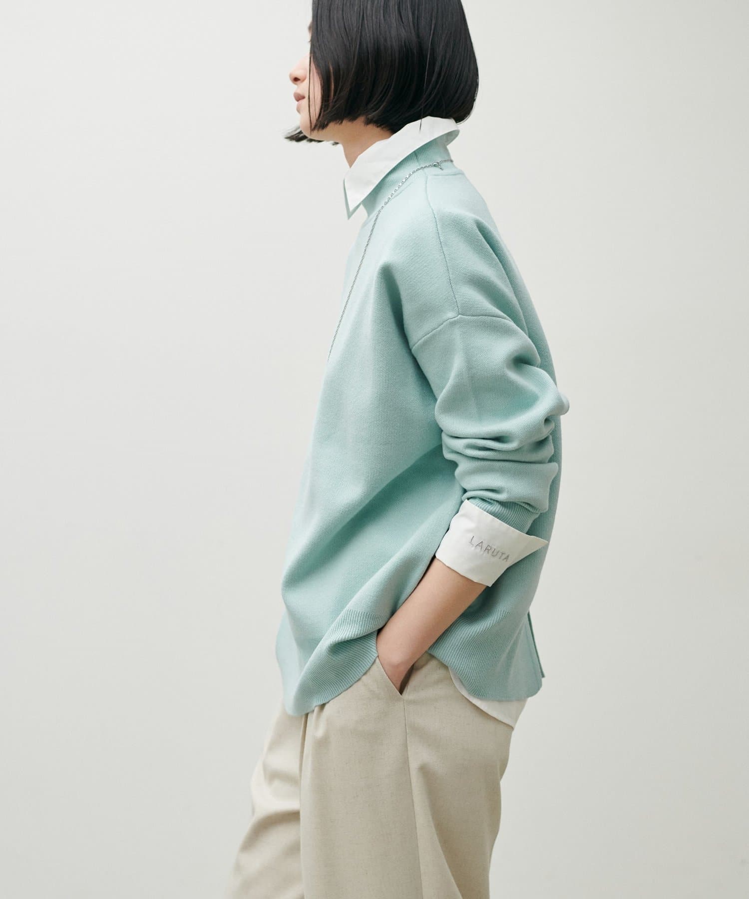 身体のラインを拾わないゆとりのあるサイジングに、レーヨンを含んだやや落ち感のある生地で