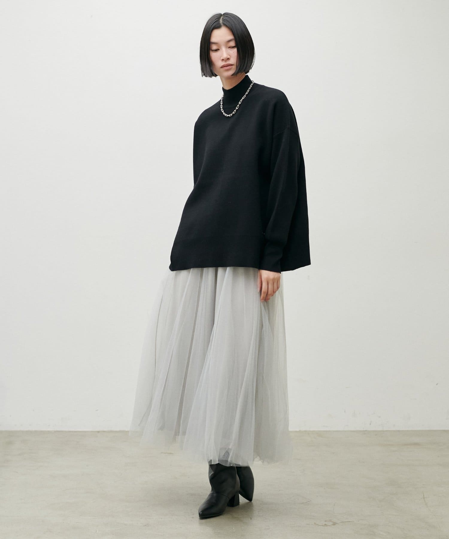 デニムパンツやチュールスカートなど、どんなテイストにもマッチする万能さです。