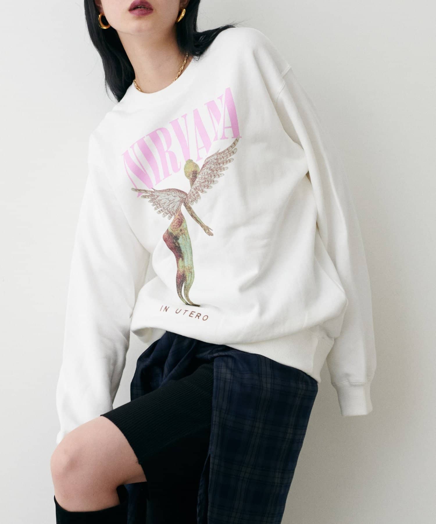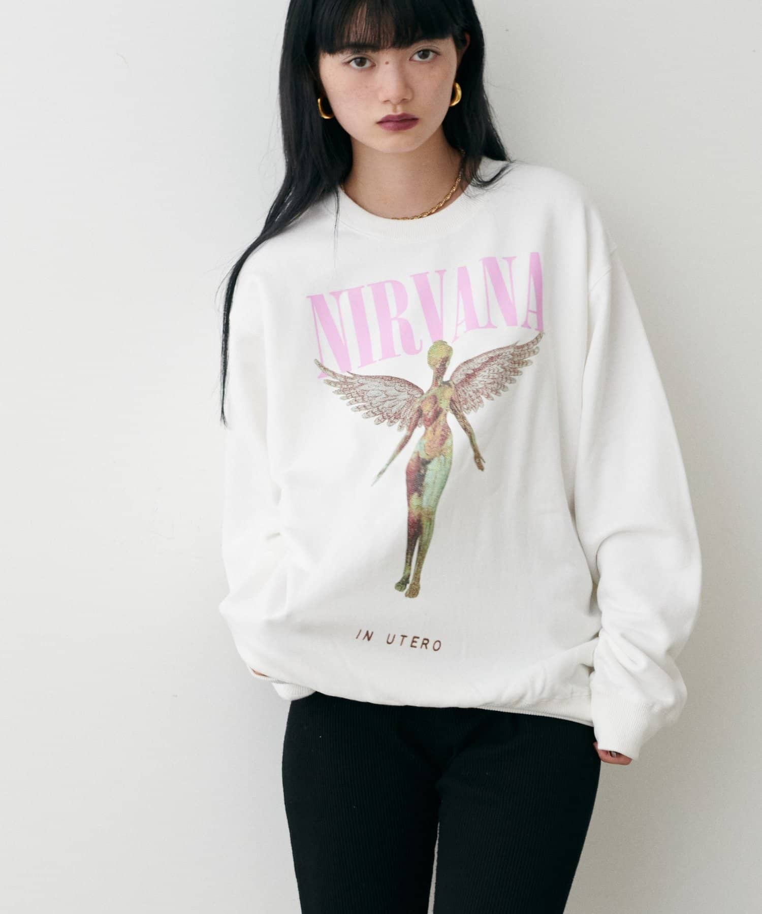 NIRVANAのアイコニックなロゴが映える、存在感抜群のプリントスウェット。