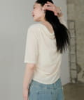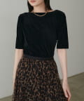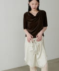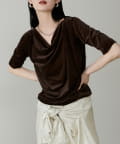 シアーベロア5分袖ドレーププルオーバー
