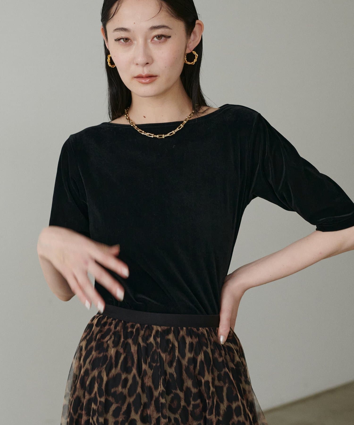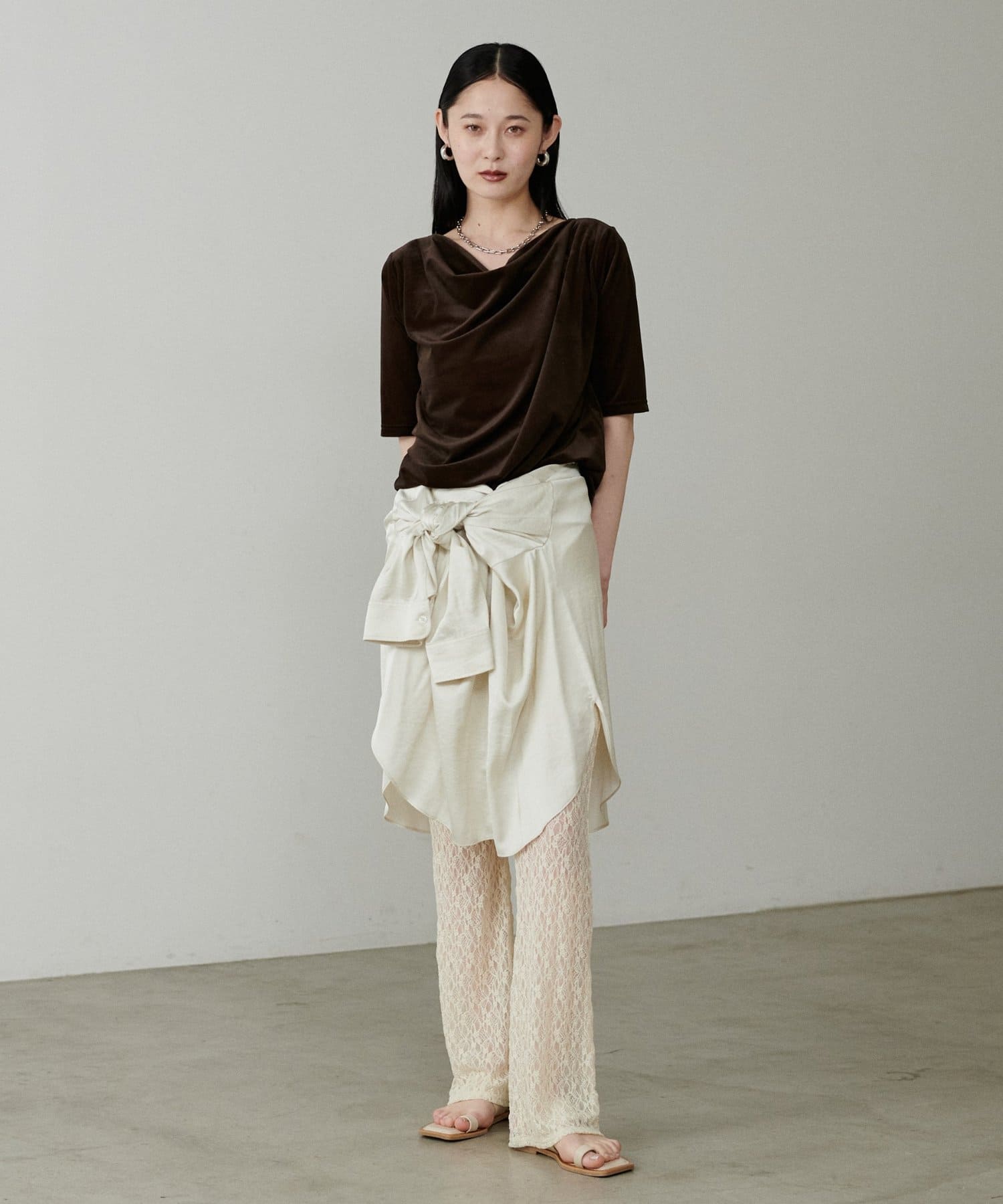 光沢感と透け感が特徴のベロア素材を使用。