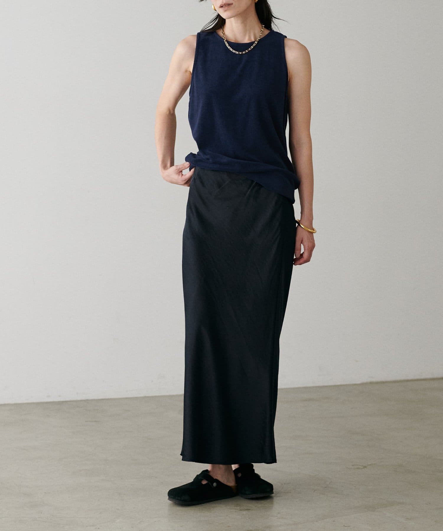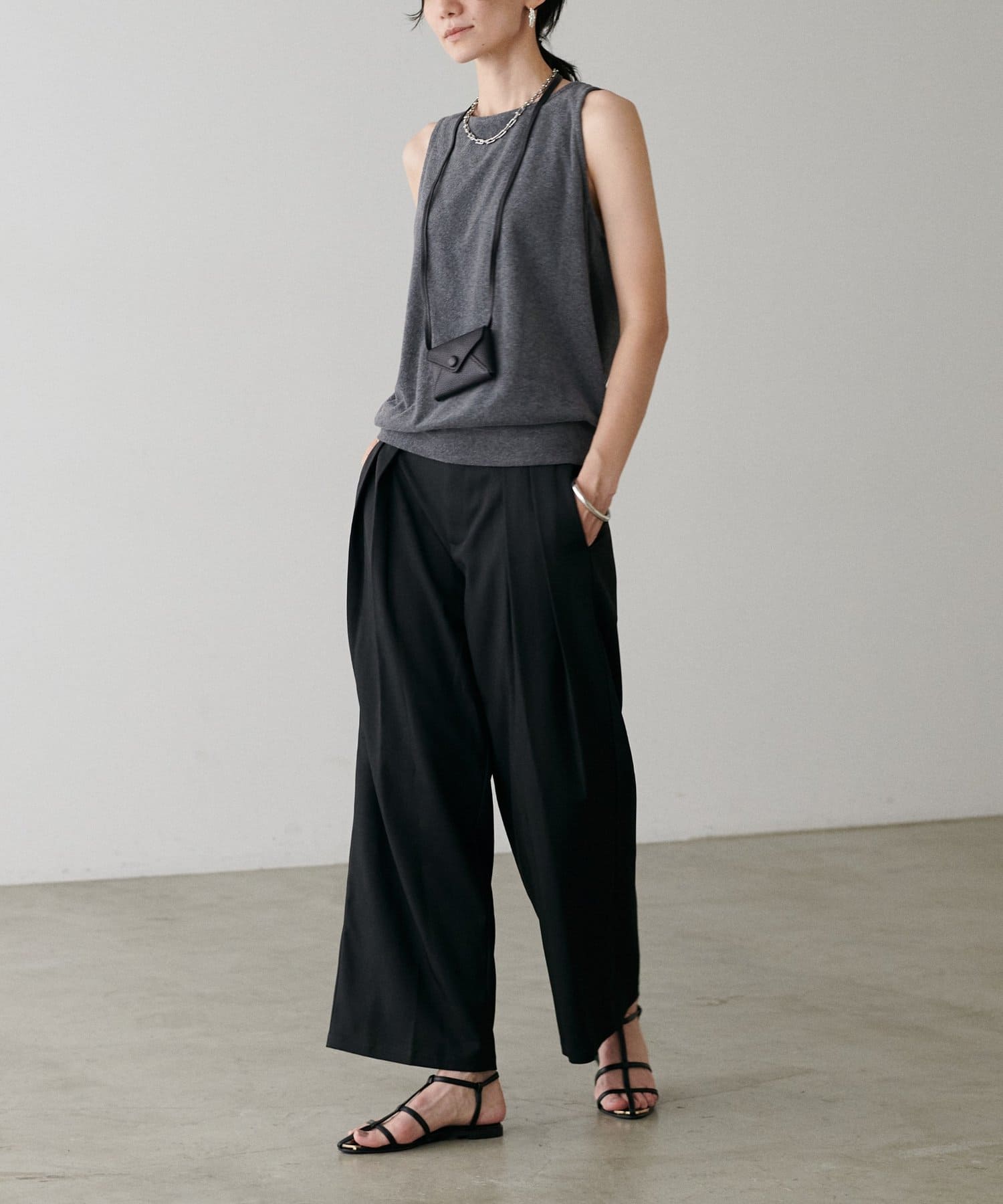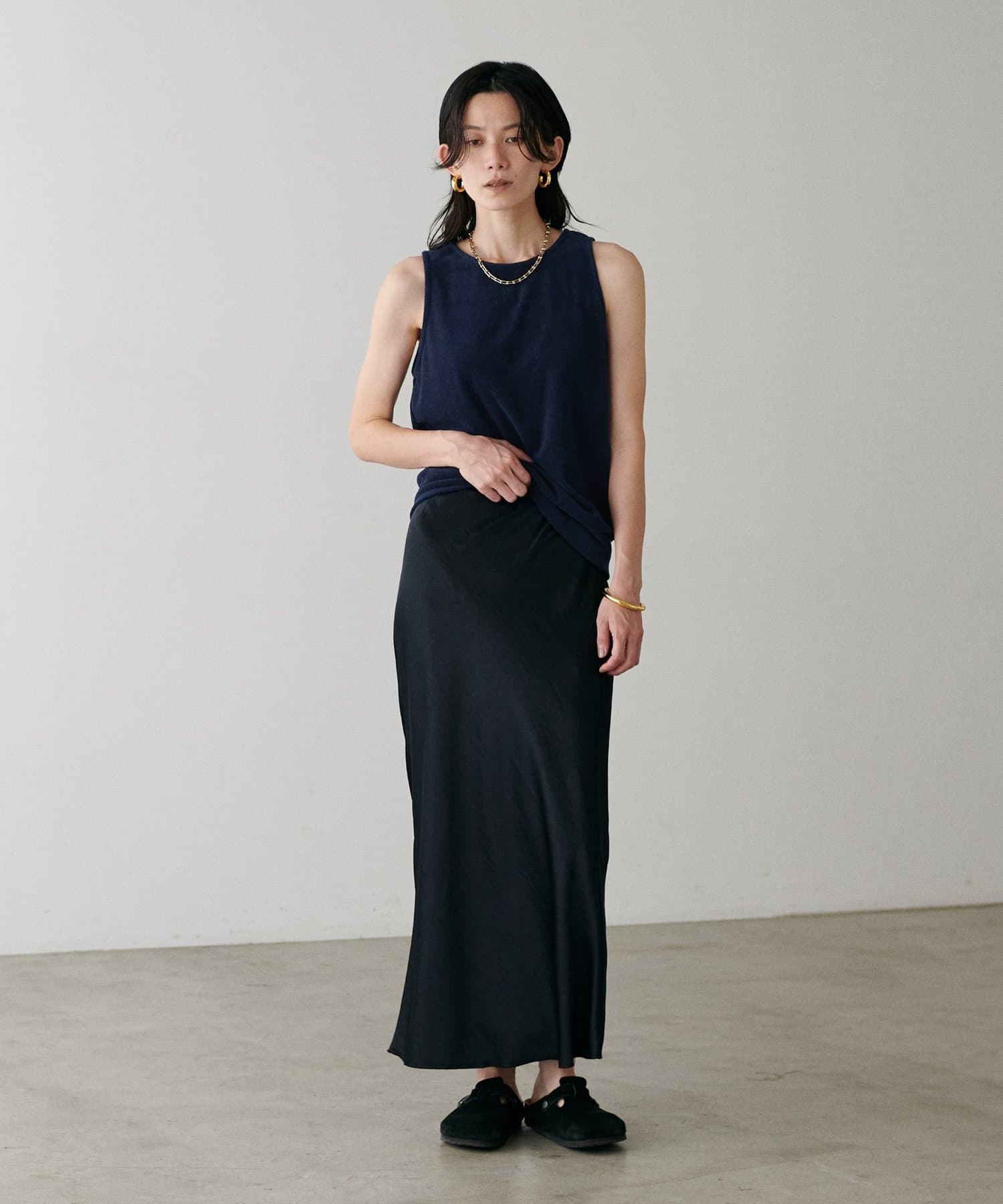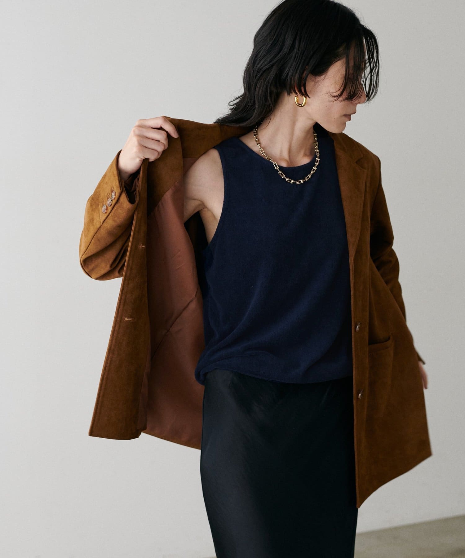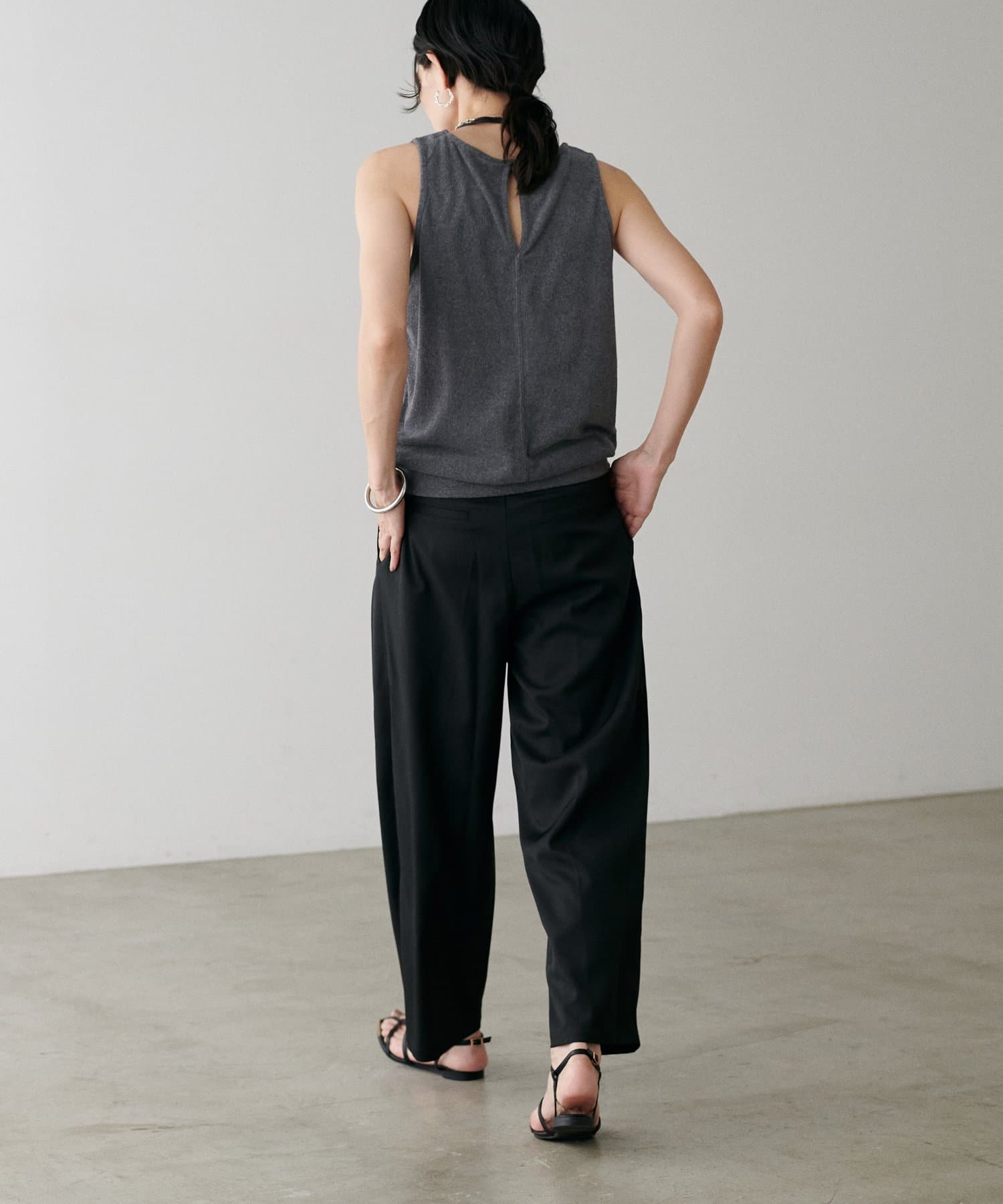 ふんわりとした柔らかいパイル素材で仕立てた、肌あたり抜群のノースリーブトップス。