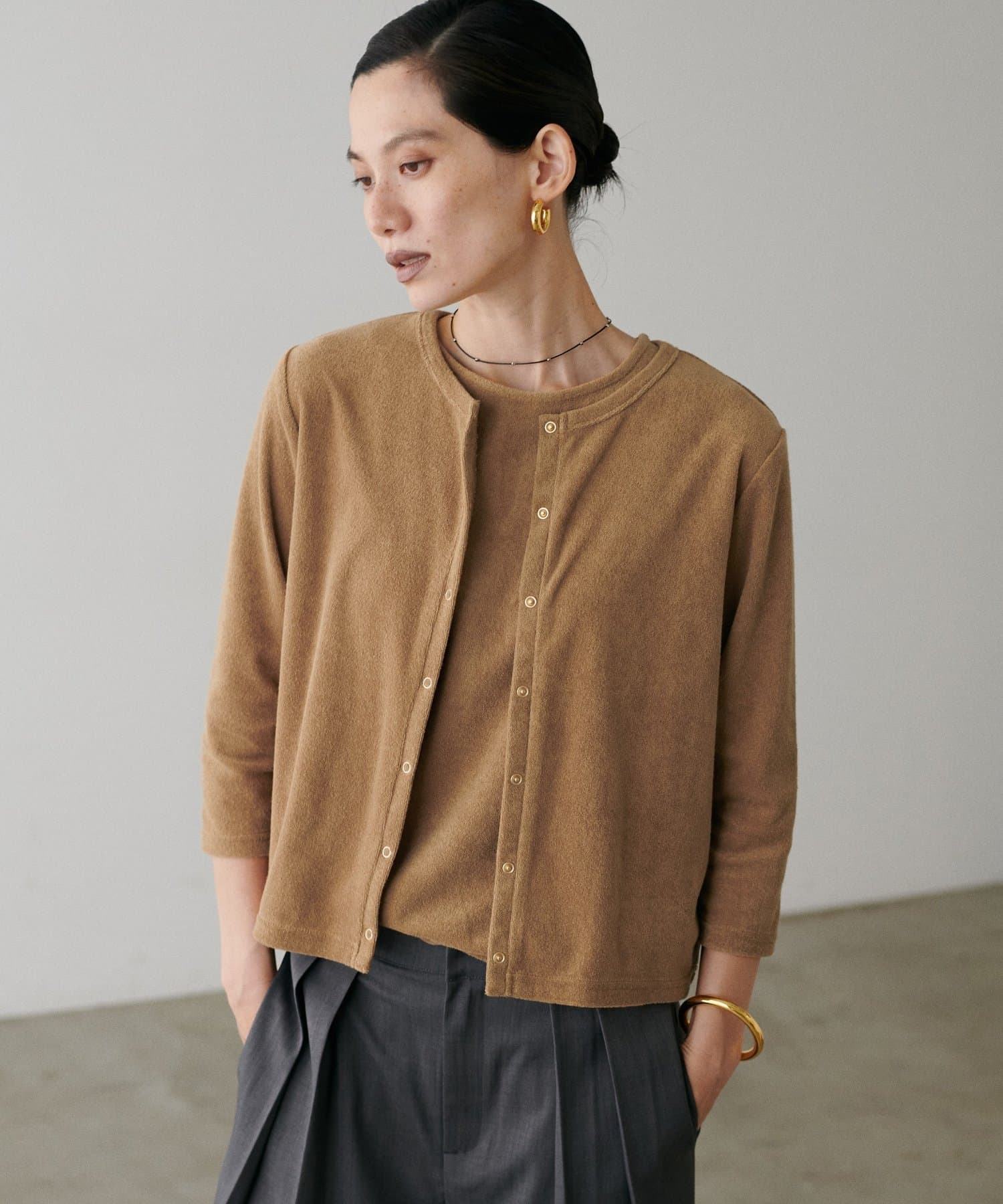 同素材の3052060140 パイル地前後2WAY カーディガンとセットアップで着用したり、