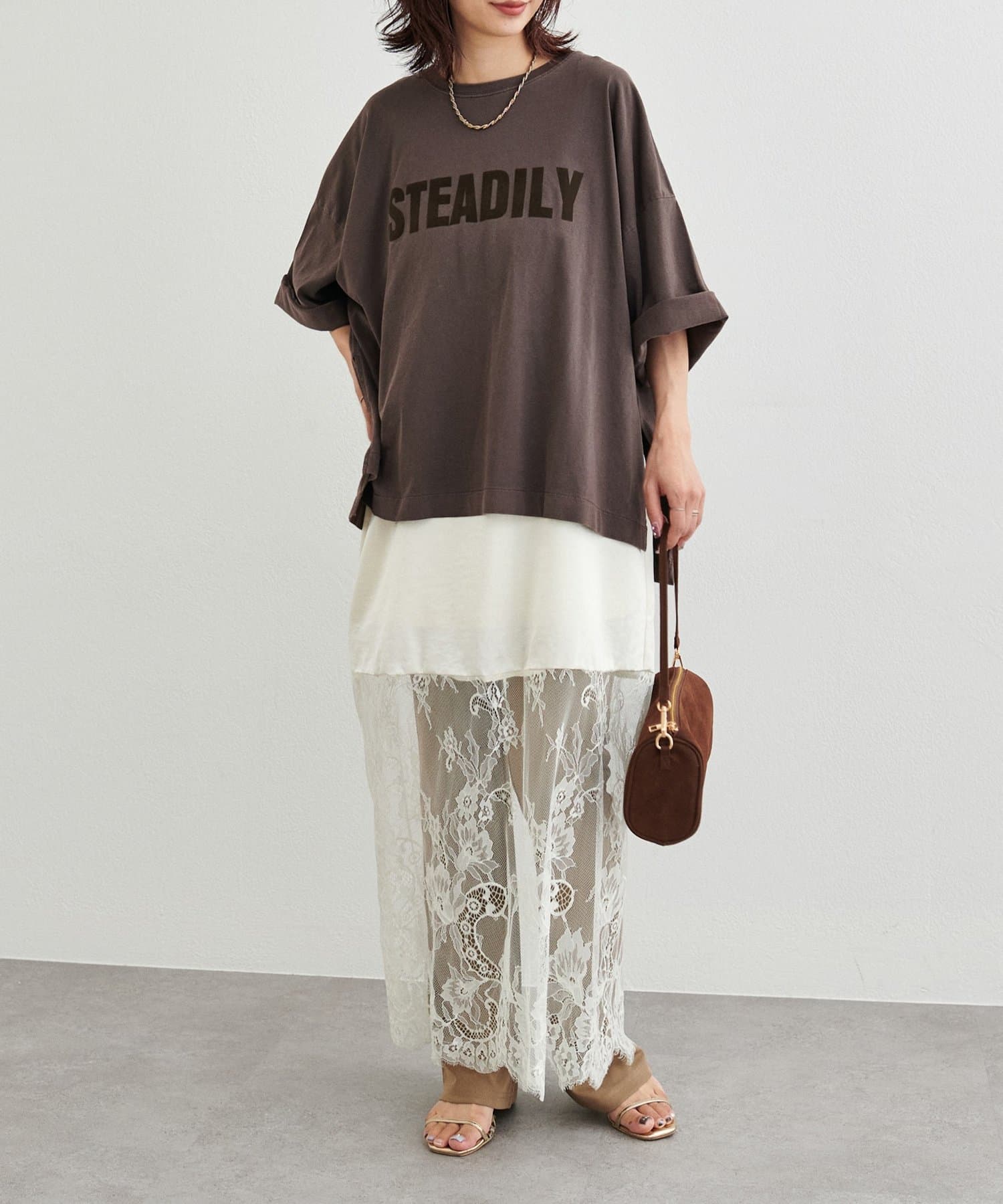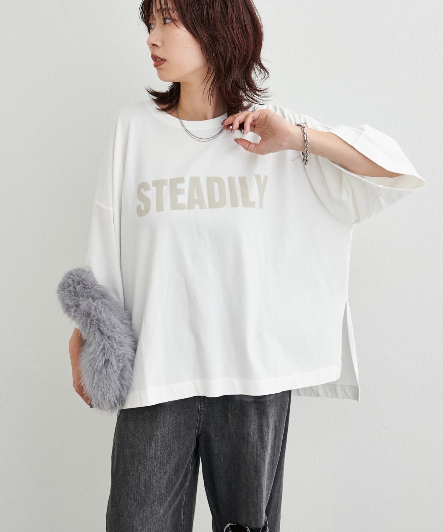 立体感のある大きめのロゴが、コーデをカジュアルダウンして見せてくれる1枚。