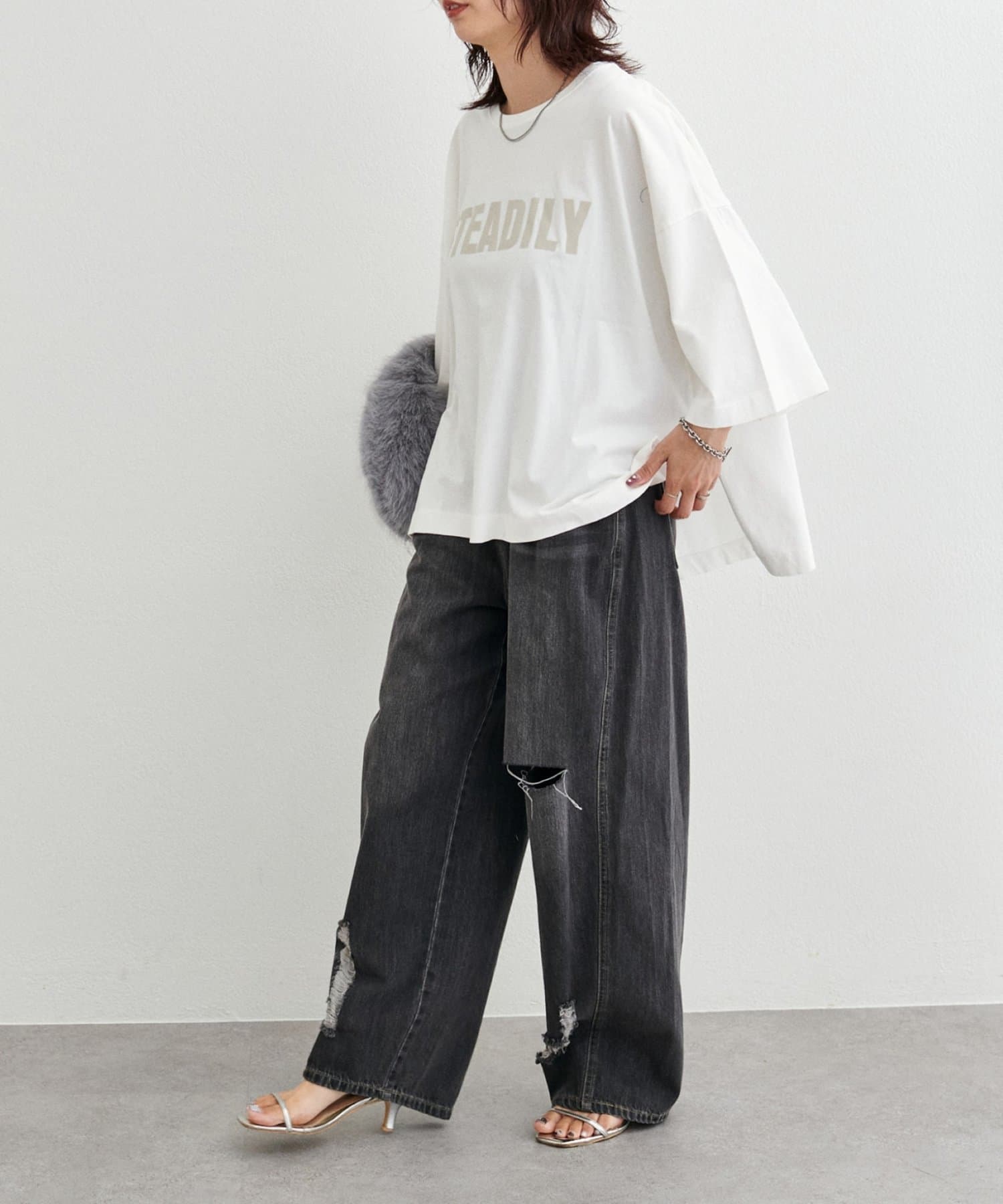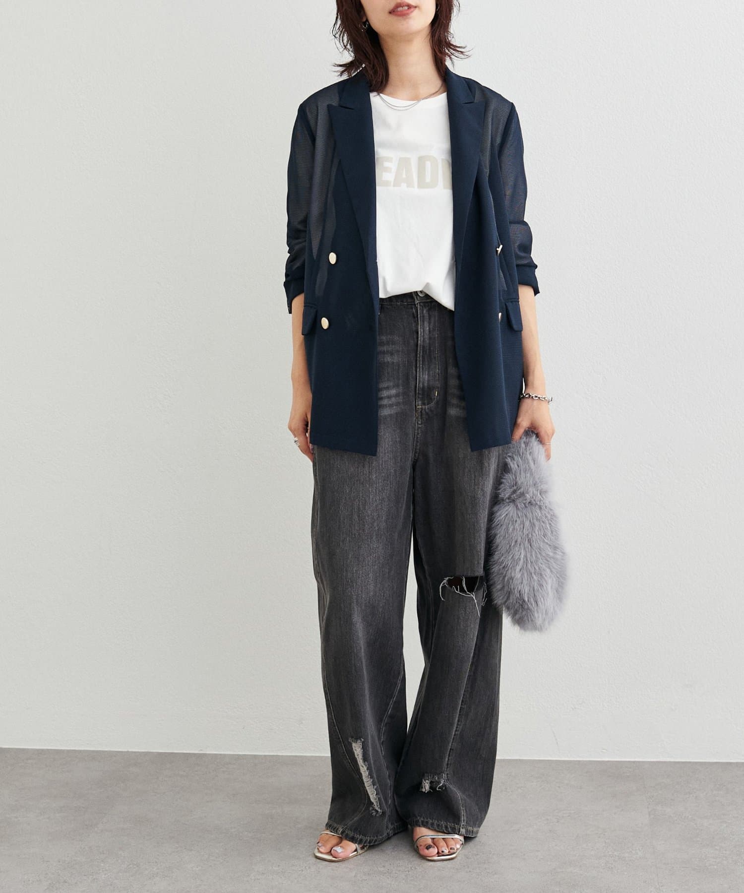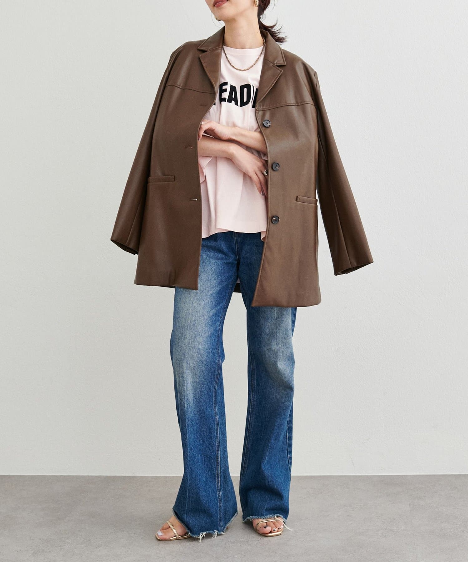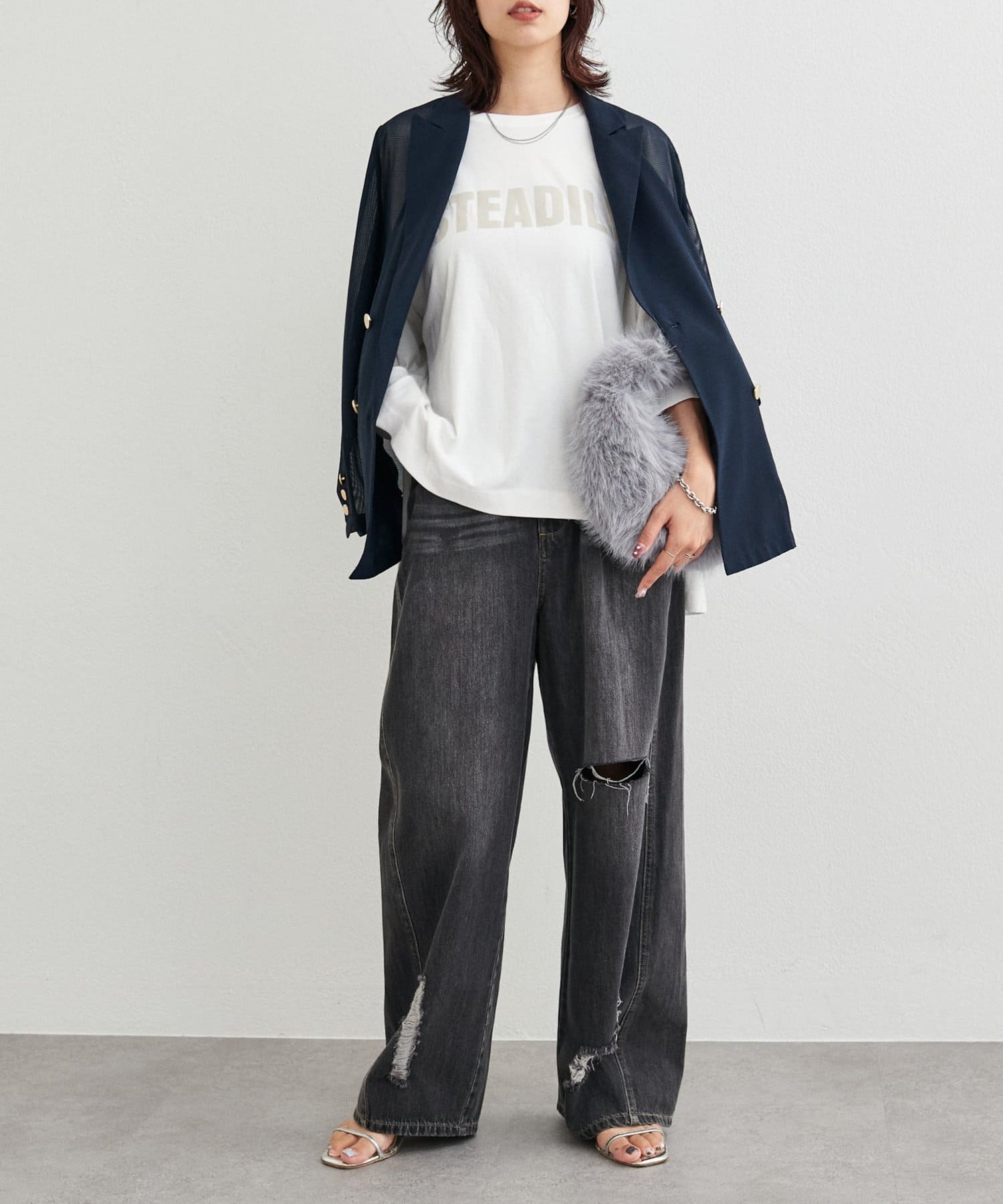ワイドパンツと合わせたリラックス感のある着こなしもおすすめ。