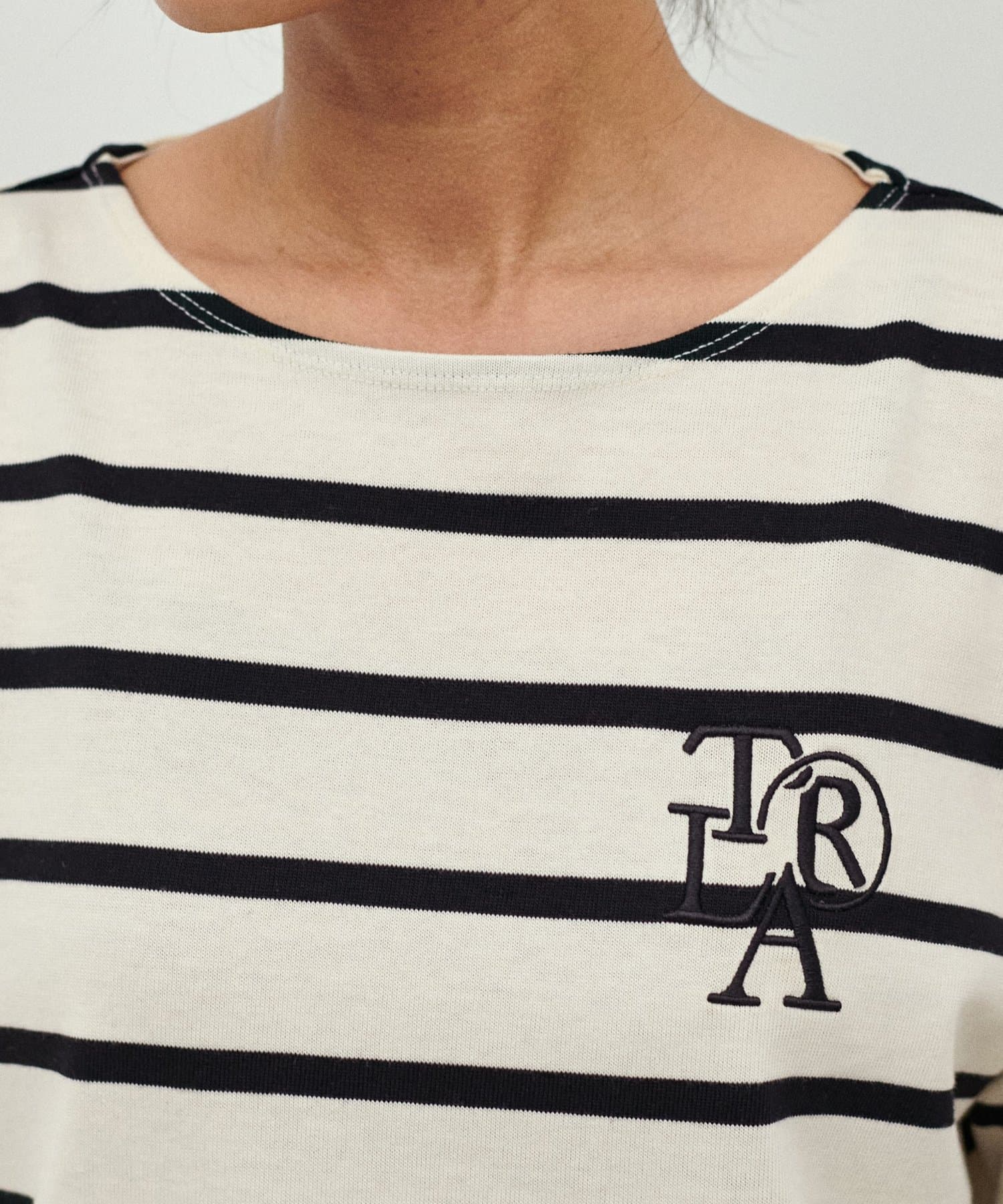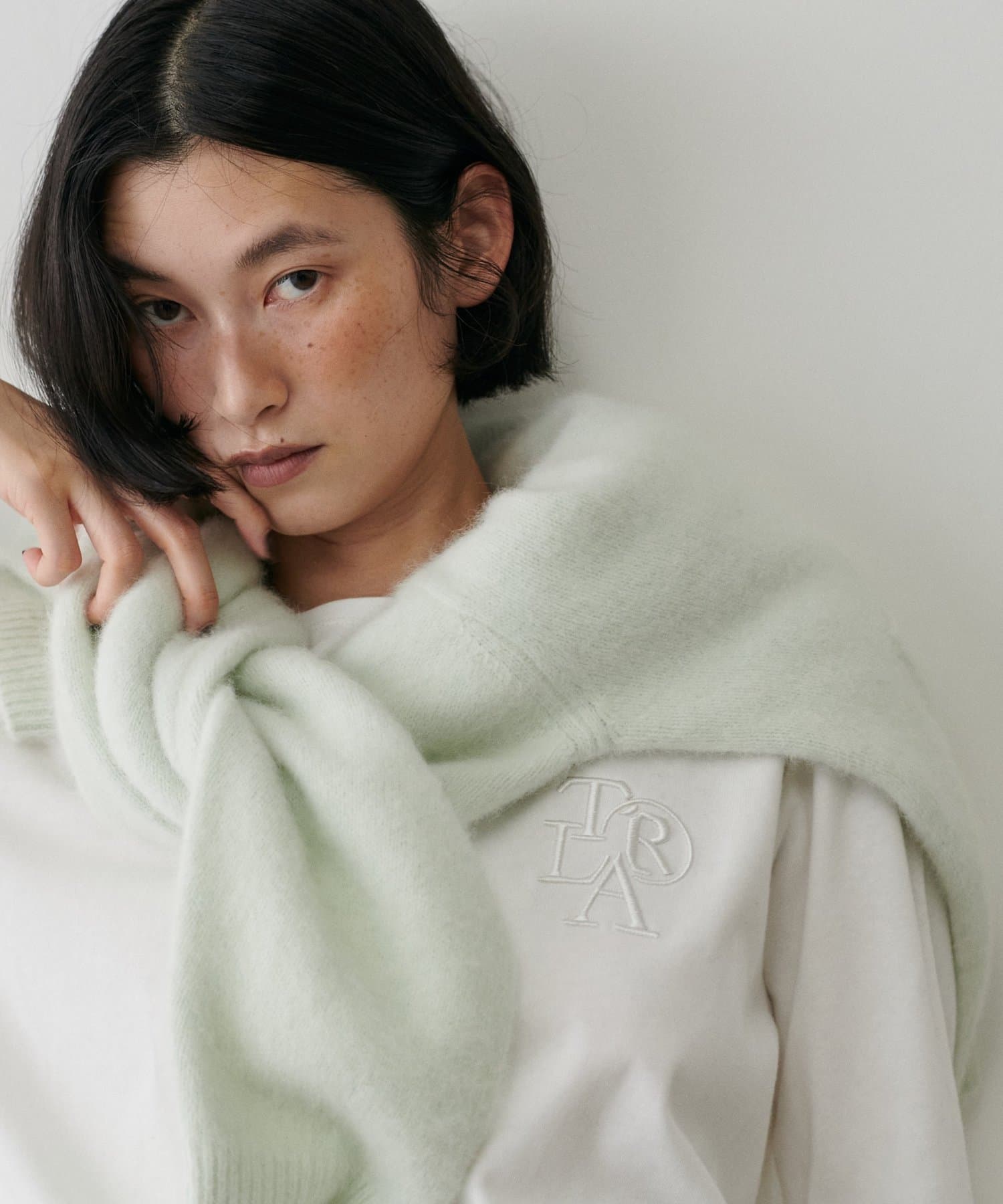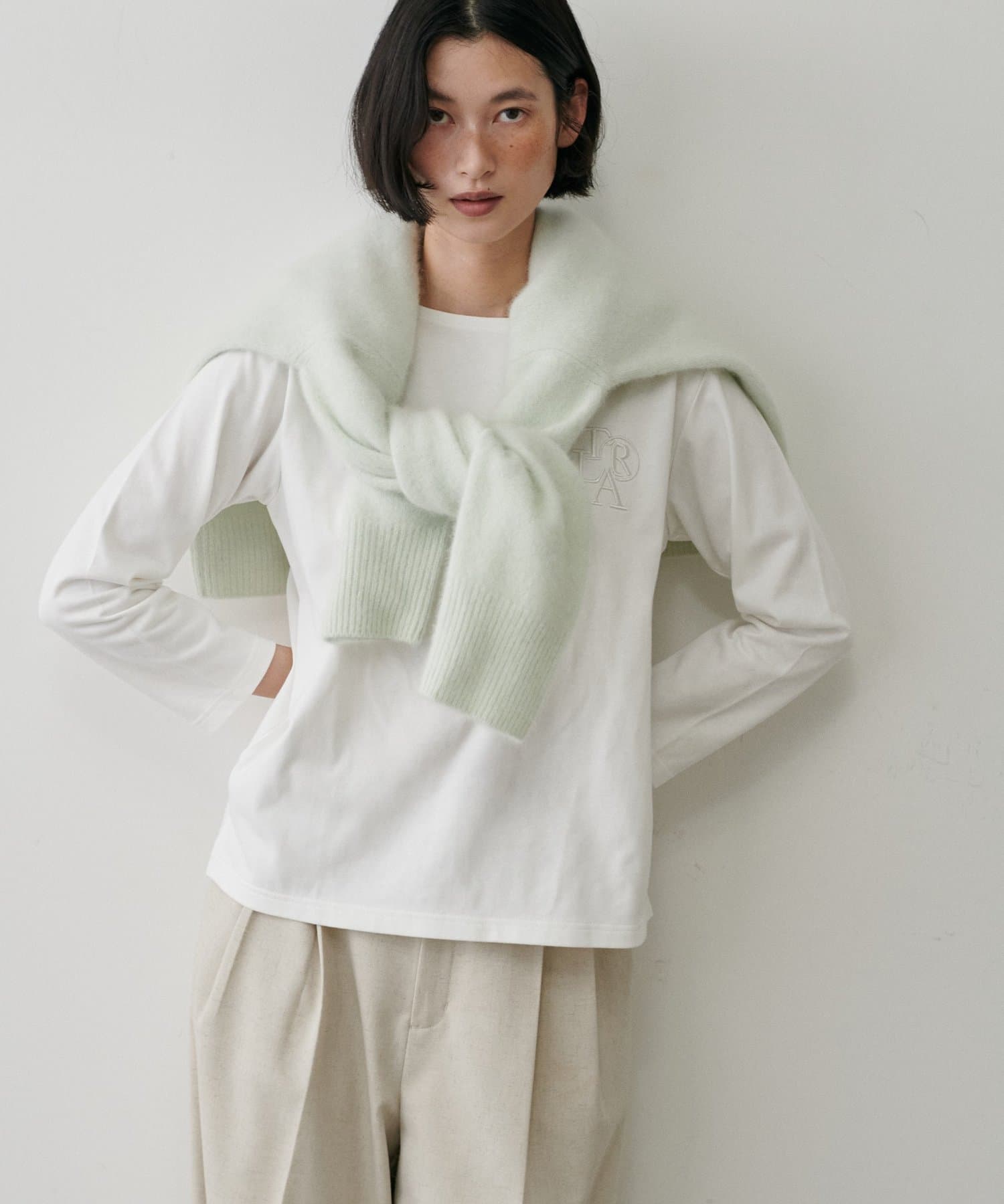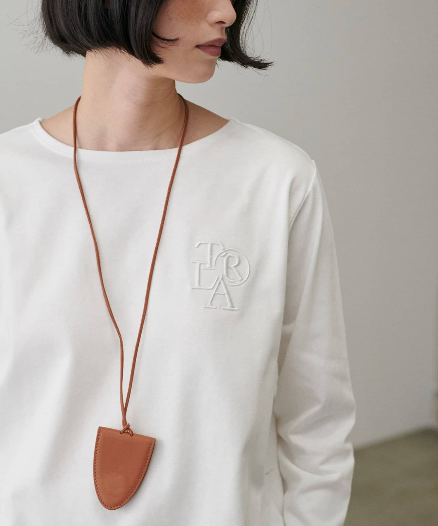 胸元の小さめなLARUTAの刺繍が可愛らしさをプラス。