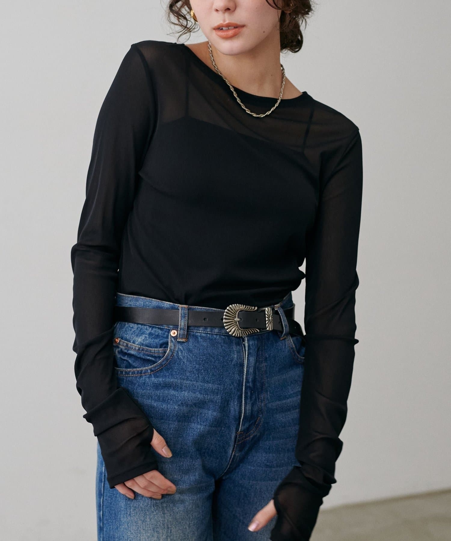 TOP > NICE CLAUP / OLIVE des OLIVE OUTLET > レディース > トップス > Tシャツ/カットソー > 【LARUTA】メッシュチュールプルオーバー