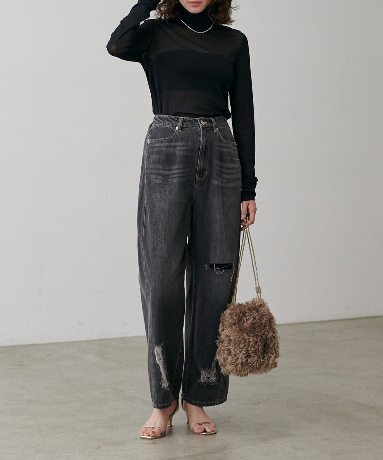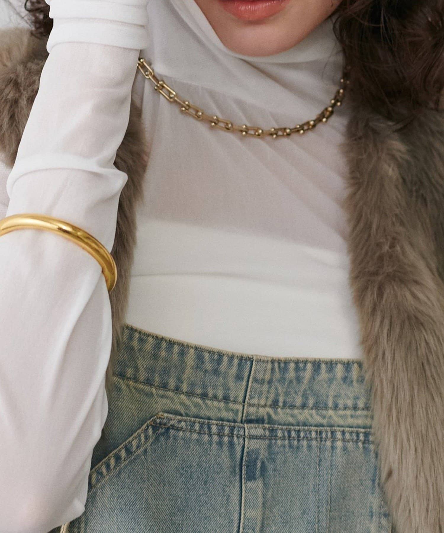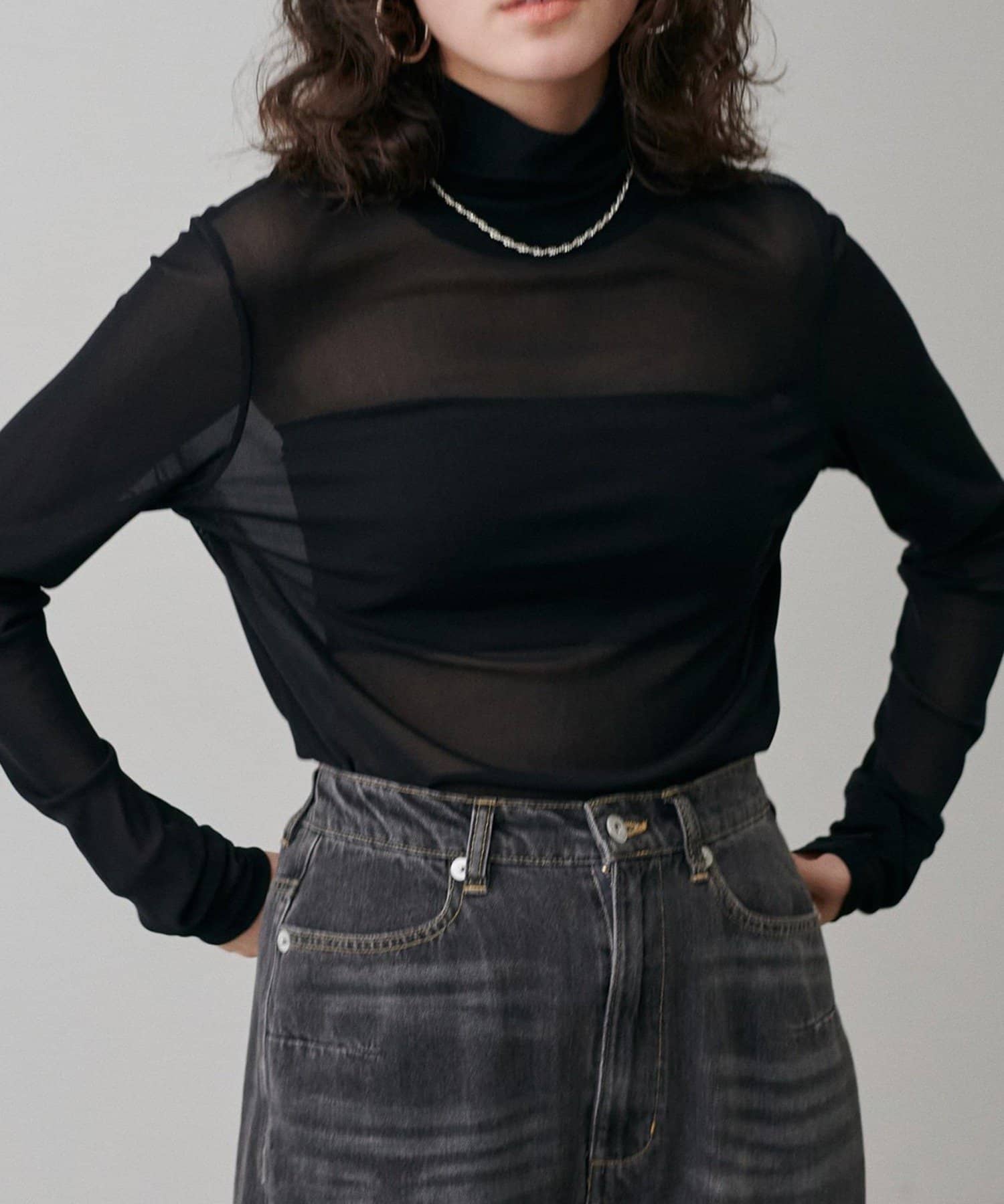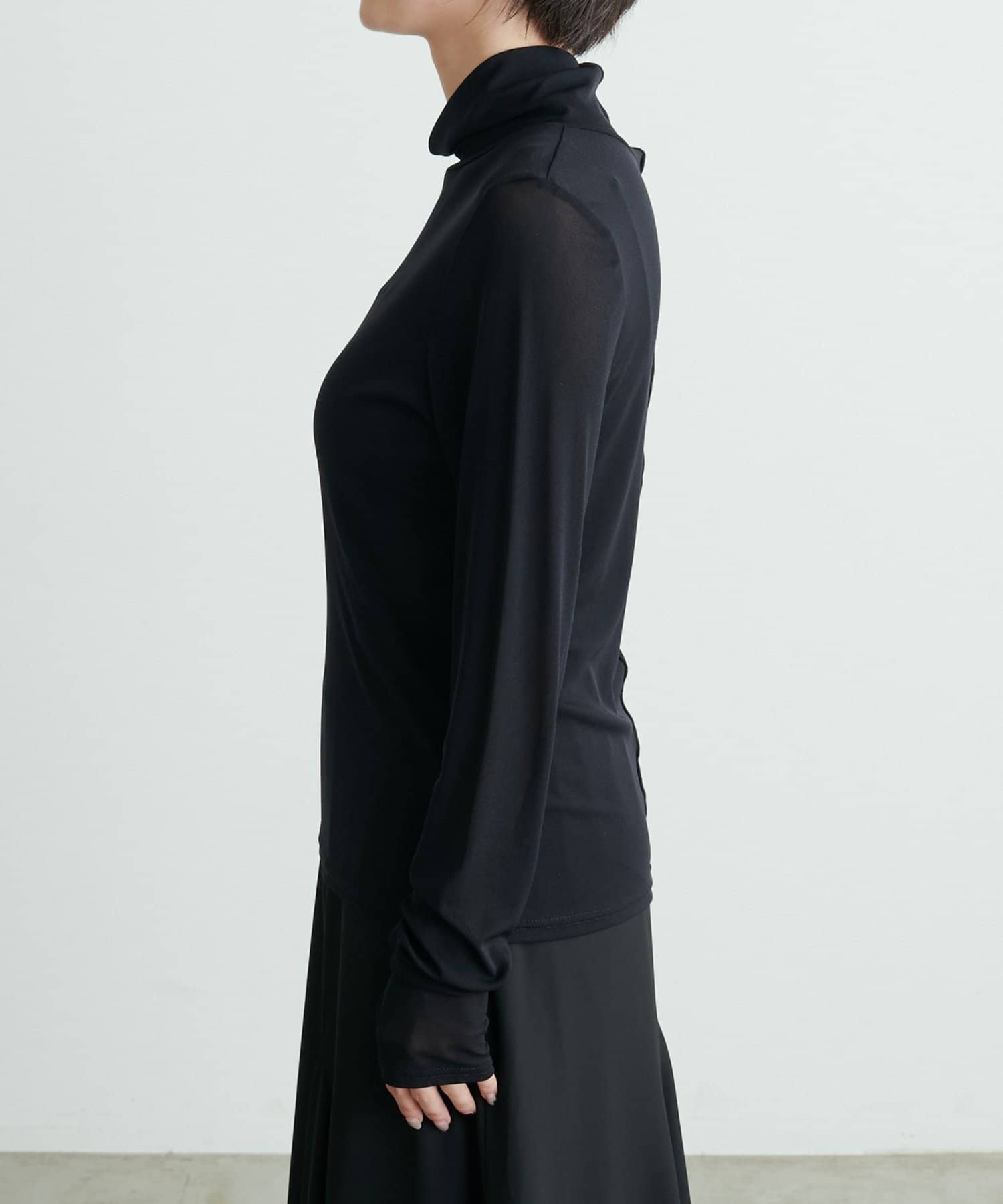 シアー素材のハイネックプルオーバーが登場。