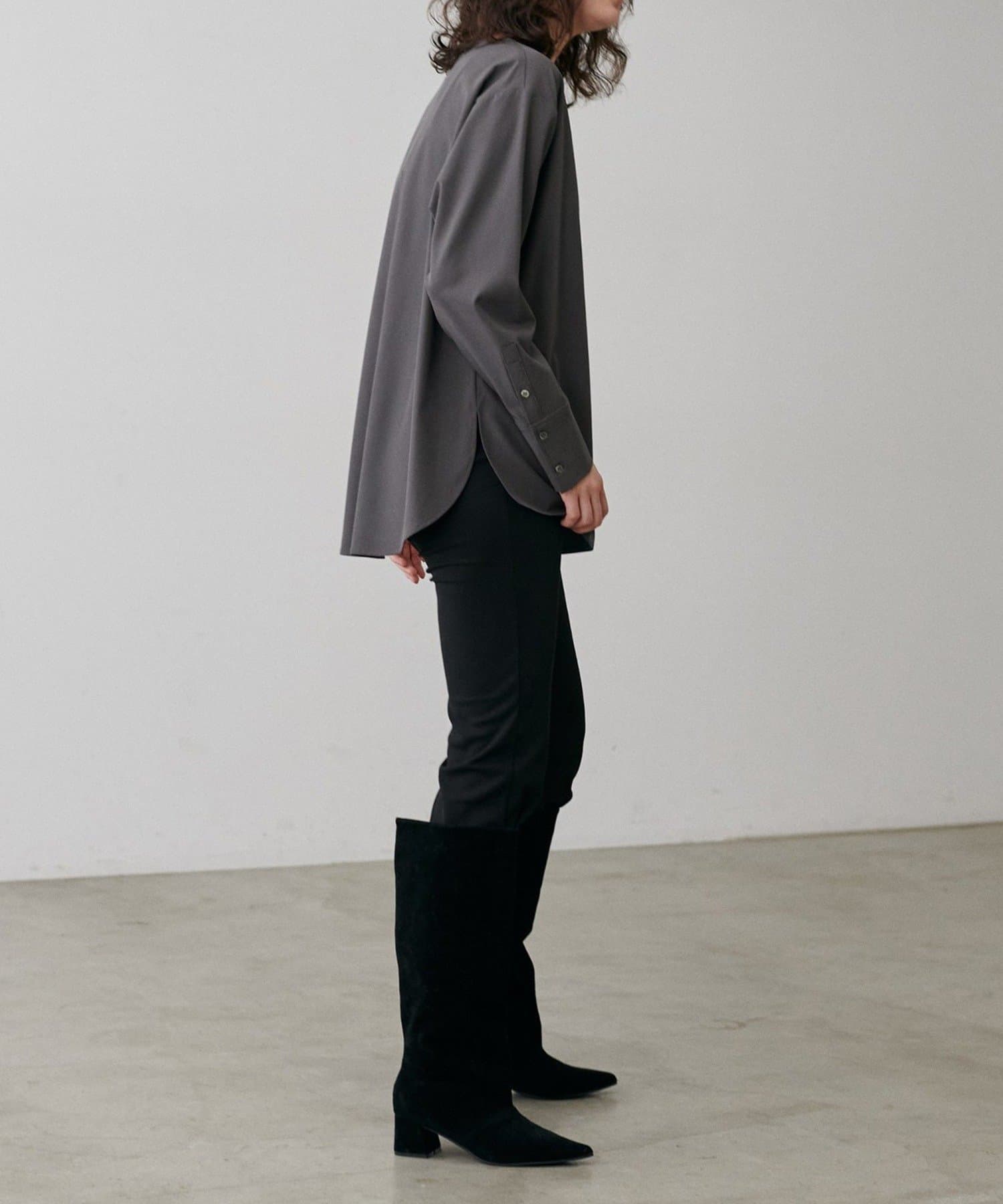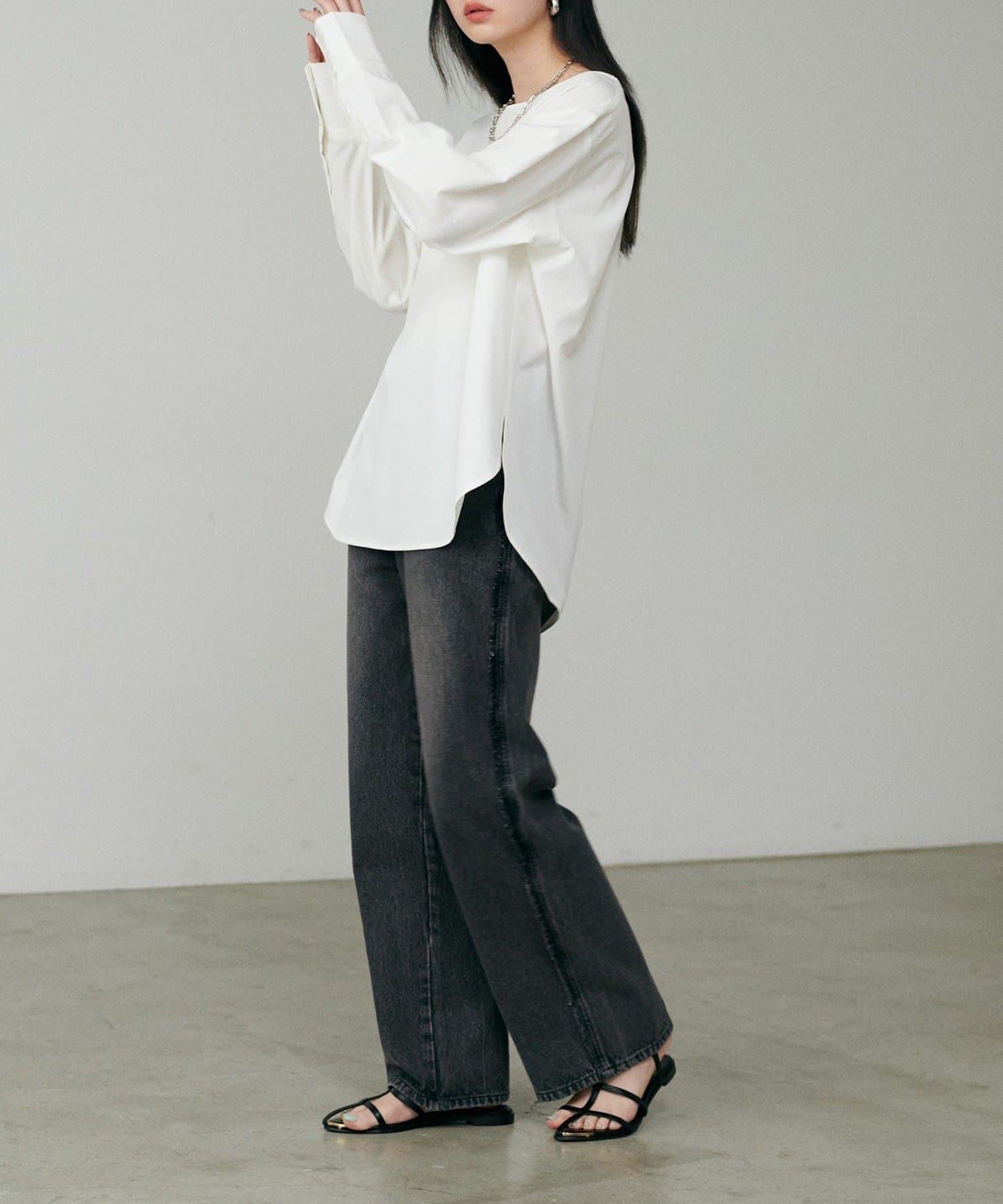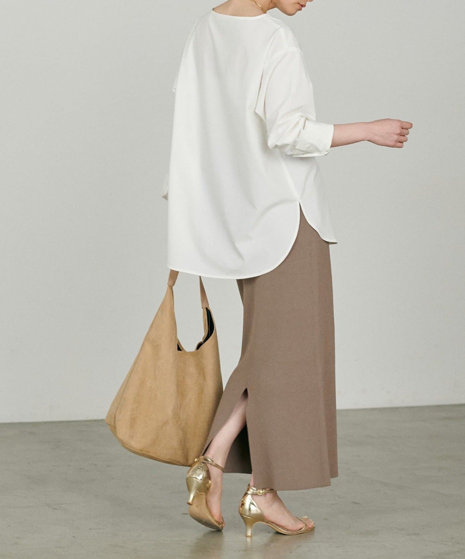 お尻が隠れる長めの丈感と裾のラウンドカットが