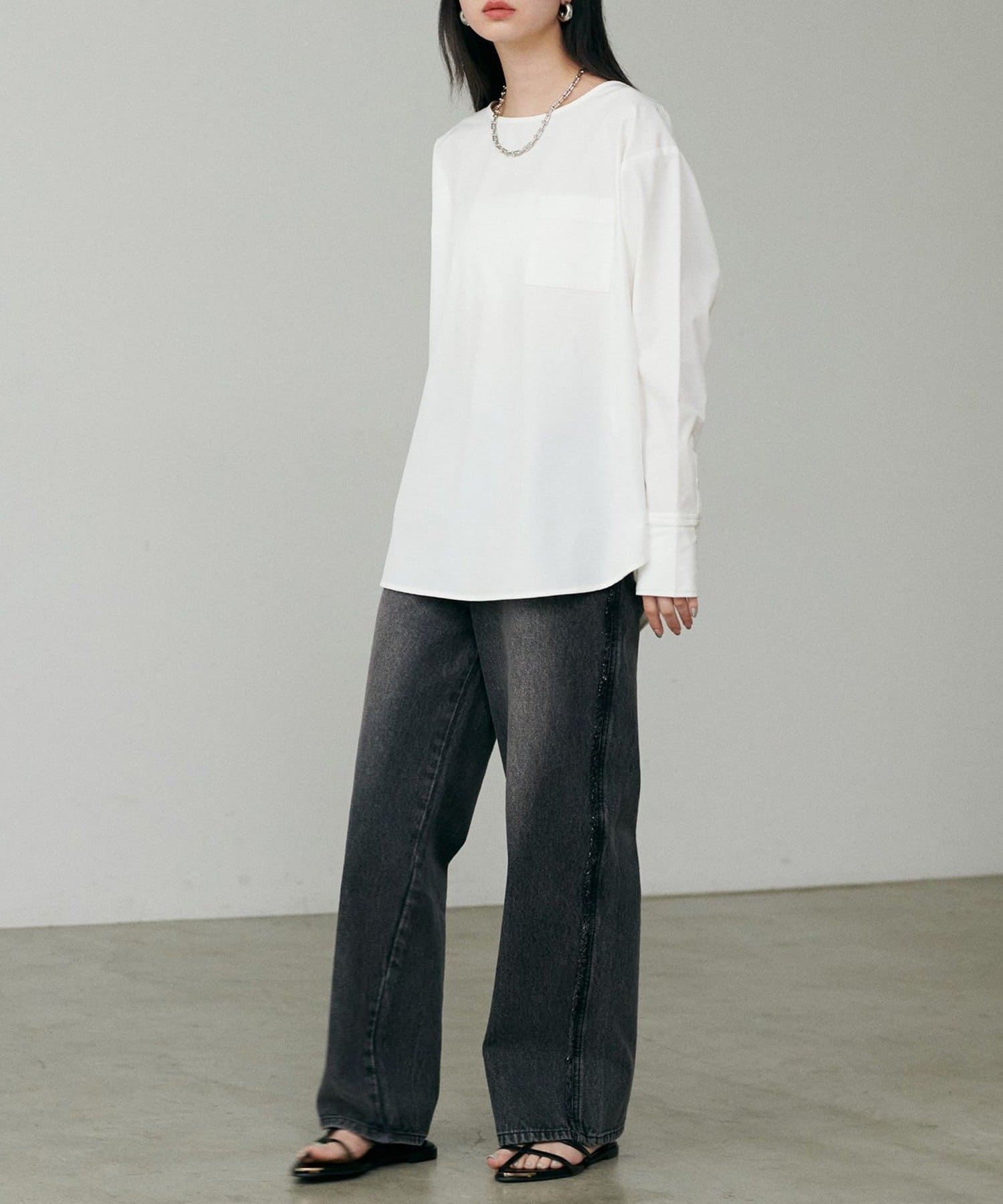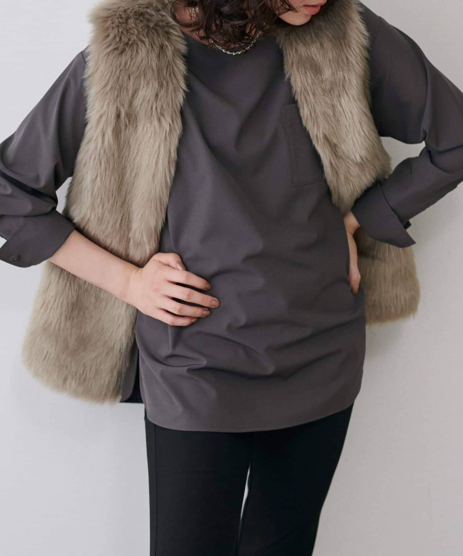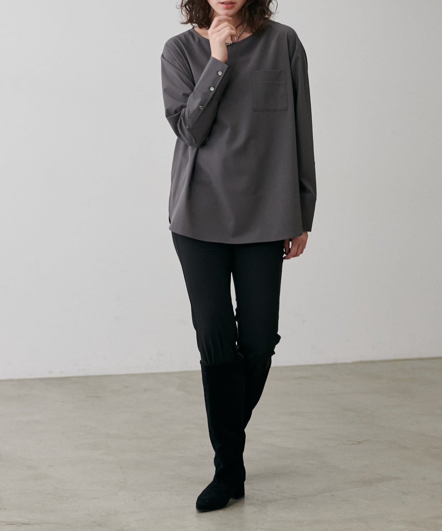【LARUTA】ブロードPU混カフス付きプルオーバー