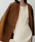 スナップボタンのデザインにもこだわっていて、前後2wayで着用できるのもコーデの幅が広がるポイントです。