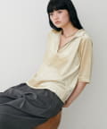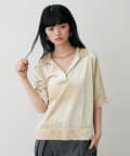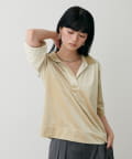 スキッパー襟と半袖デザインが抜け感を与え、シーズンレスで着回しやすい一着です。