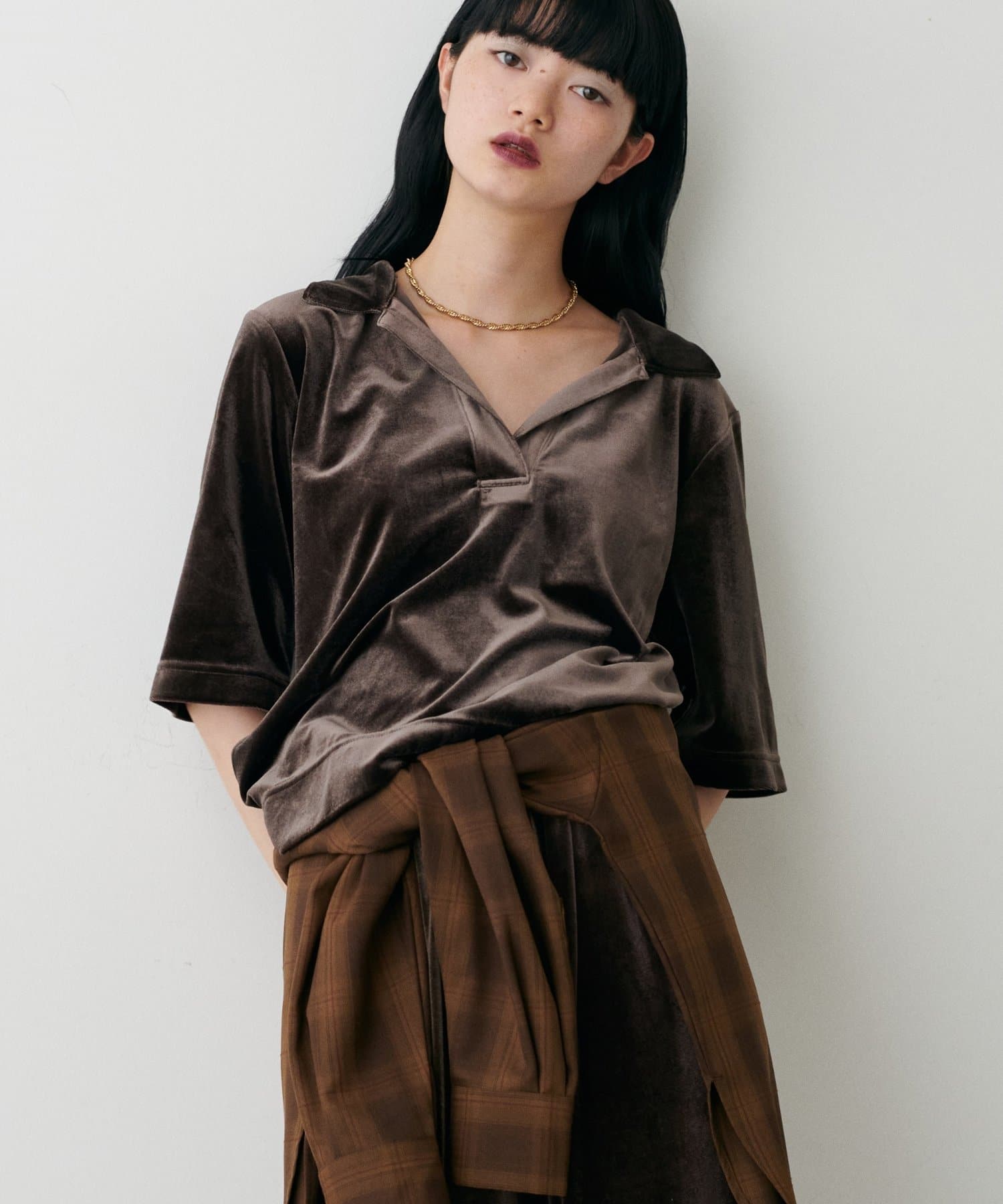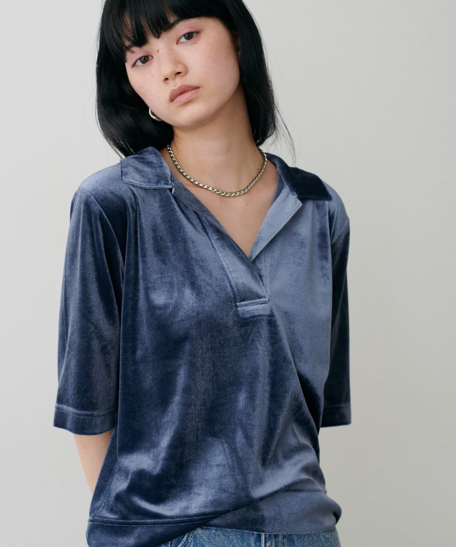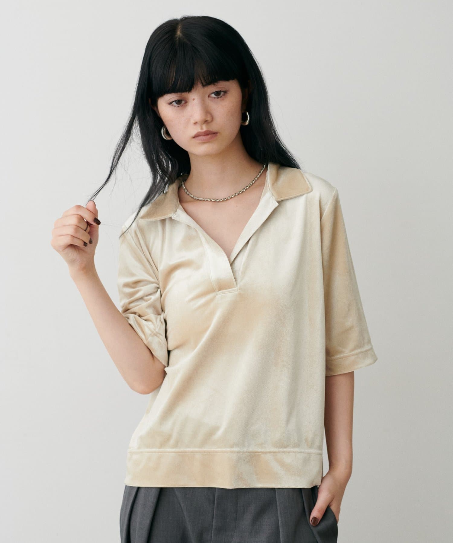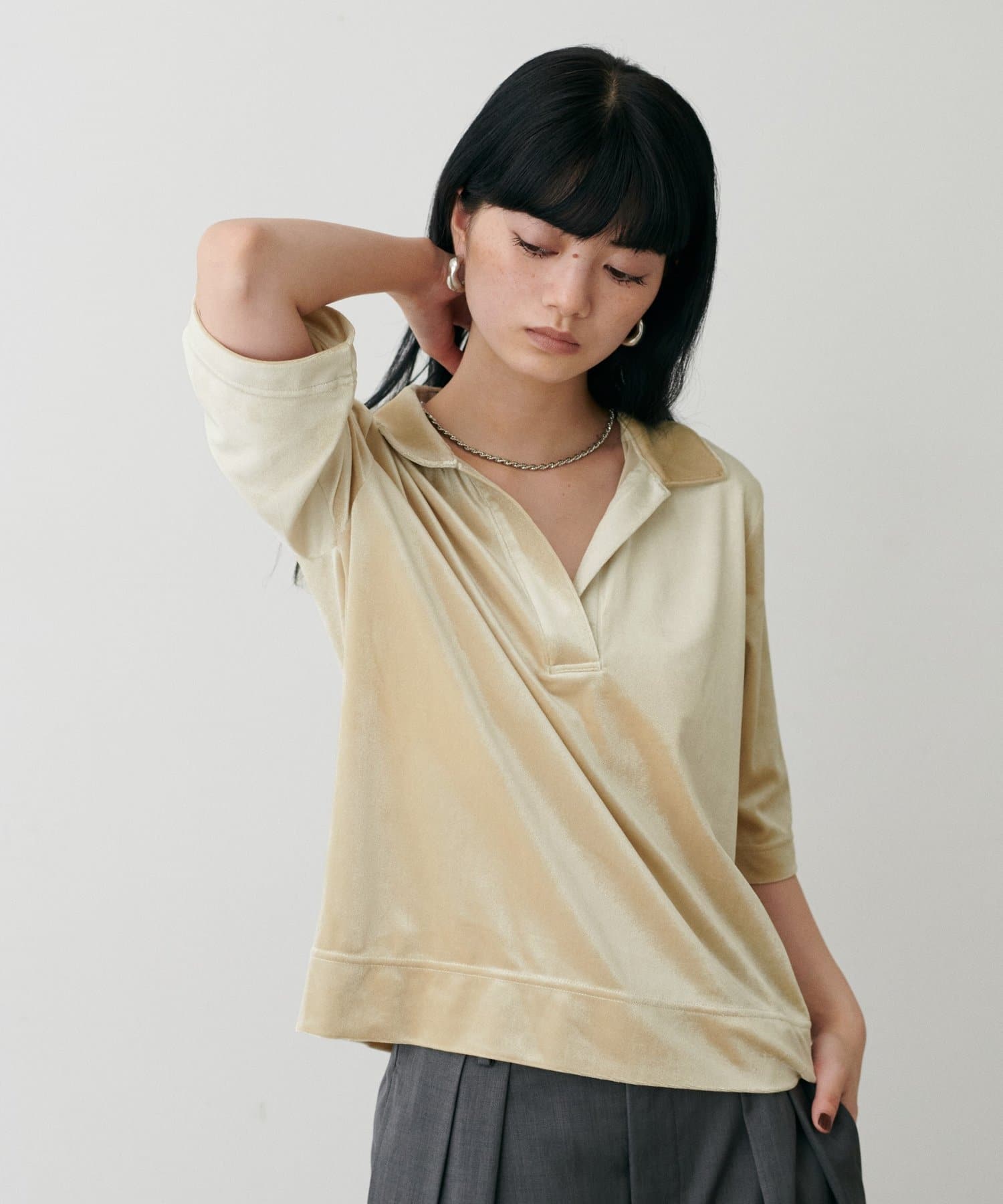上品な光沢感が魅力のベロア素材を使用したポロシャツプルオーバー。
