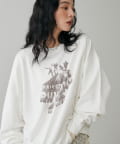 架空のバンドロゴをモチーフにした、遊び心のあるグラフィックプリントが印象的な裏毛プルオーバー。