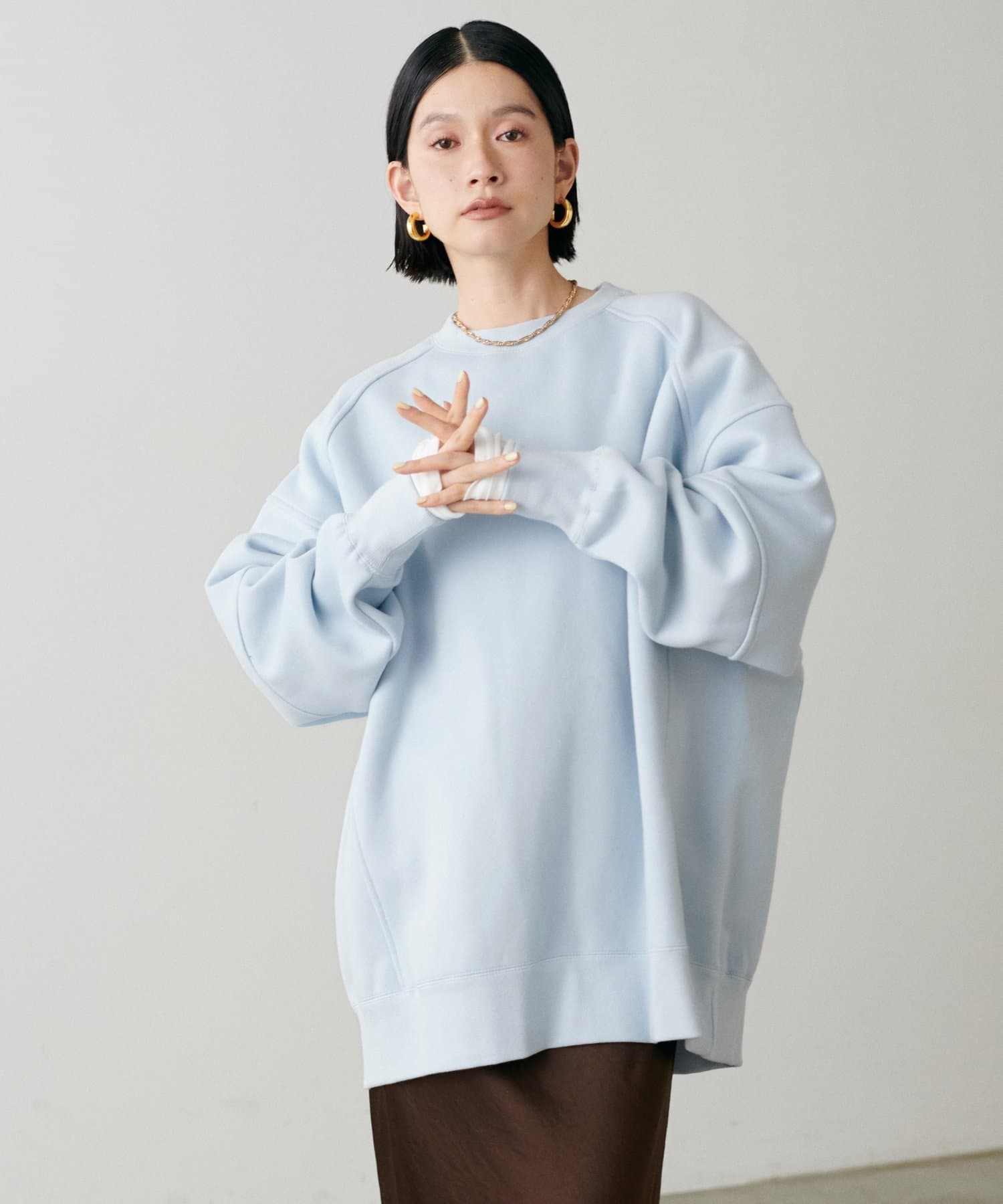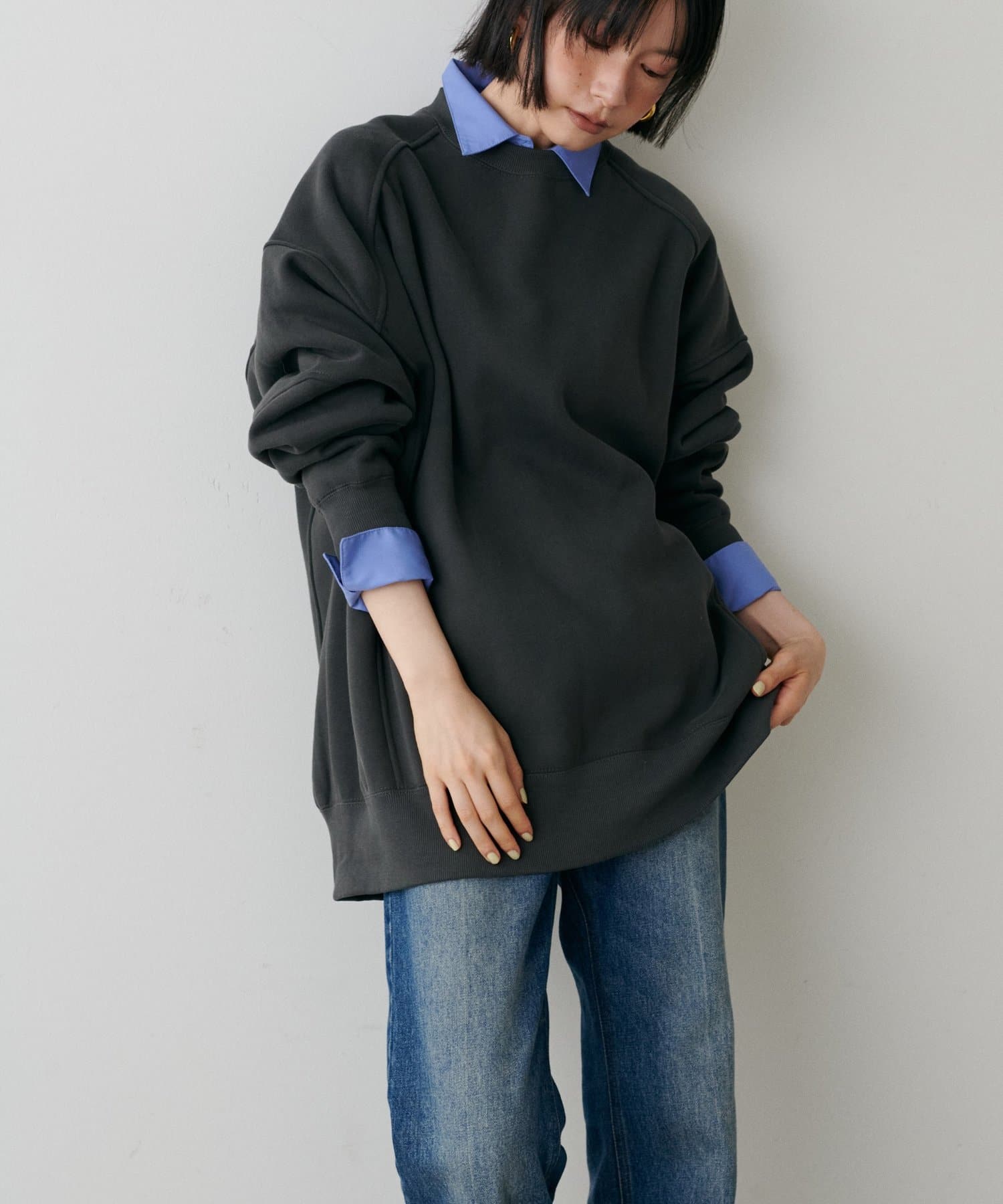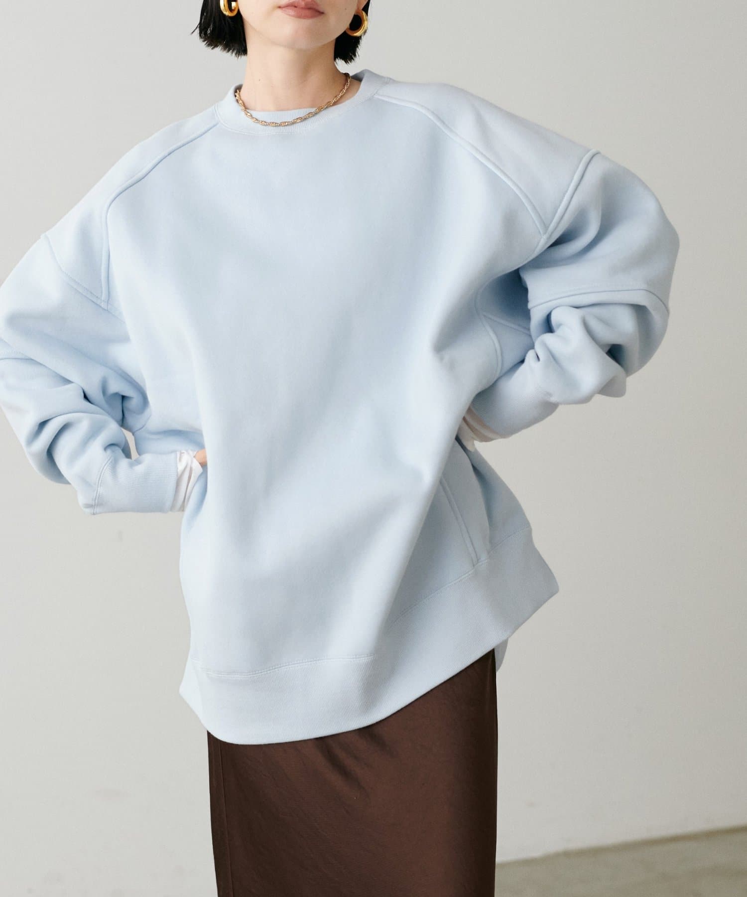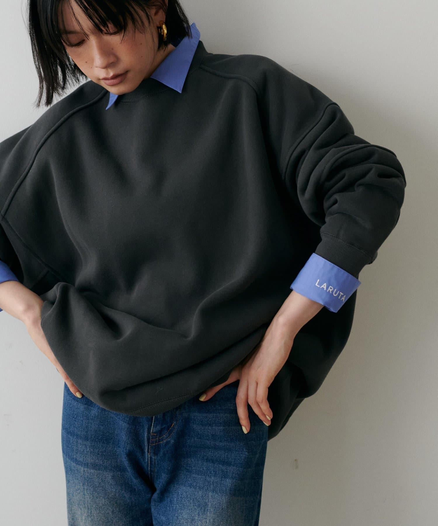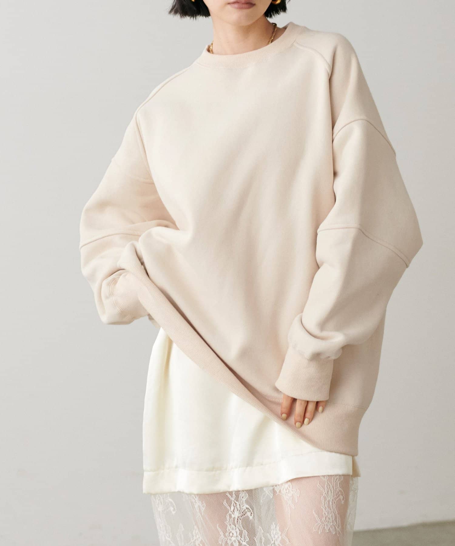 たっぷりとしたビッグサイズのシルエットが印象的なスウェット。