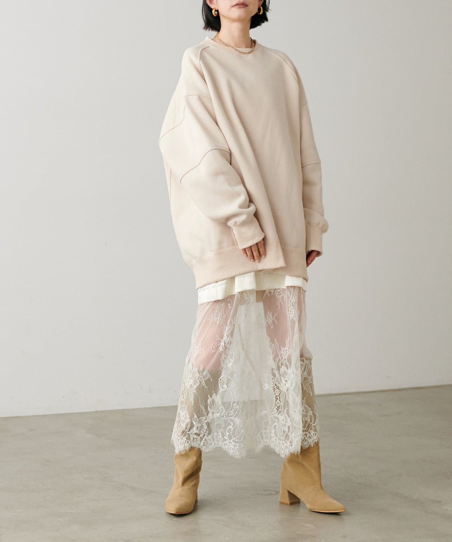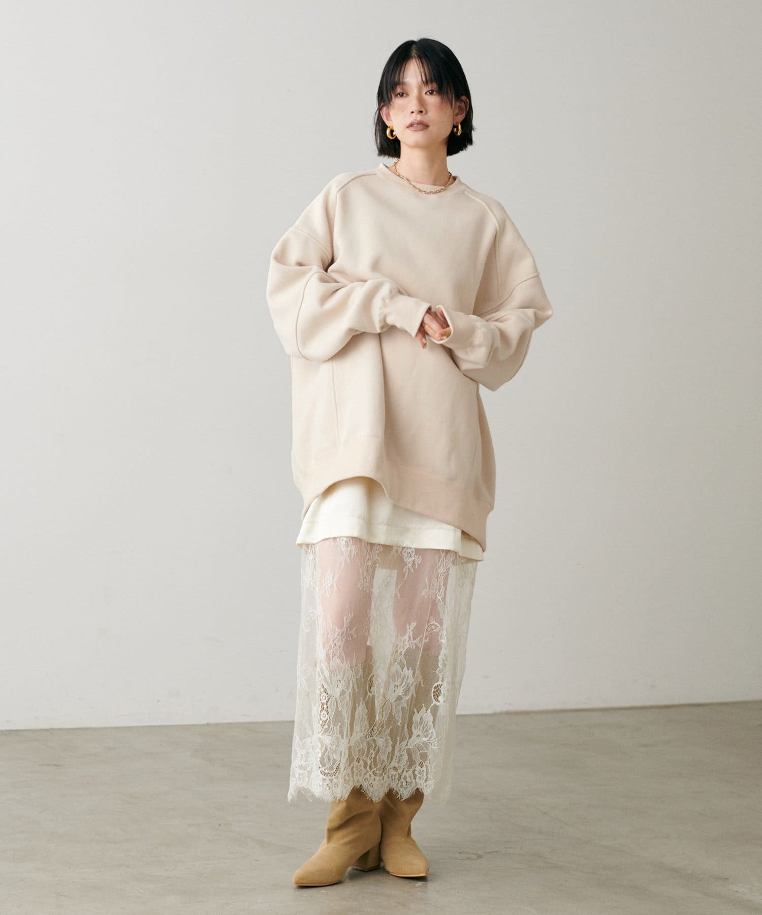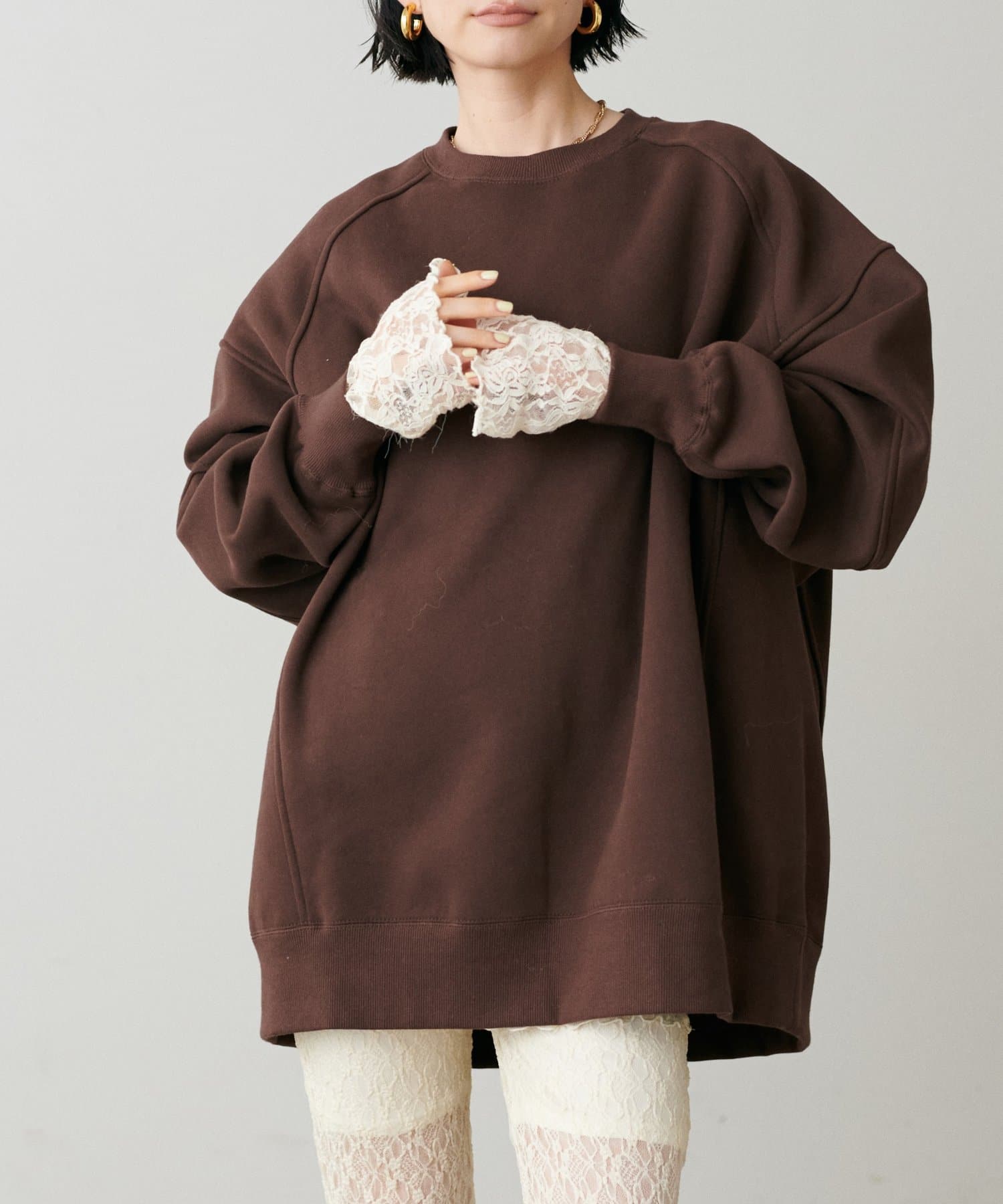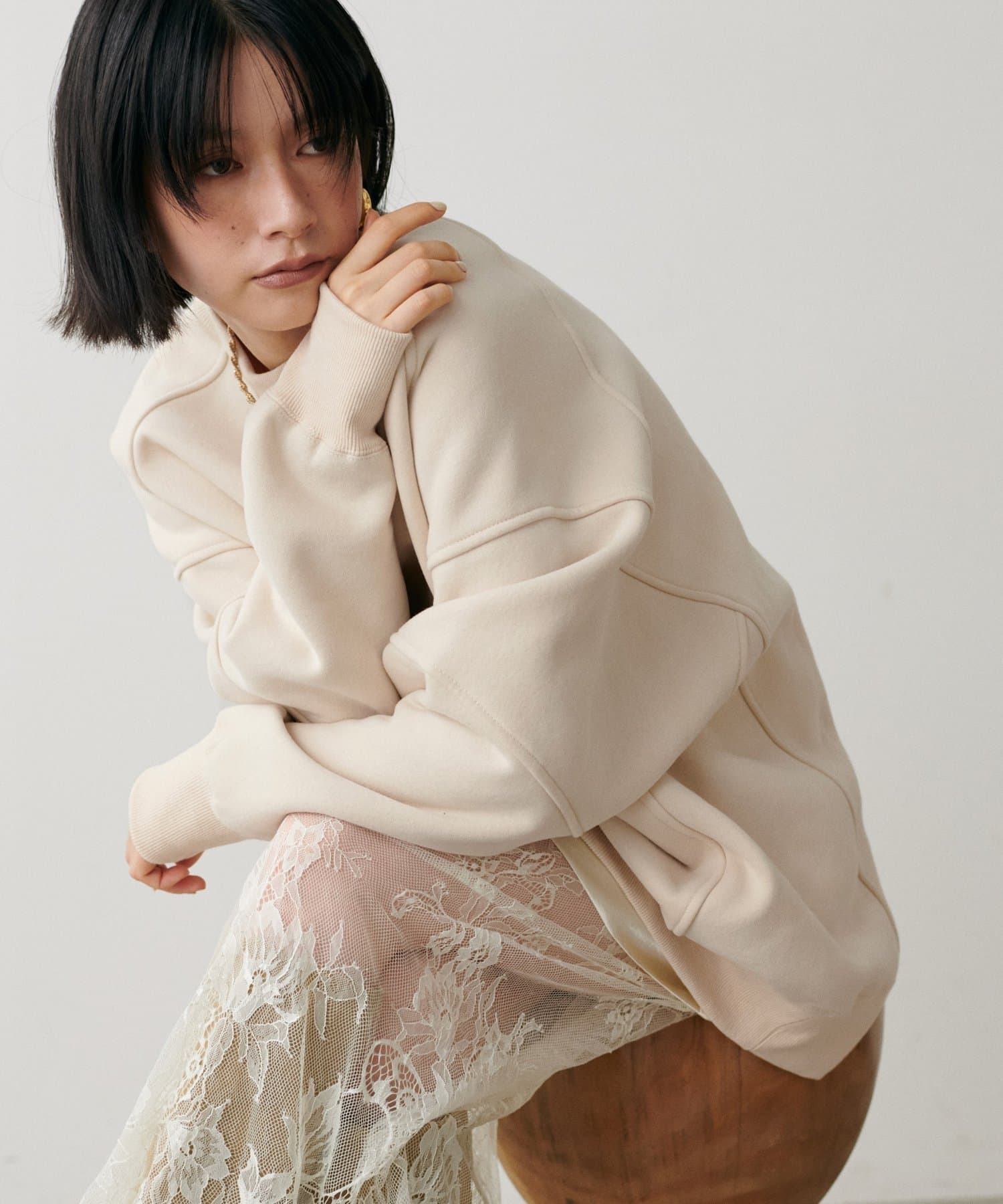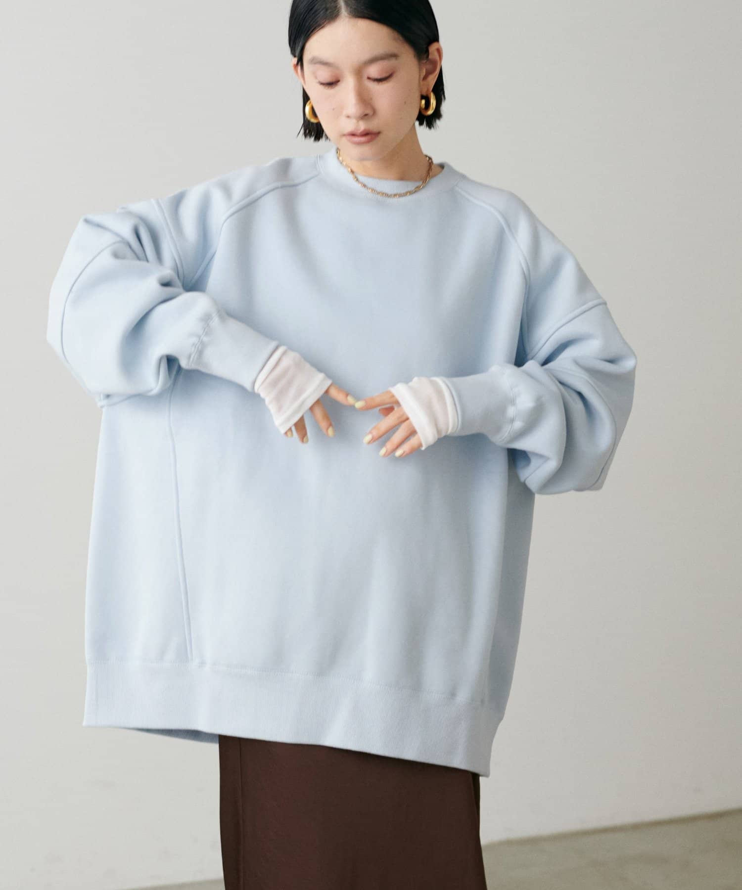 たっぷりとしたビッグサイズのシルエットが印象的なスウェット。