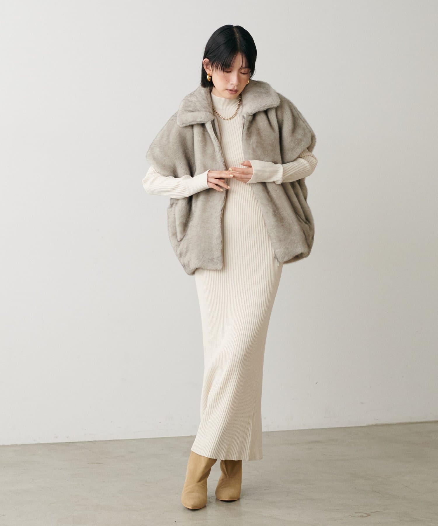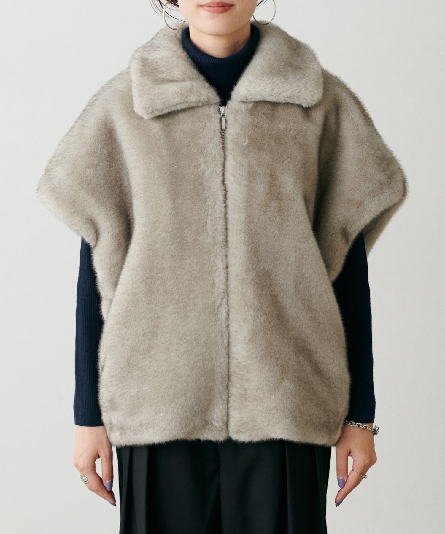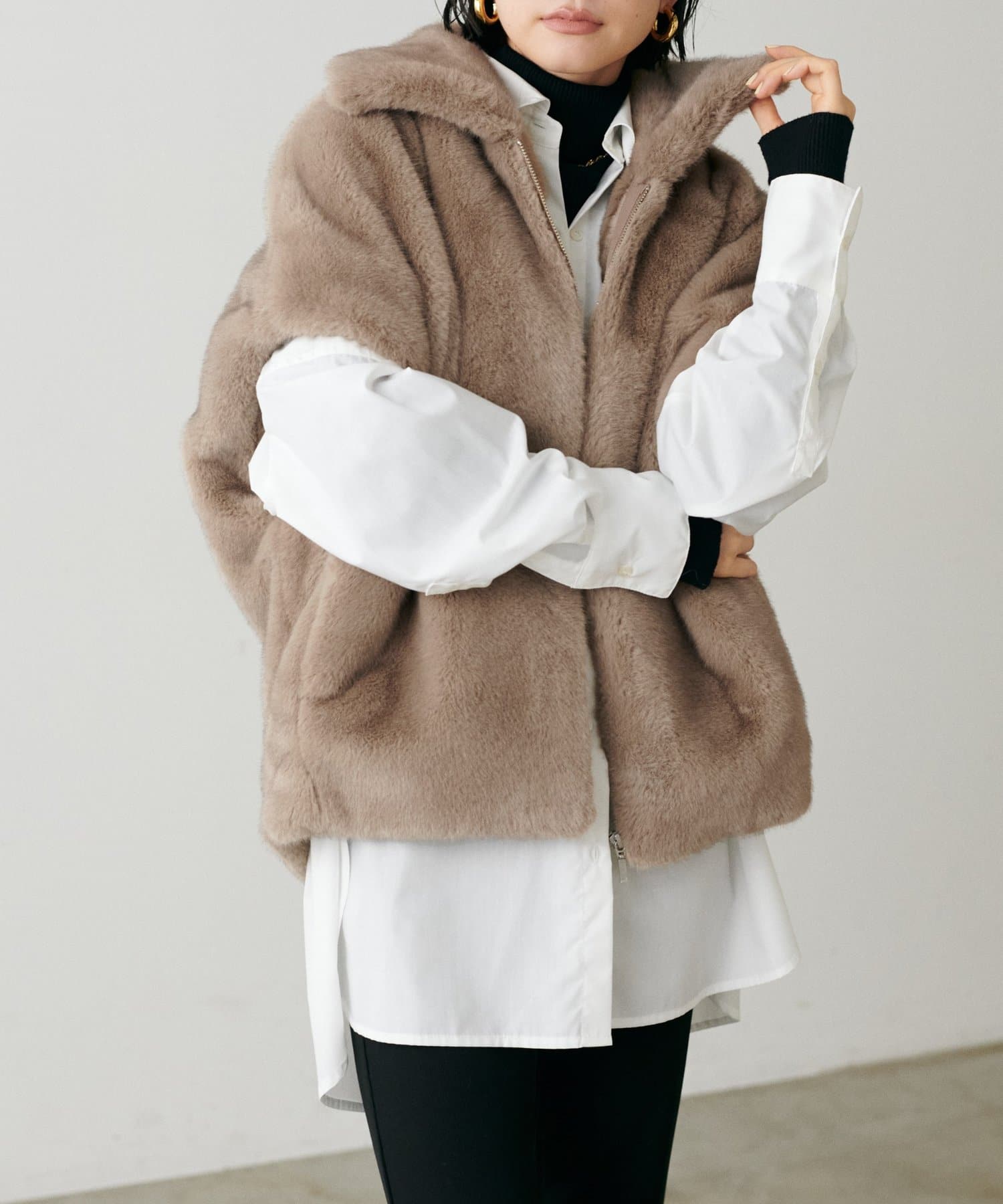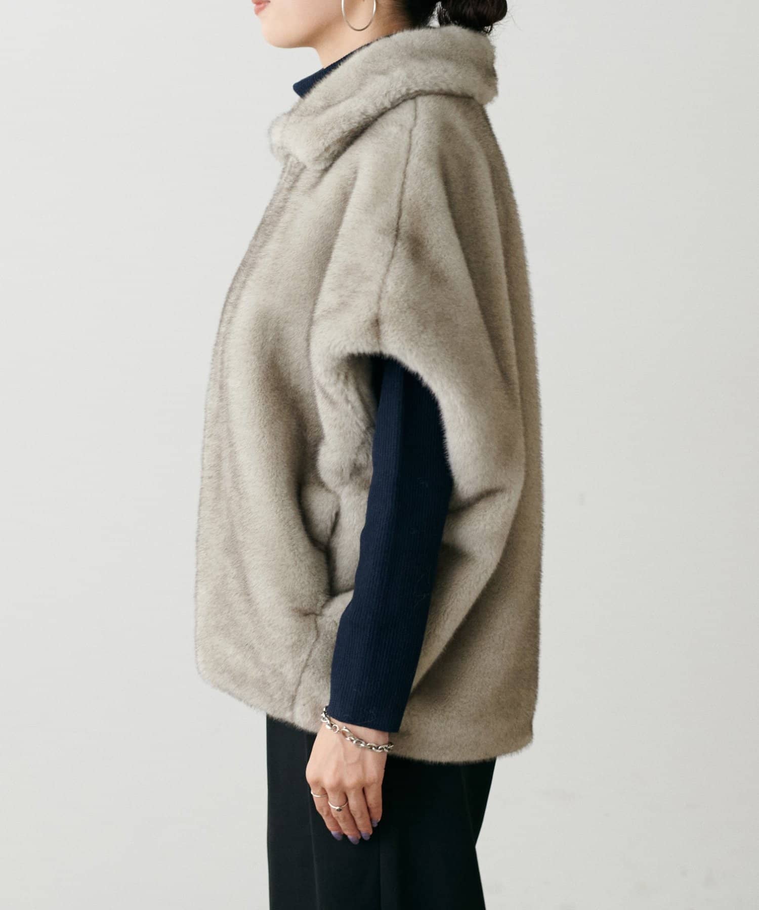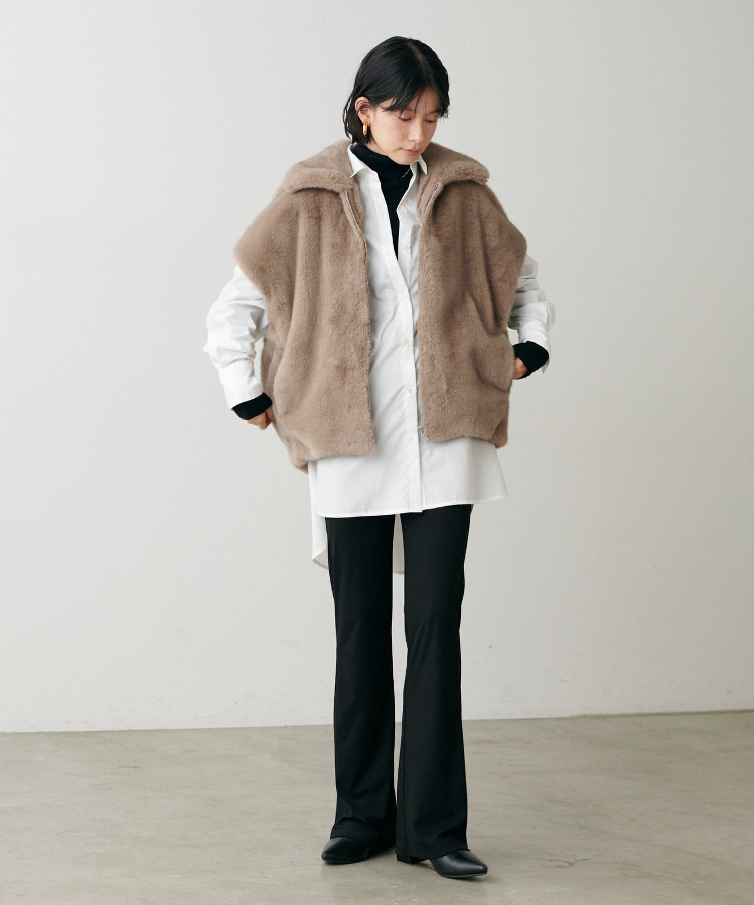 毛足が長めのフェイクファーを使用した、存在感抜群のグラデーションファーベスト。