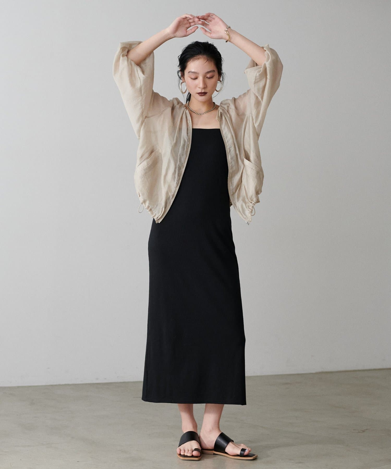 夏は透け感を生かして、キャミワンピースやノースリーブの上に、