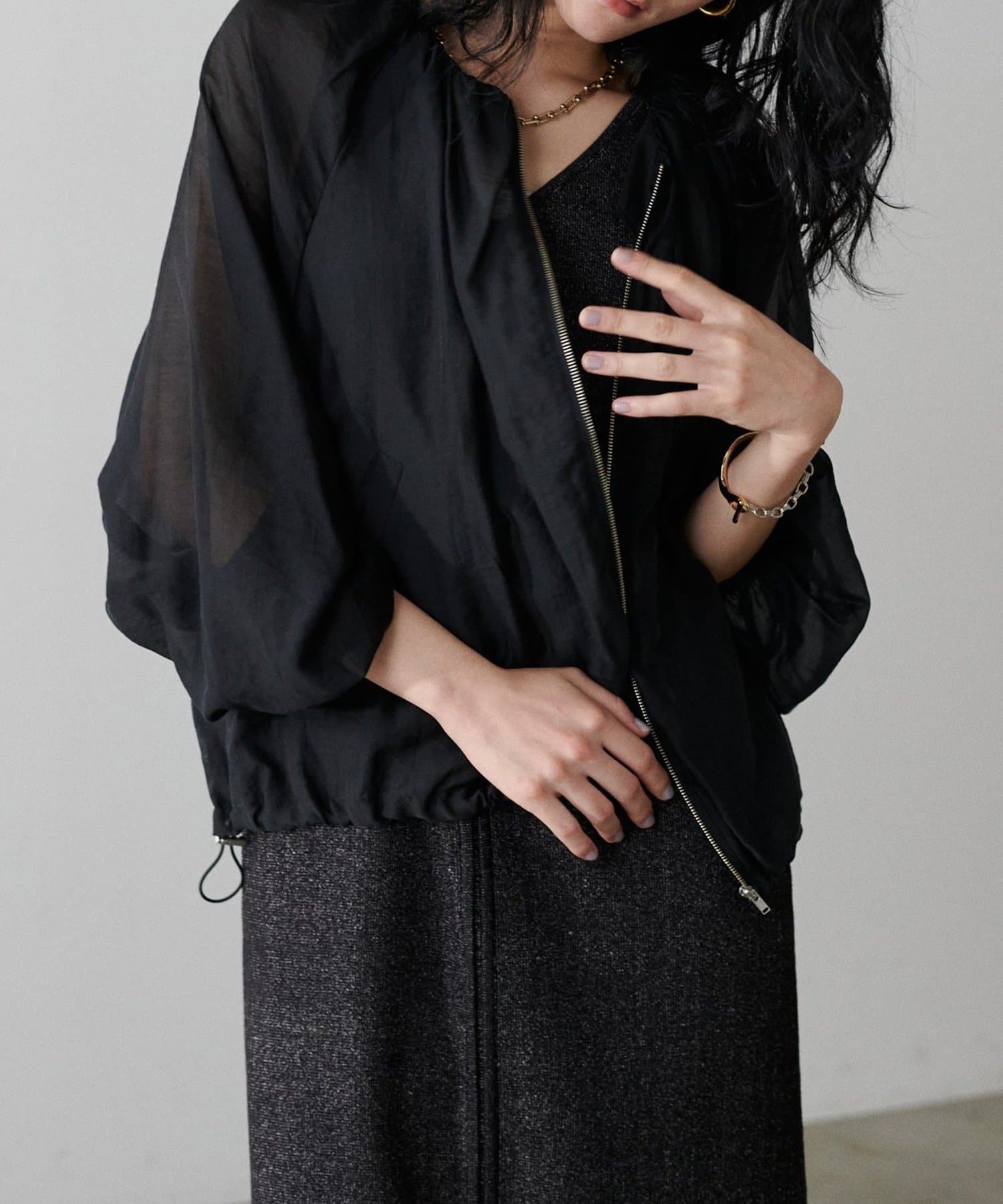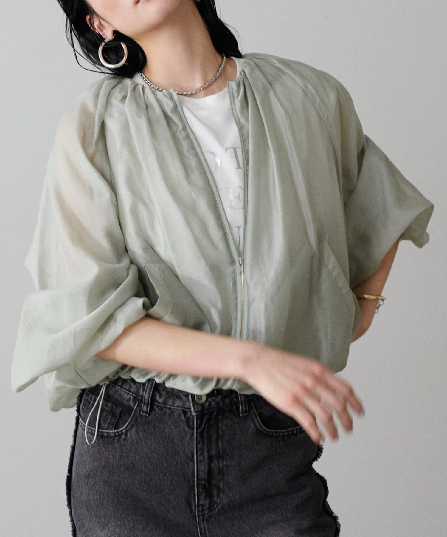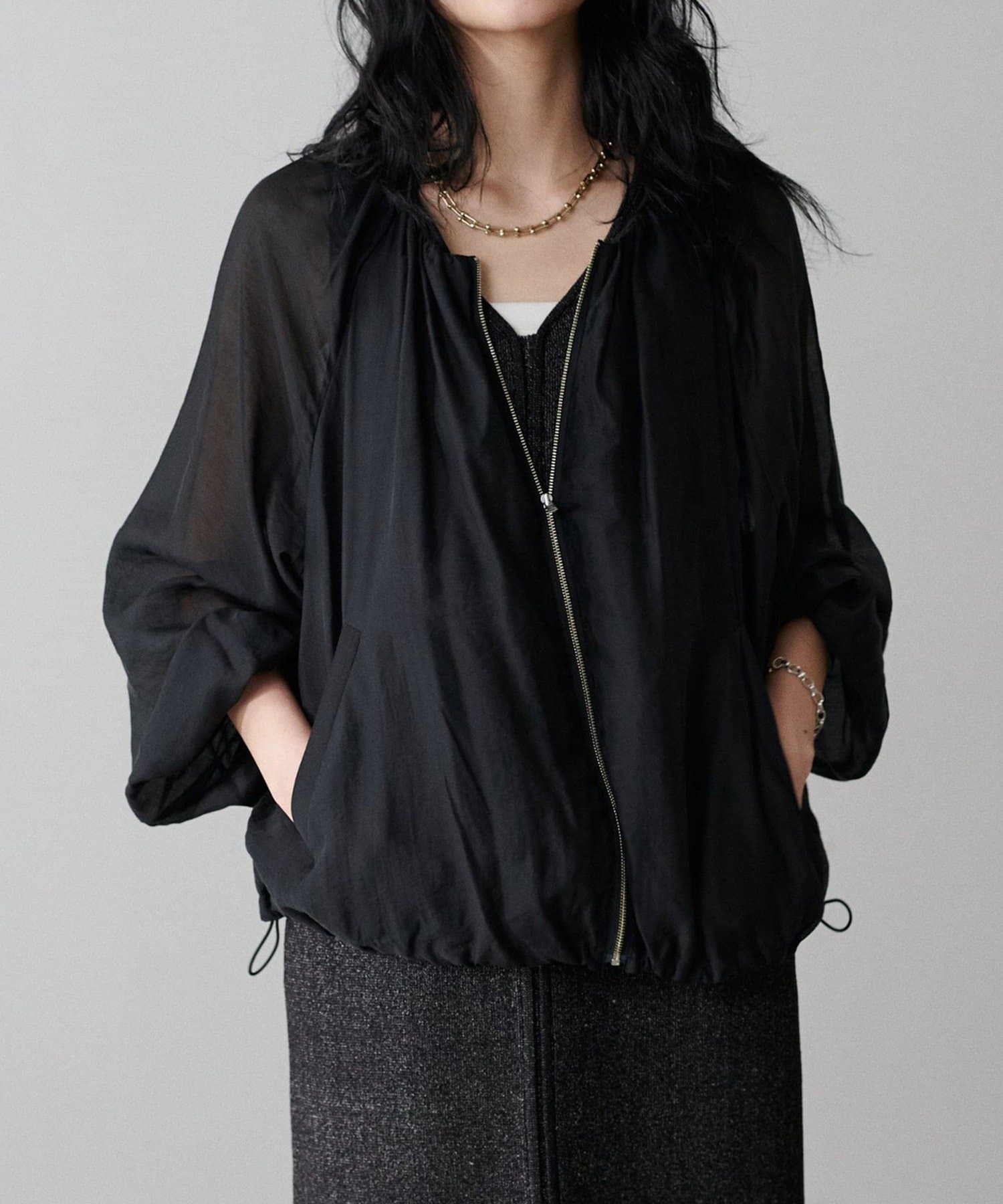 柔らかなシアー感が軽やかな雰囲気を漂わせるブルゾン。
