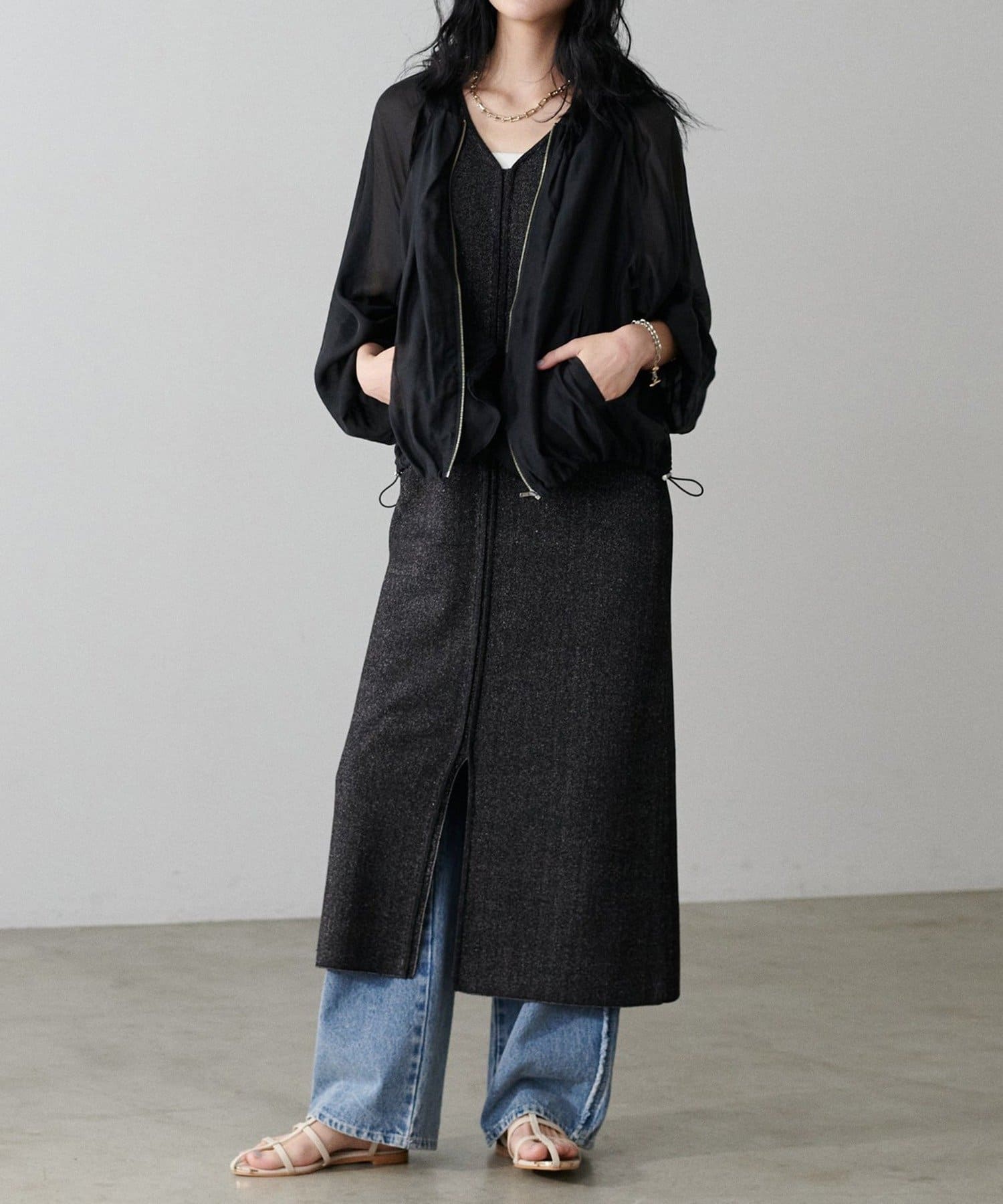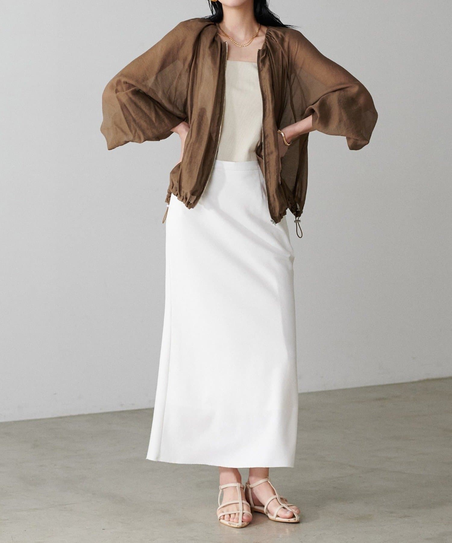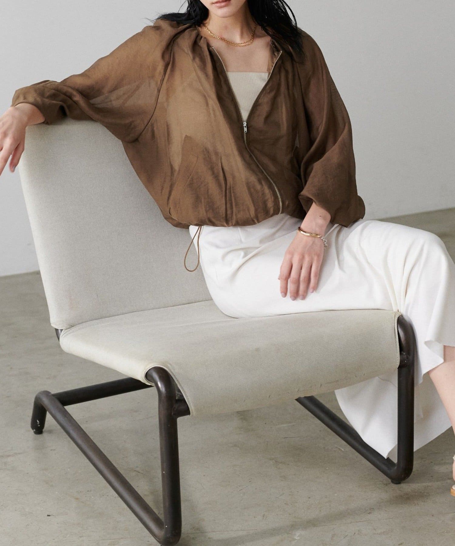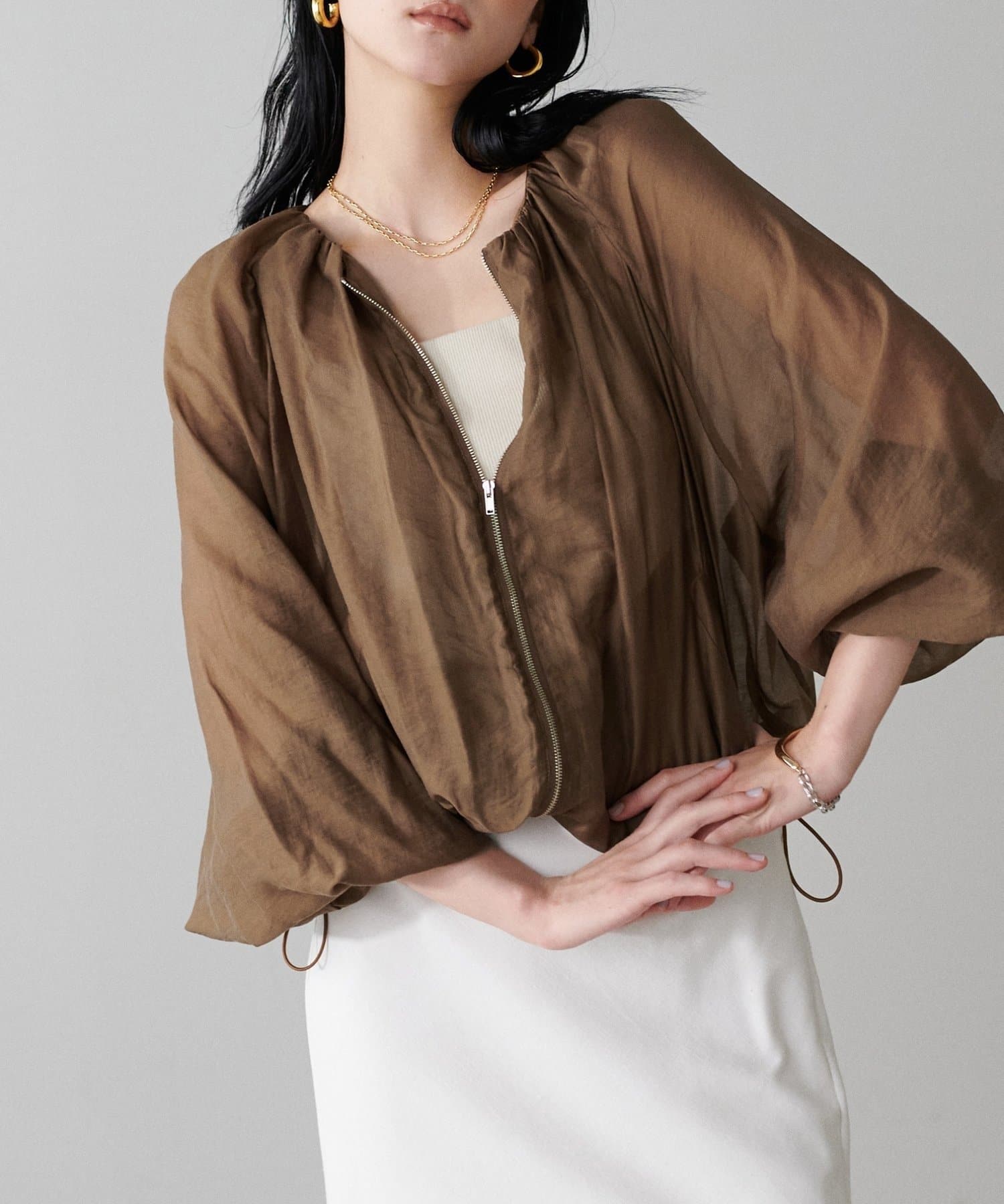 柔らかなシアー感が軽やかな雰囲気を漂わせるブルゾン。