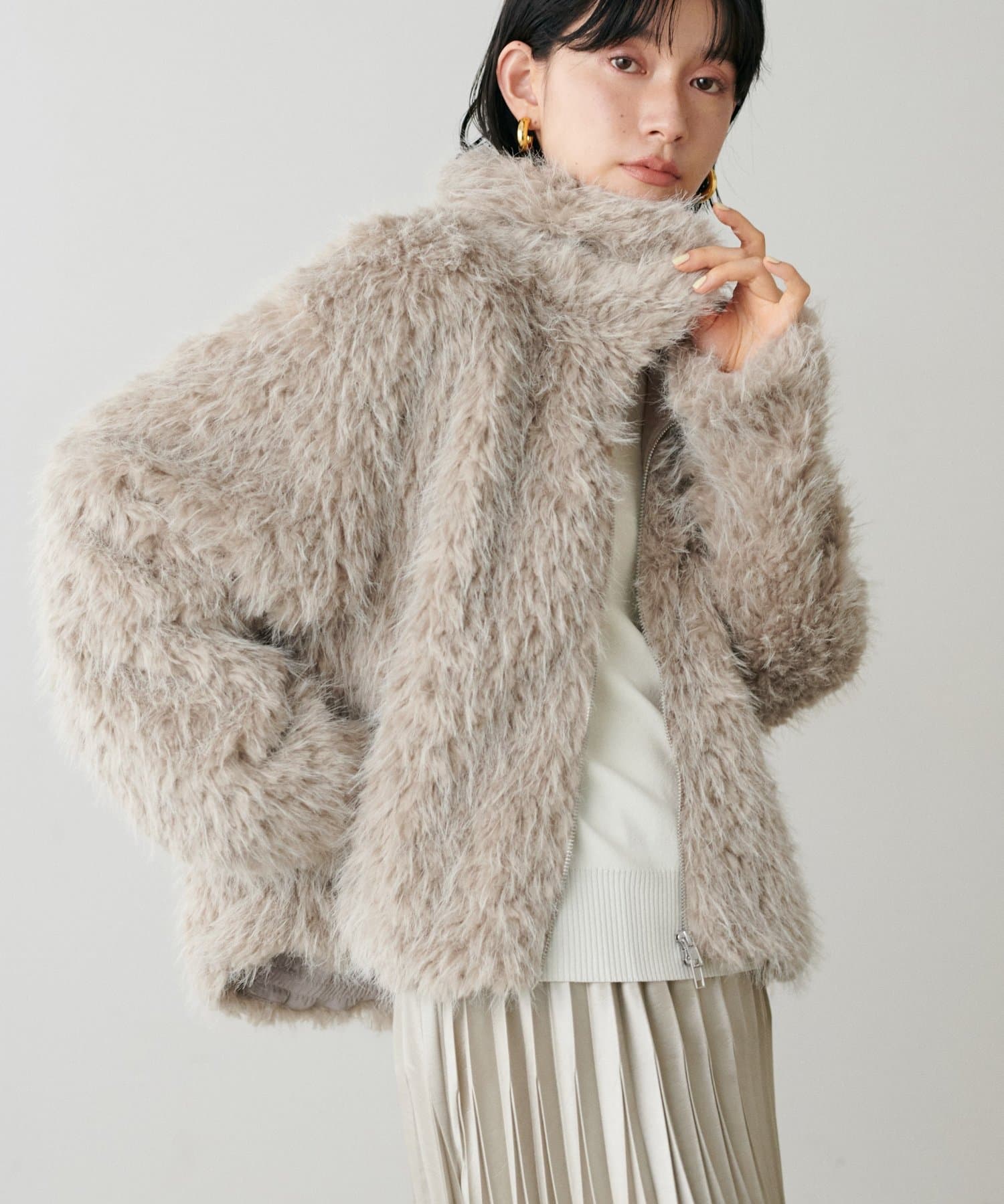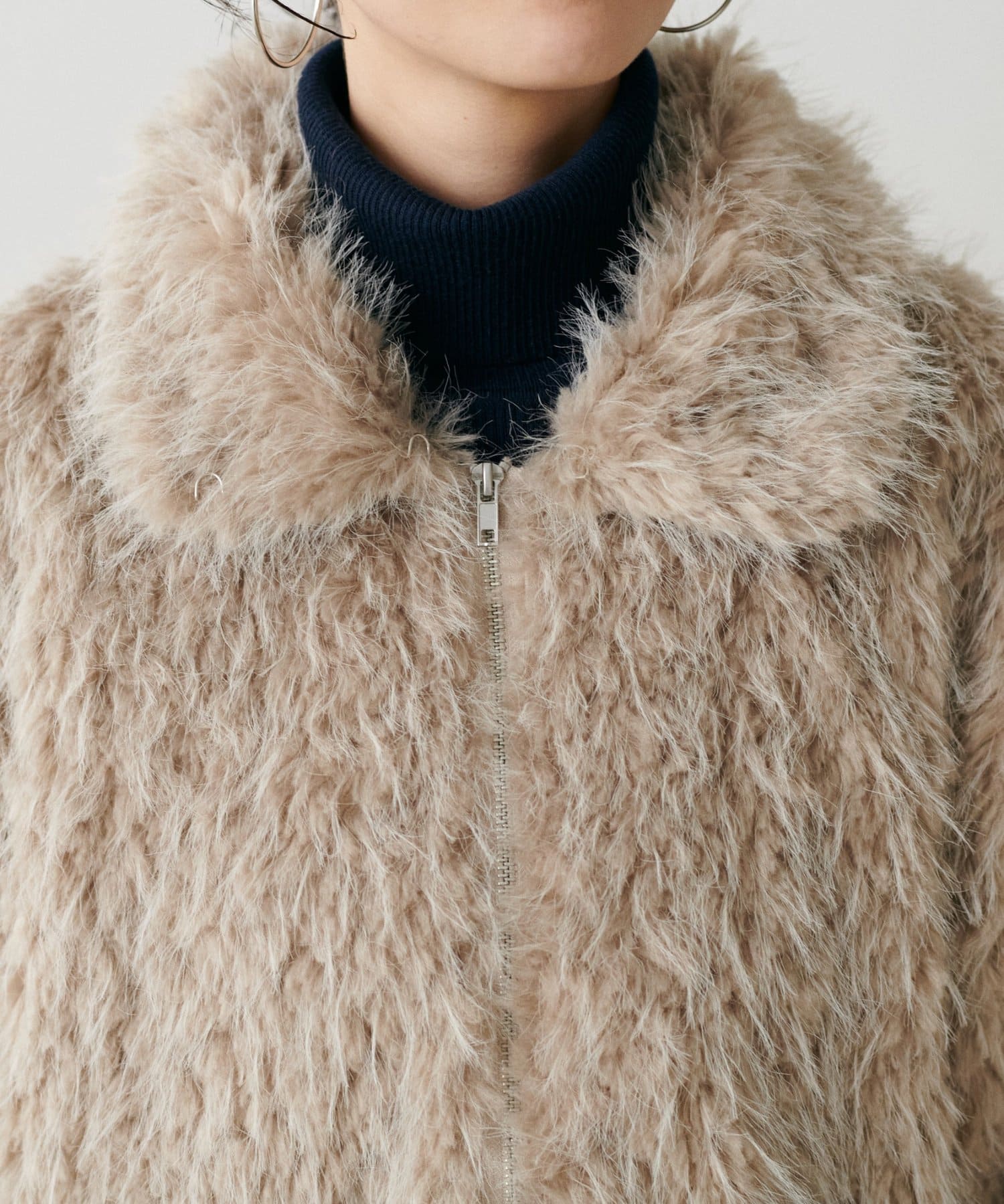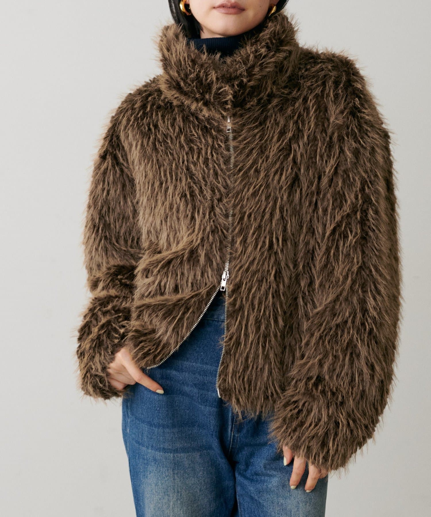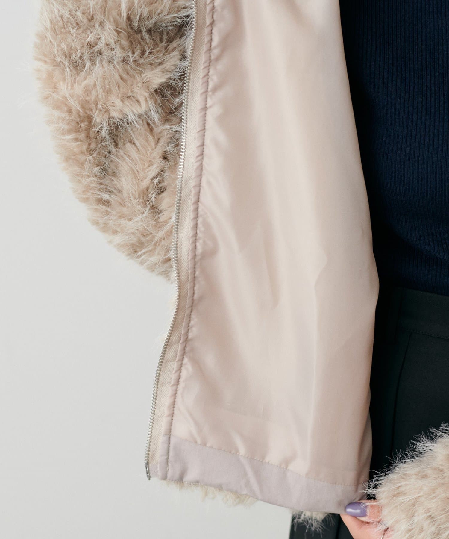 ふわふわのフェイクファーを贅沢に使用した、シーズンムード高まるブルゾン。
