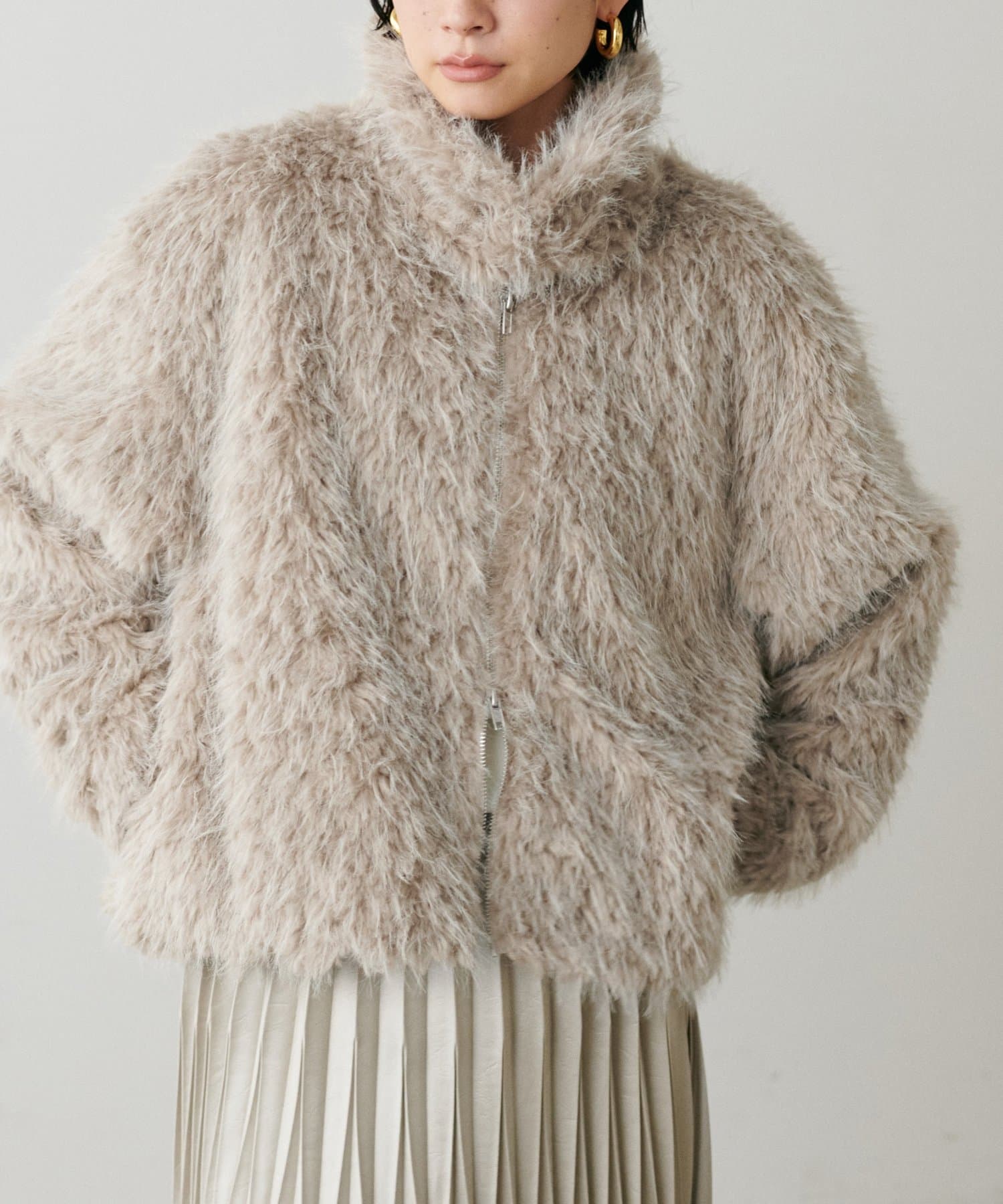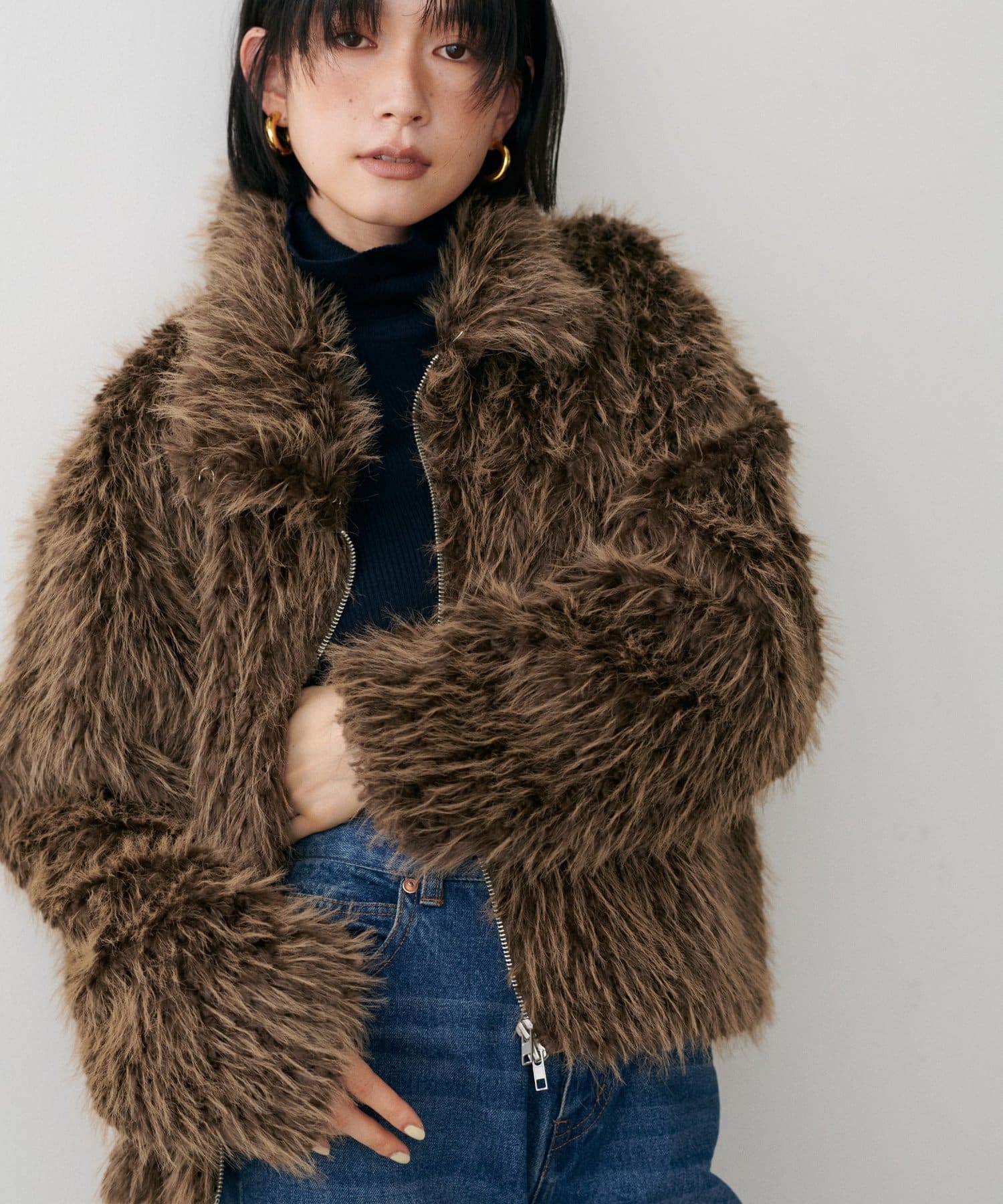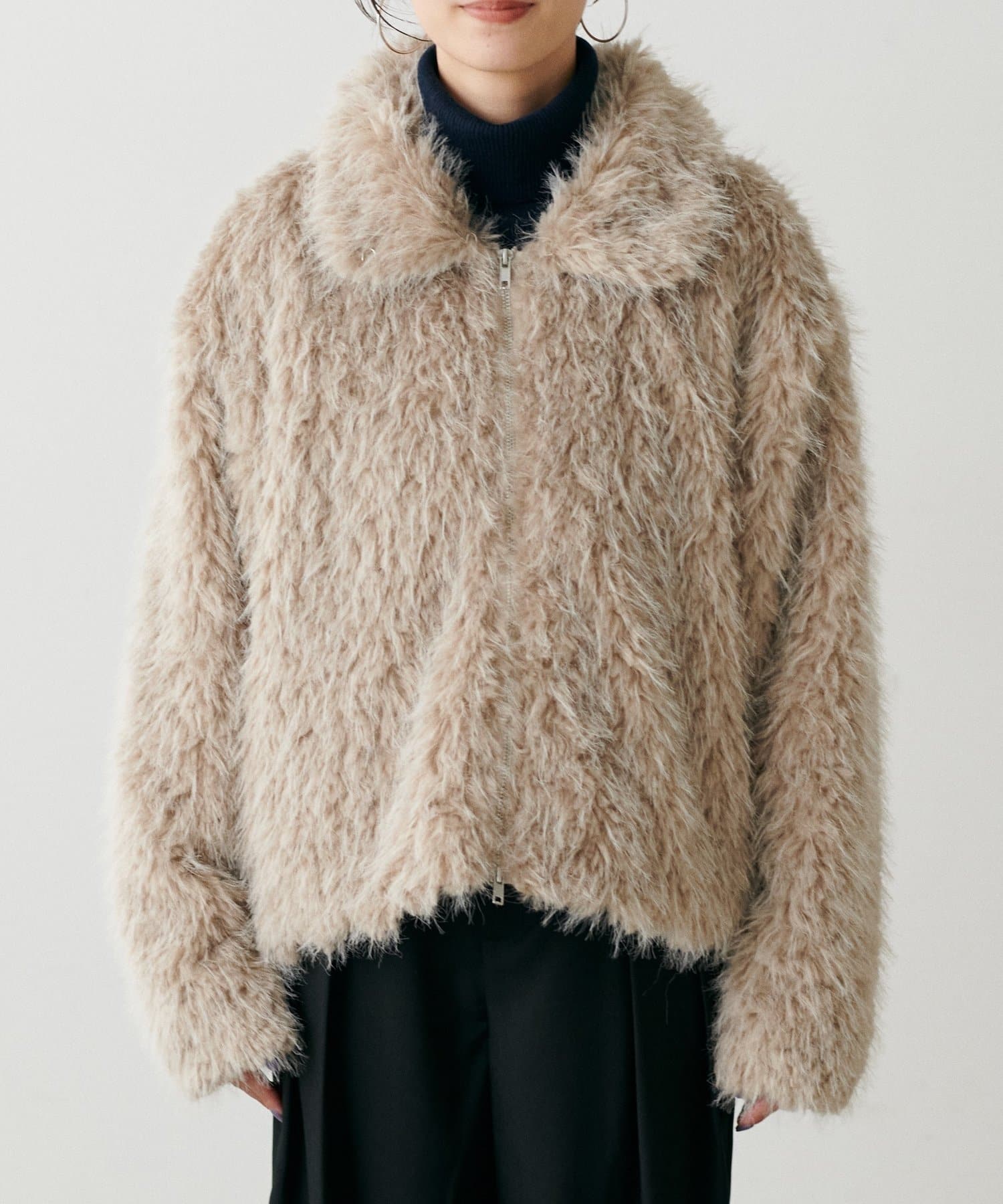 ふわふわのフェイクファーを贅沢に使用した、シーズンムード高まるブルゾン。