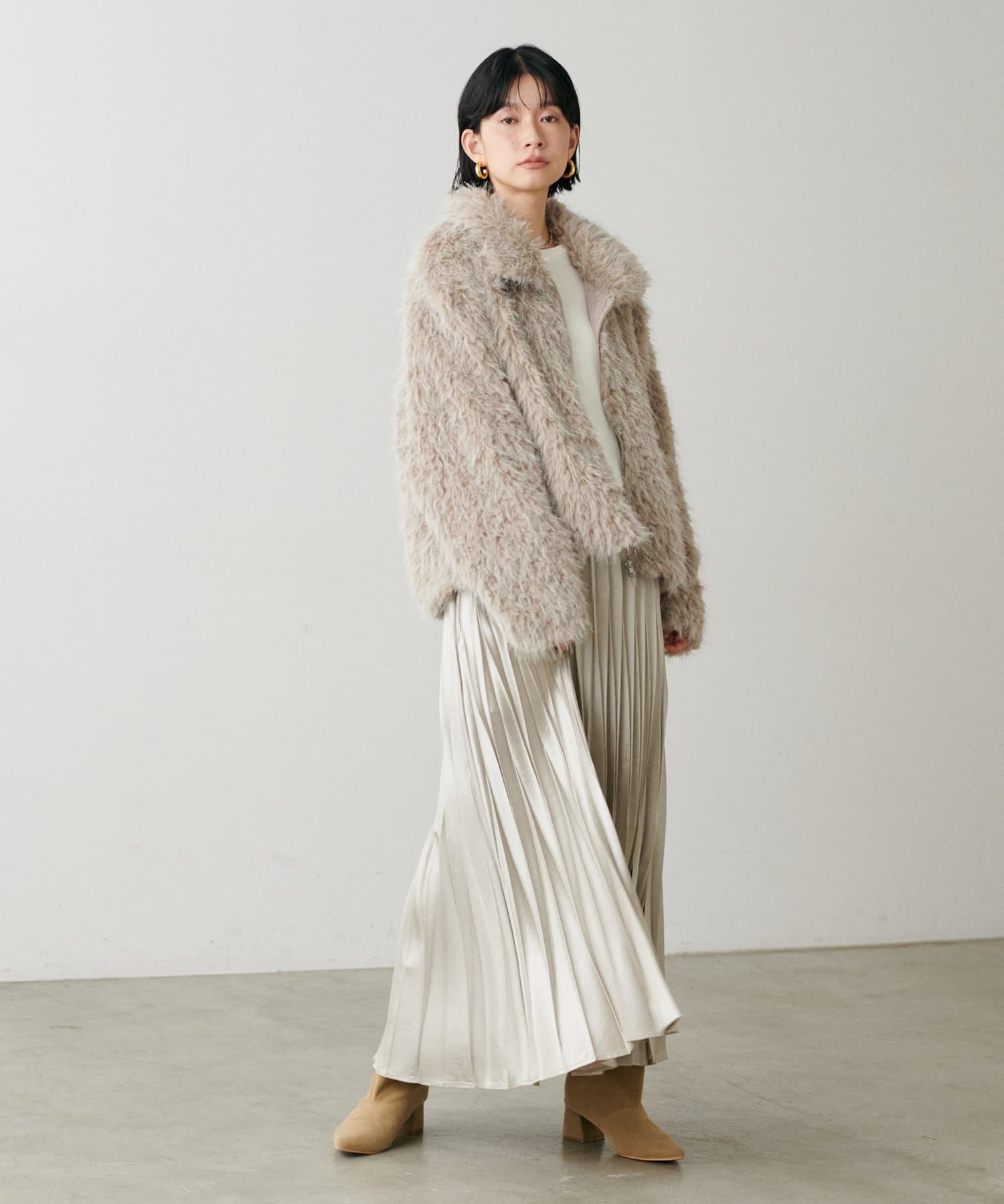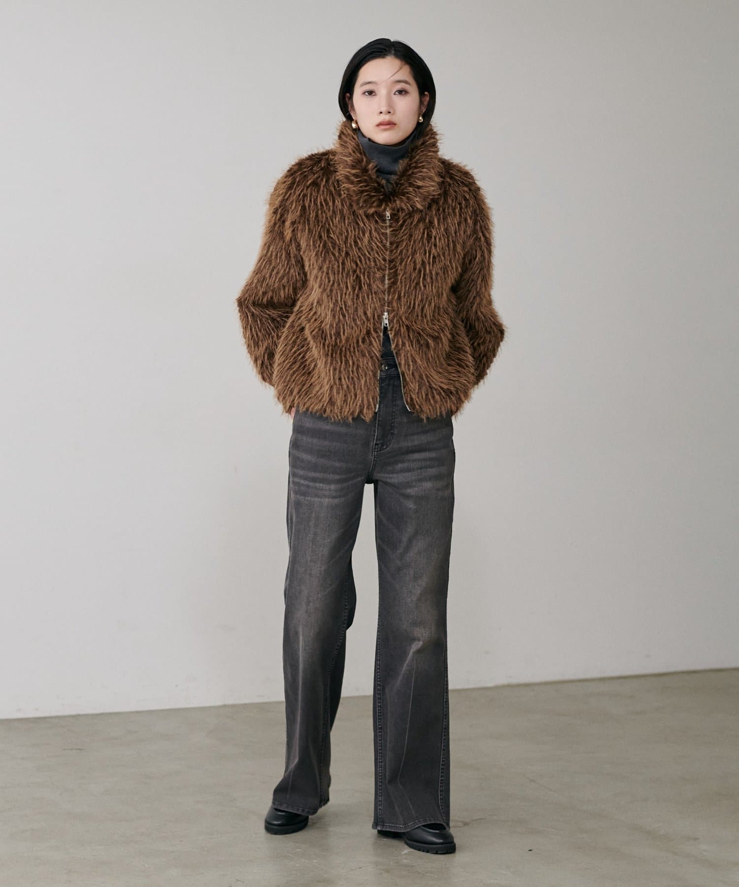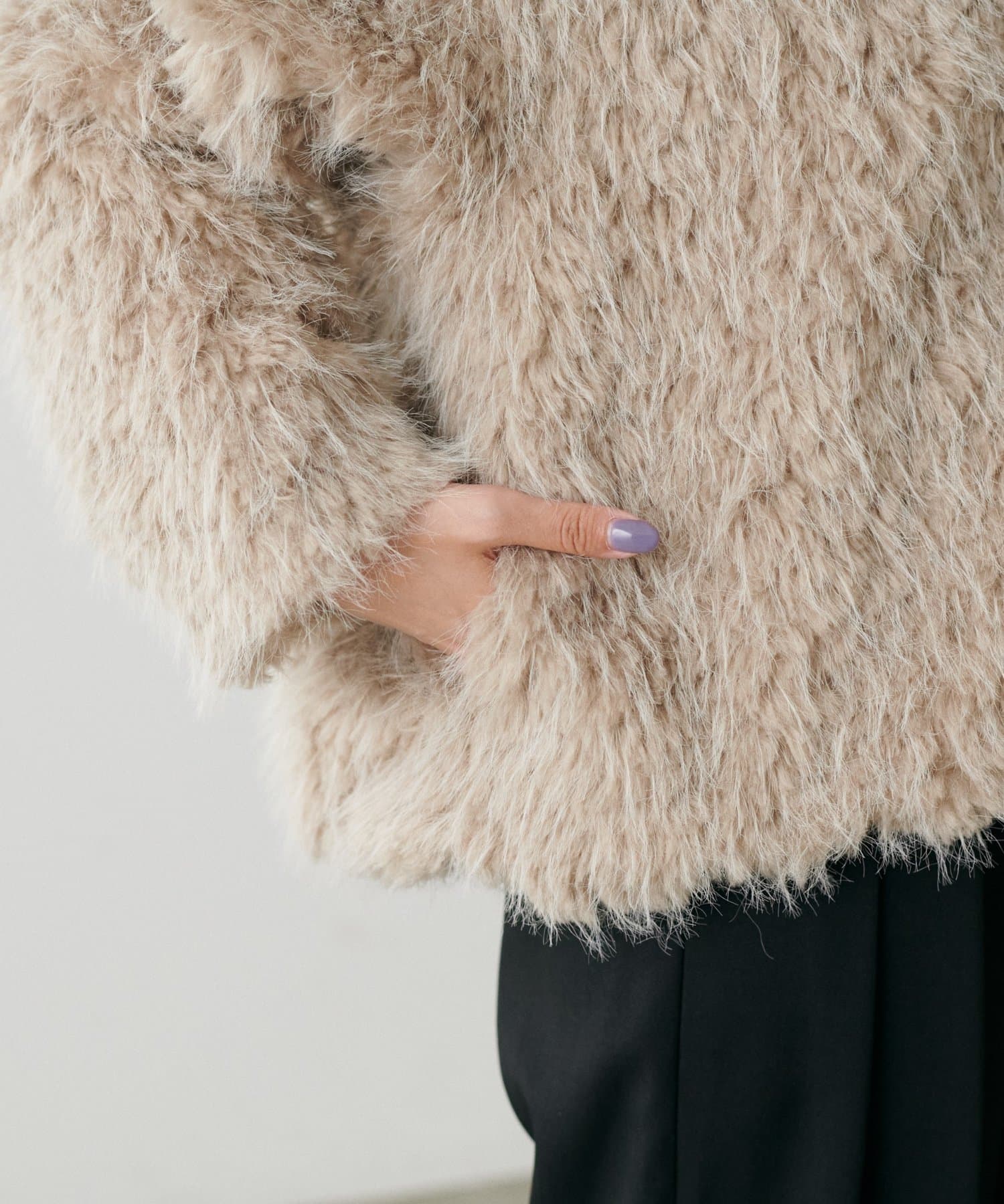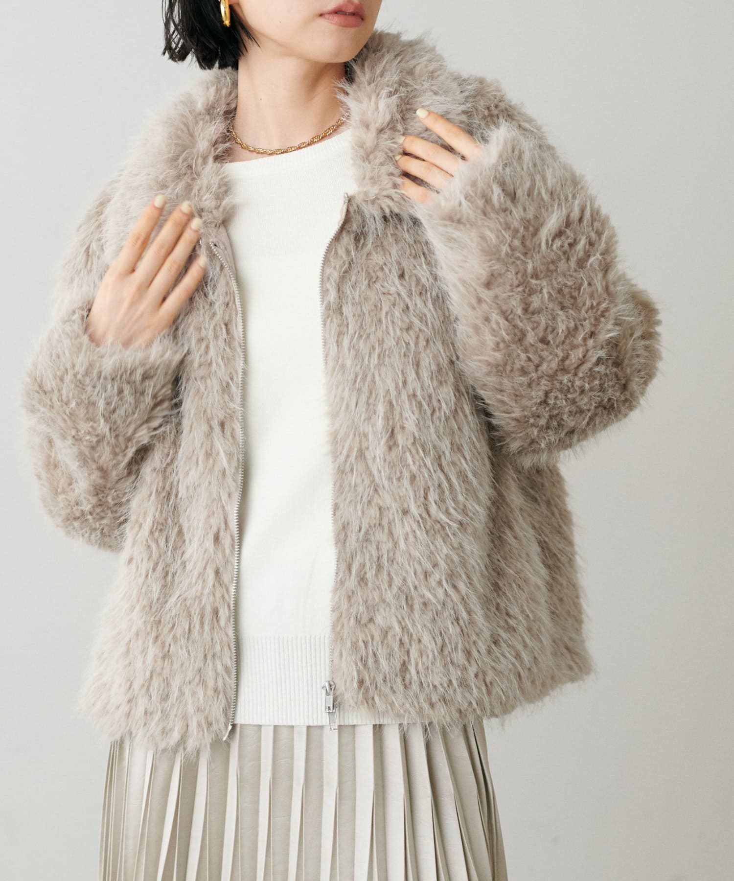ふわふわのフェイクファーを贅沢に使用した、シーズンムード高まるブルゾン。