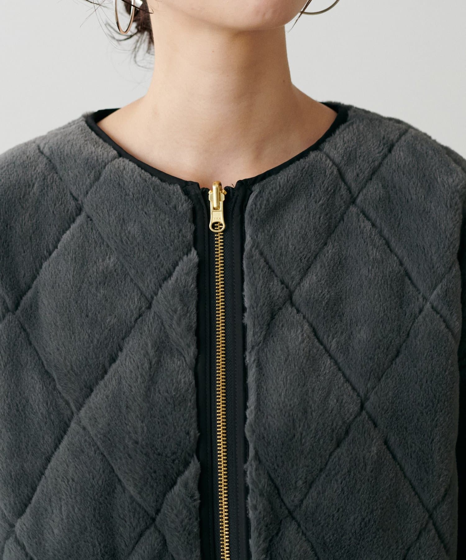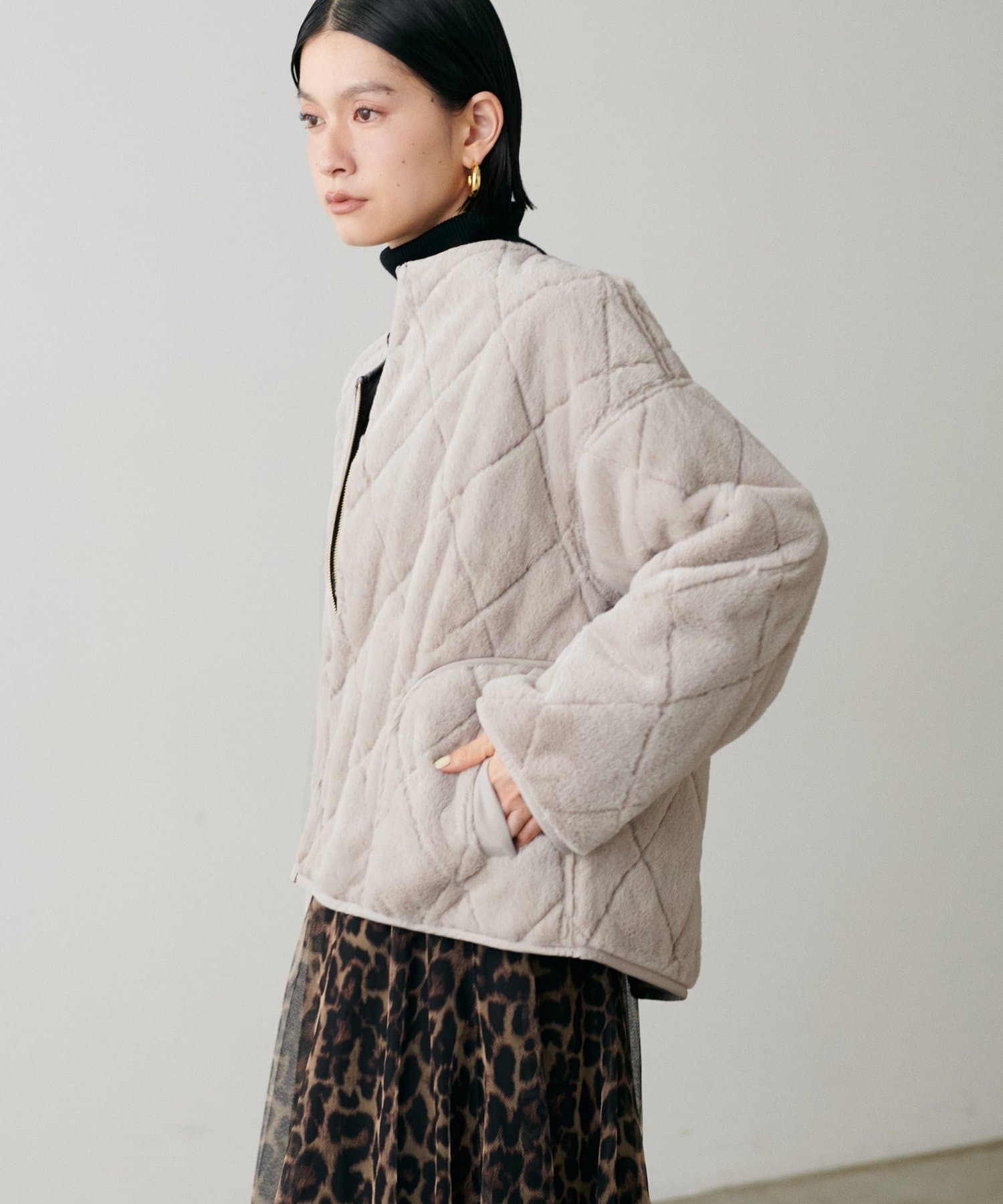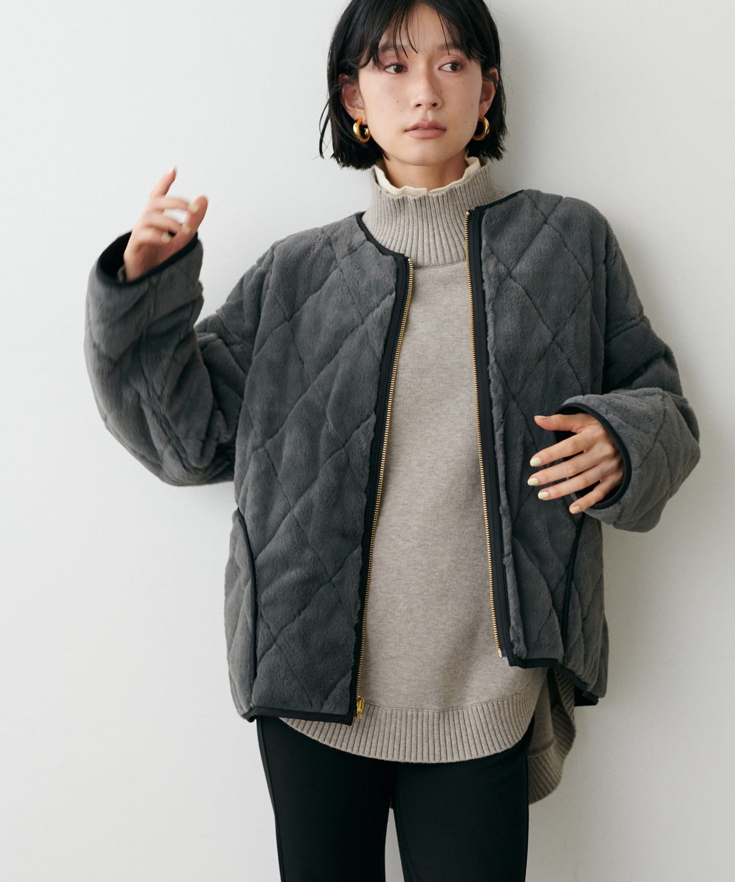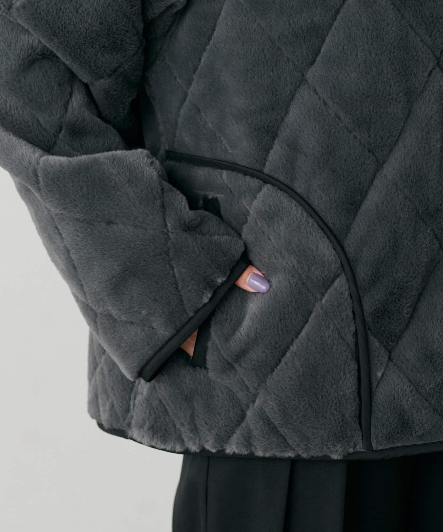 毛足が長めで滑らかなファーと、キルティングをドッキングさせ