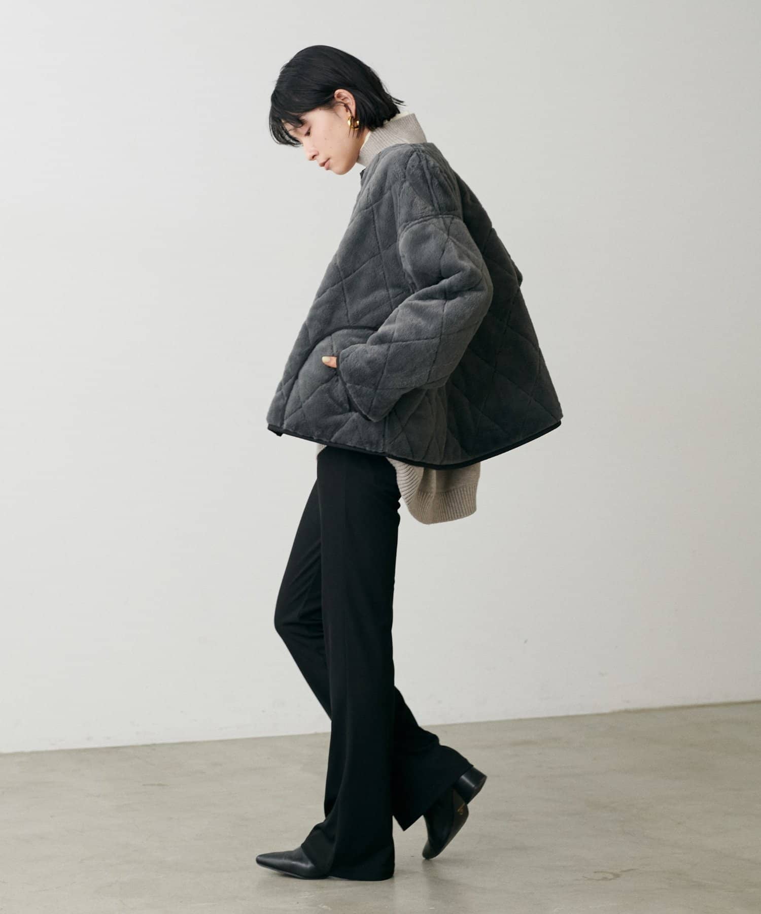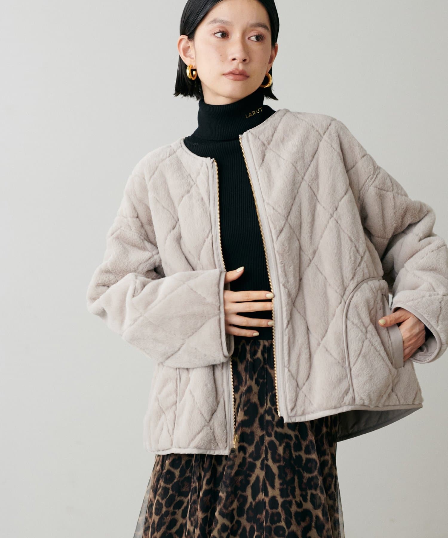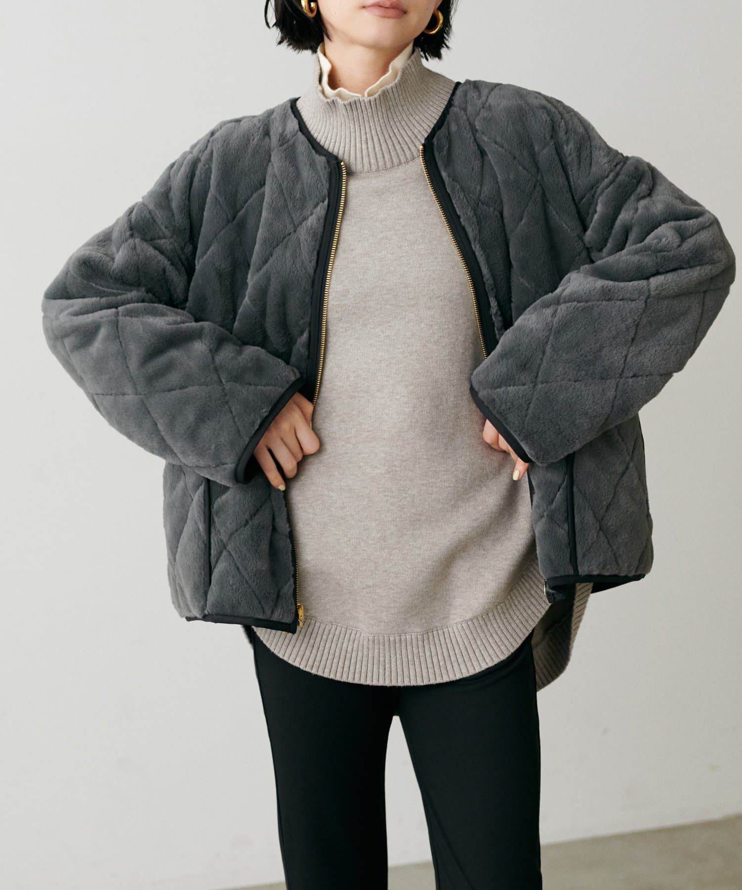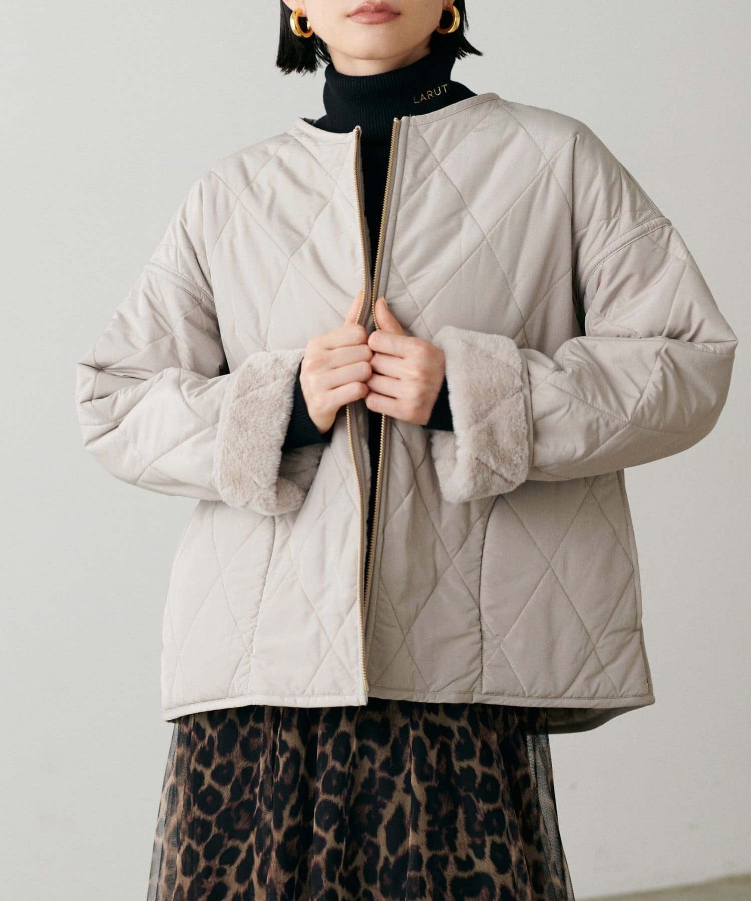 毛足が長めで滑らかなファーと、キルティングをドッキングさせ