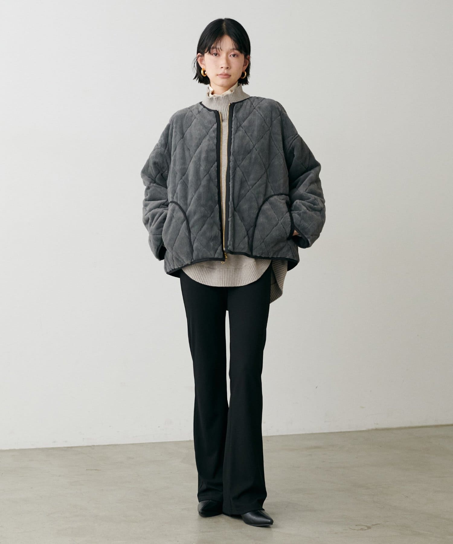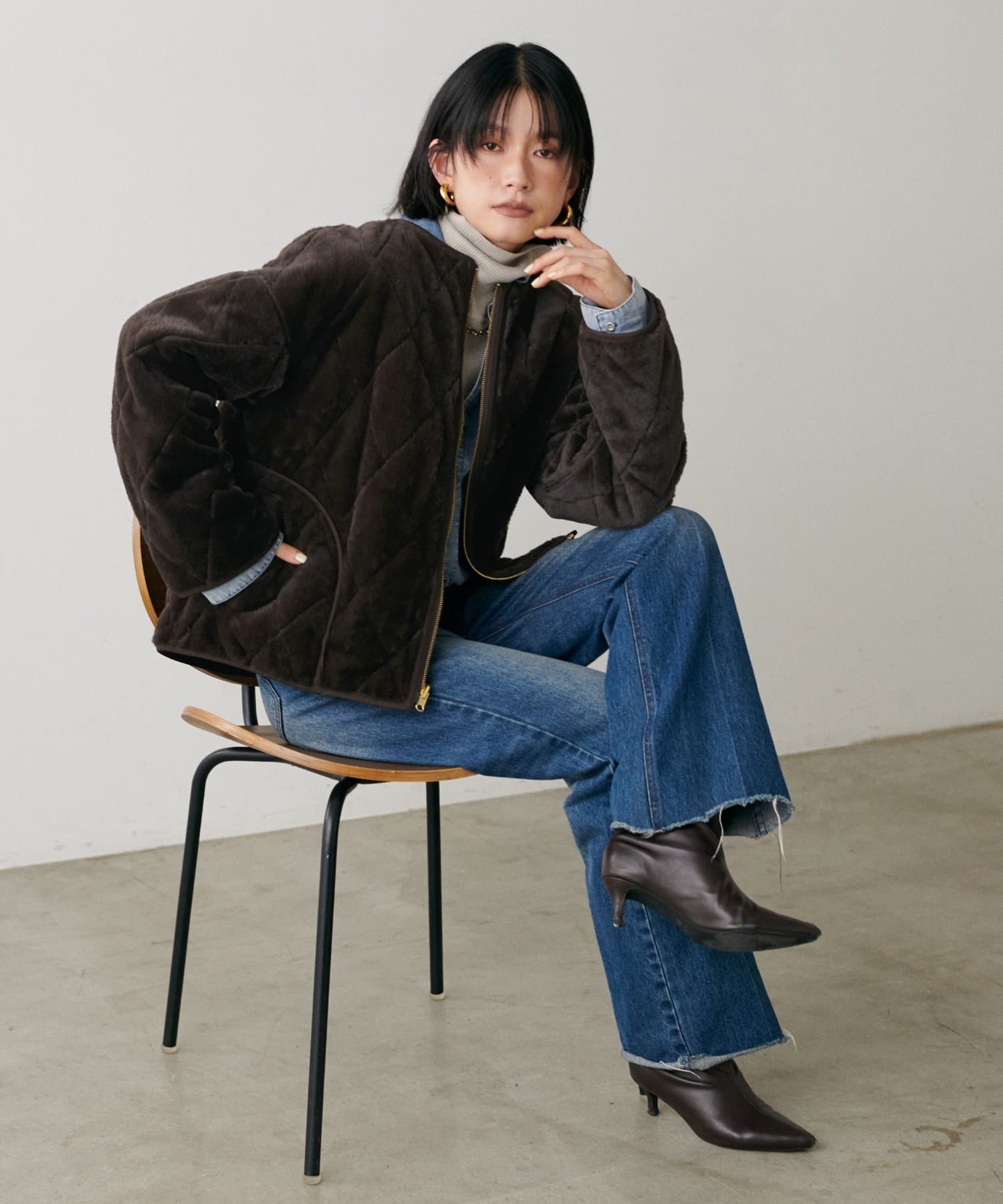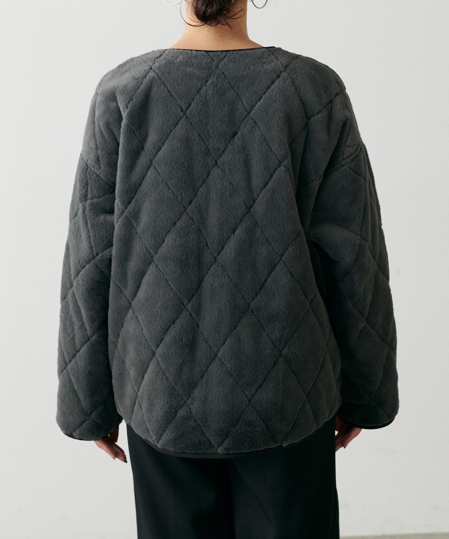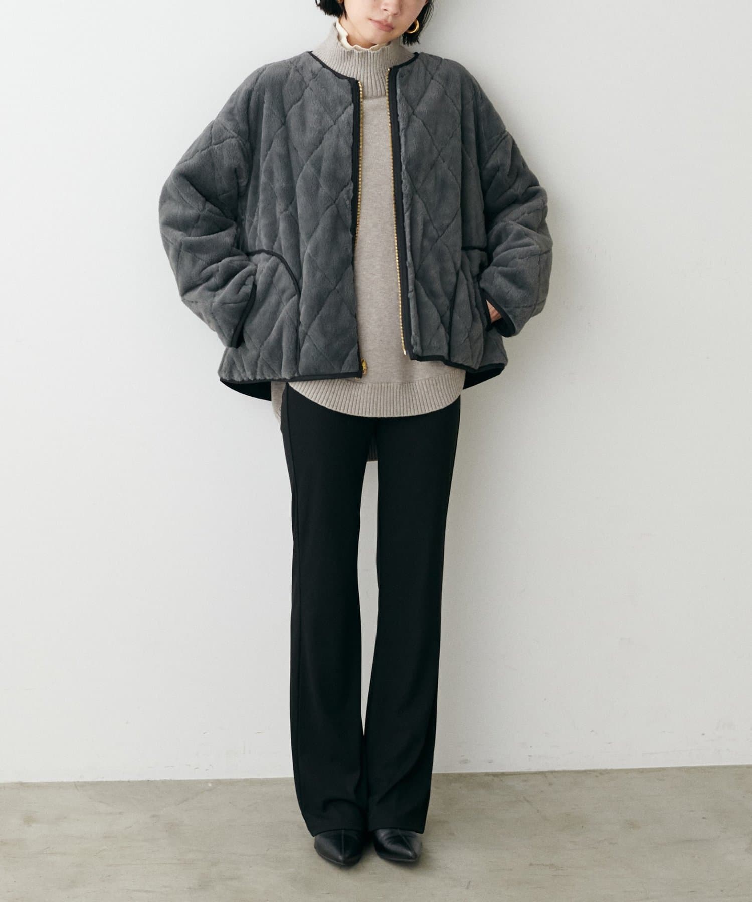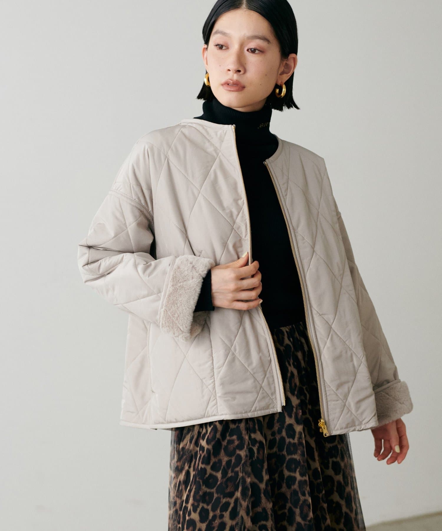 毛足が長めで滑らかなファーと、キルティングをドッキングさせ