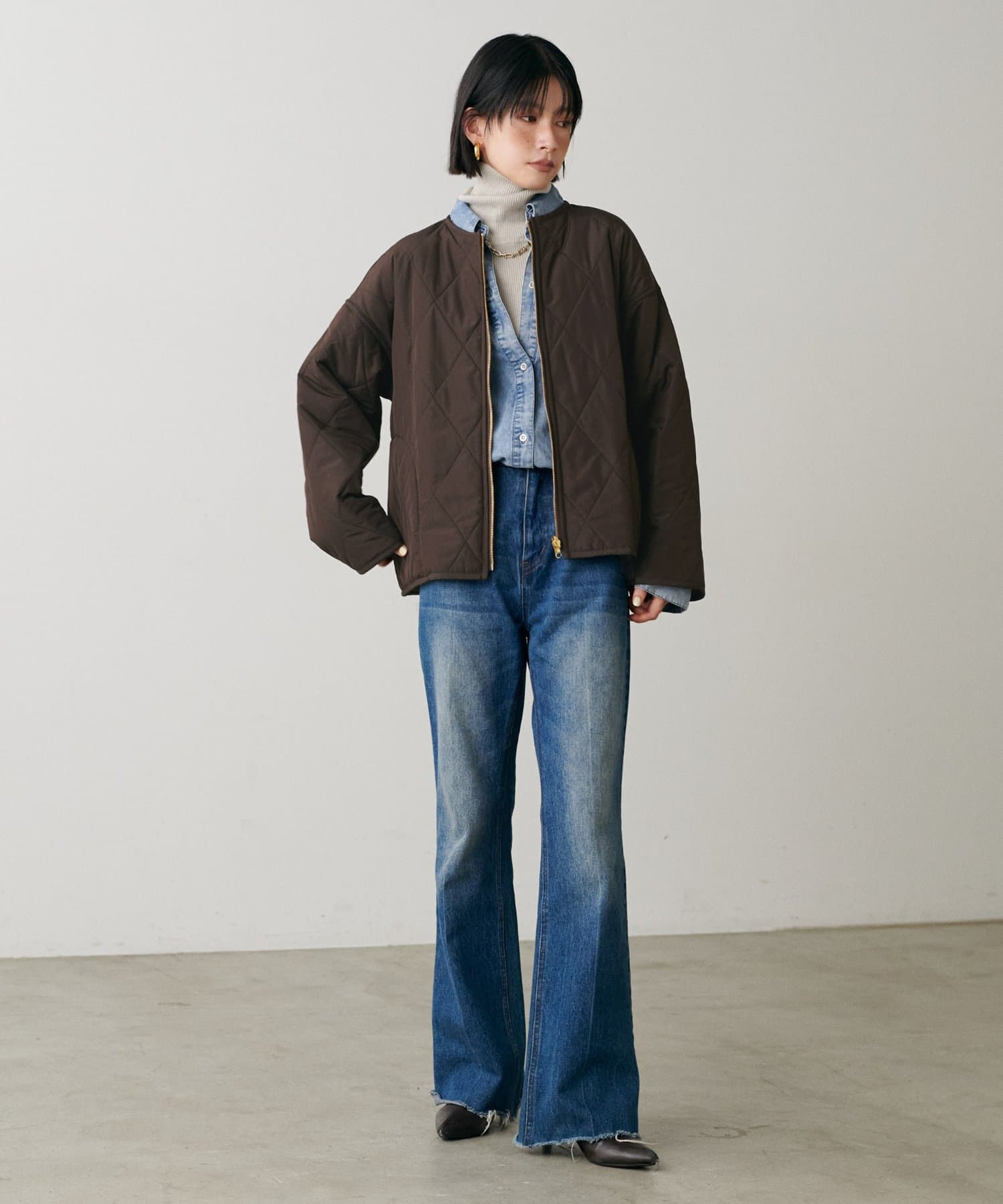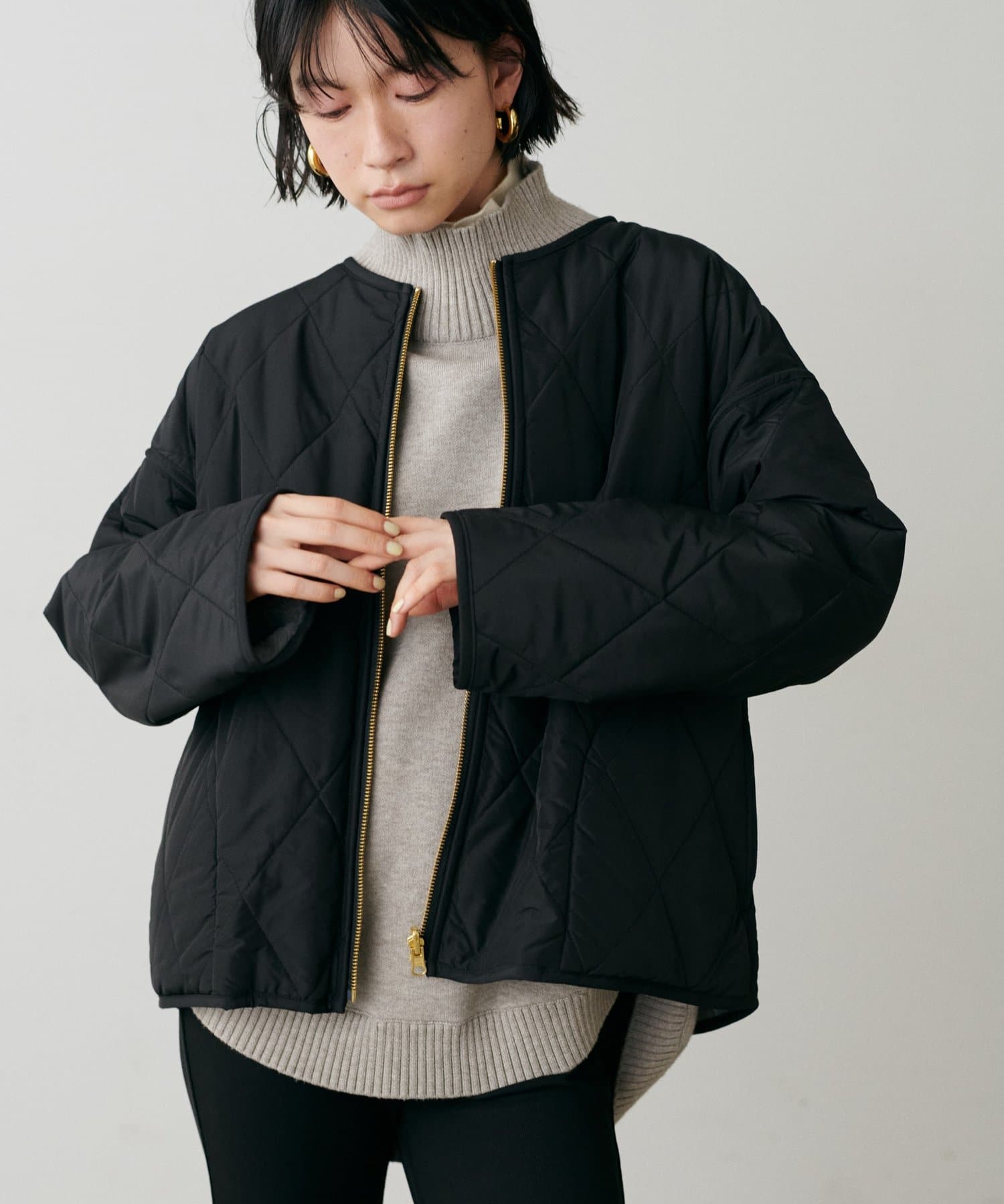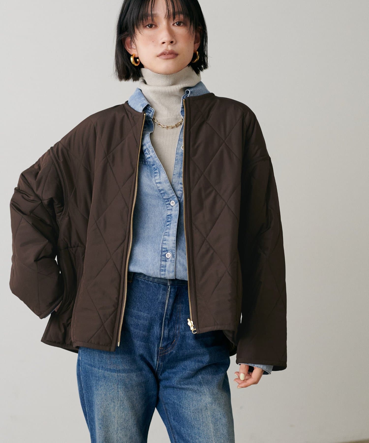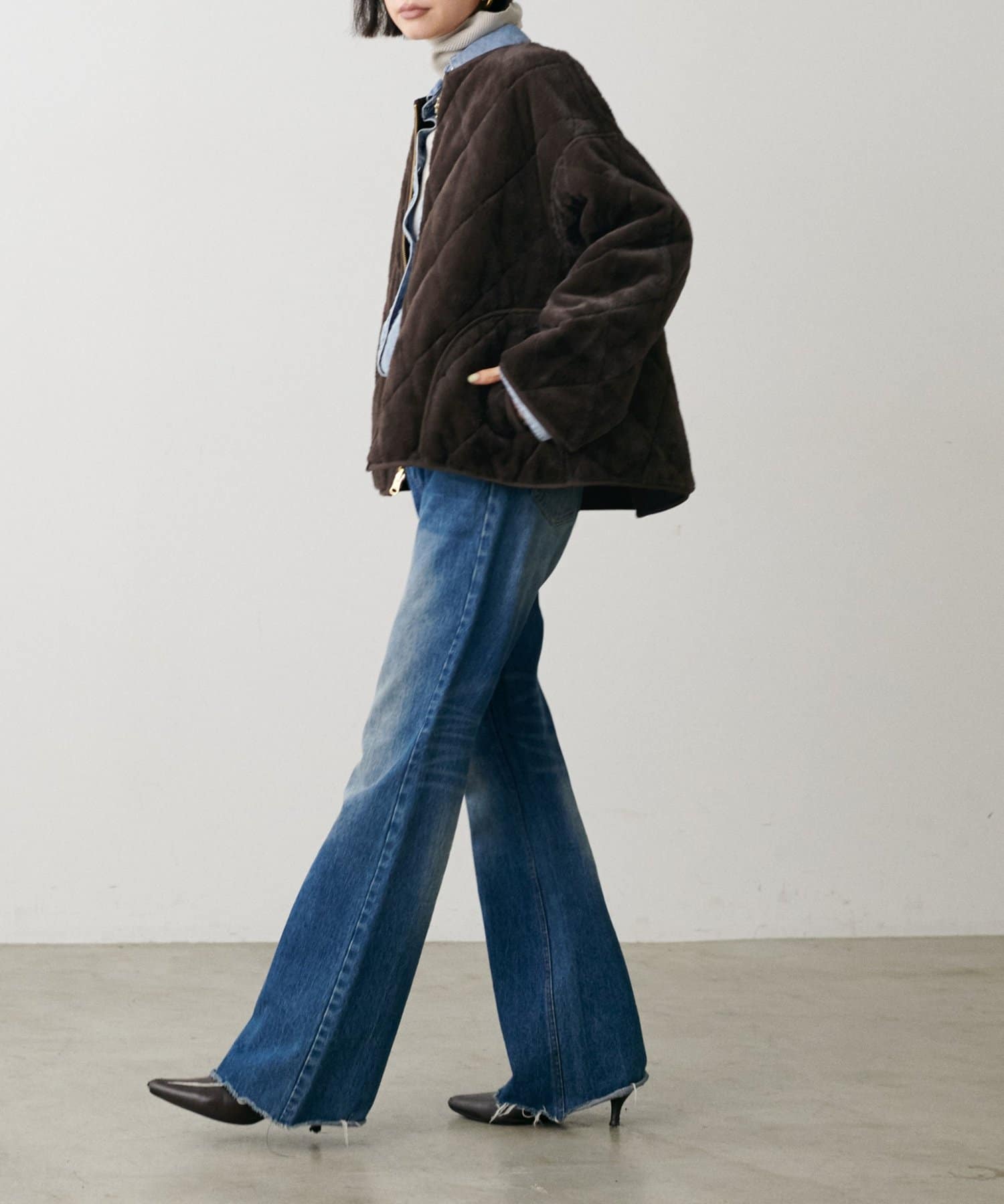 毛足が長めで滑らかなファーと、キルティングをドッキングさせ