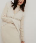 ニットワンピースはチクチクしない糸で、伸縮性のあるリブ編み仕上げ。