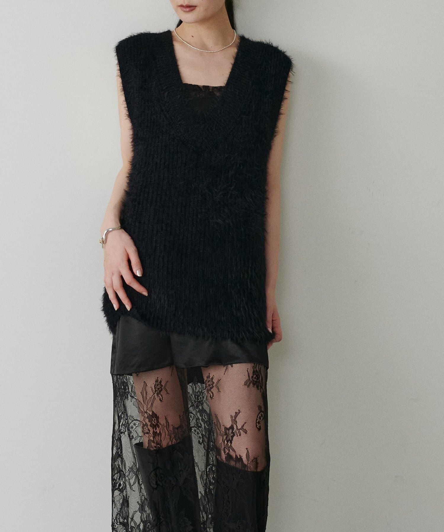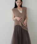 ニットベストは、レーススカートやデニムパンツまで色々なボトムスとマッチ。