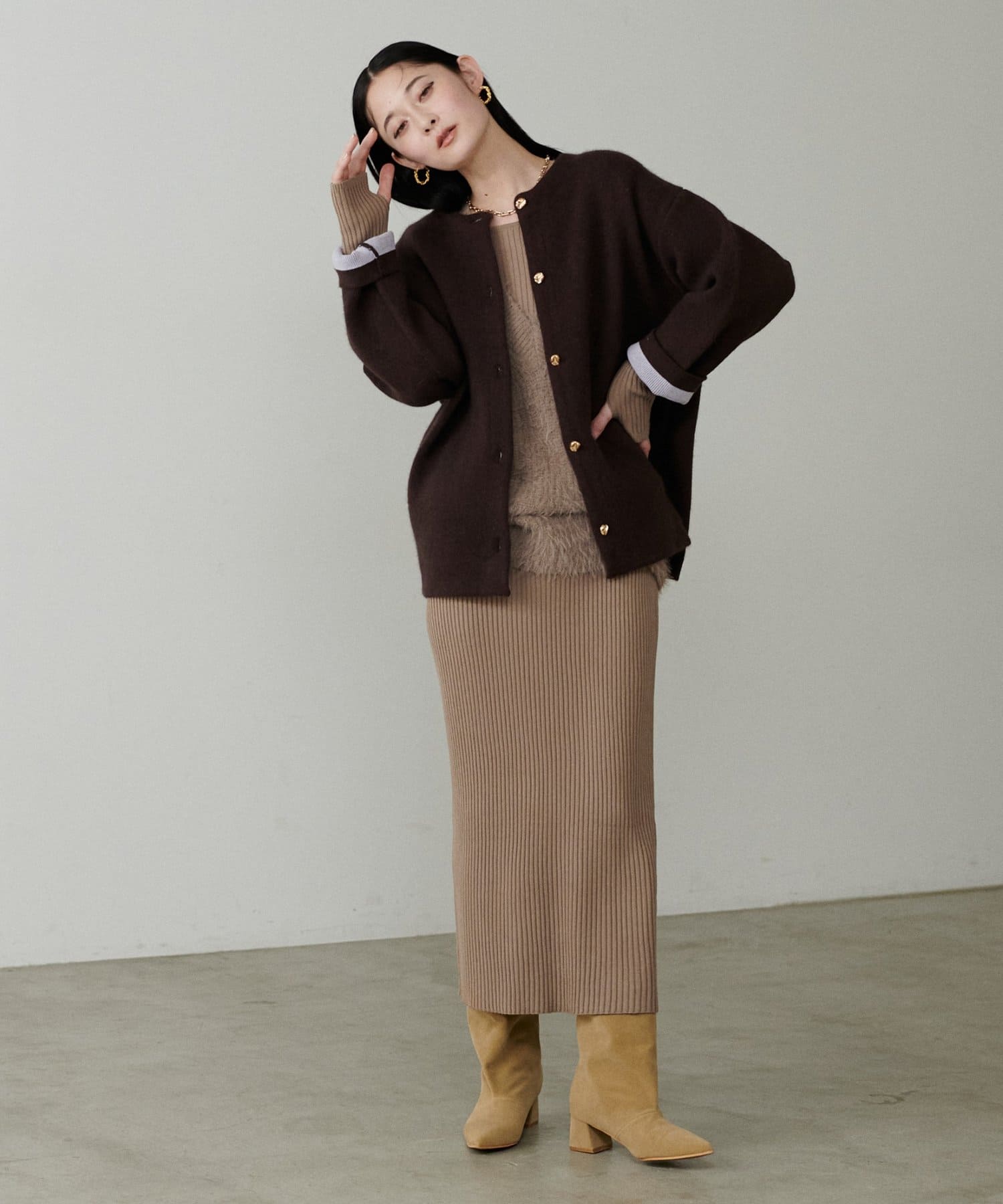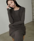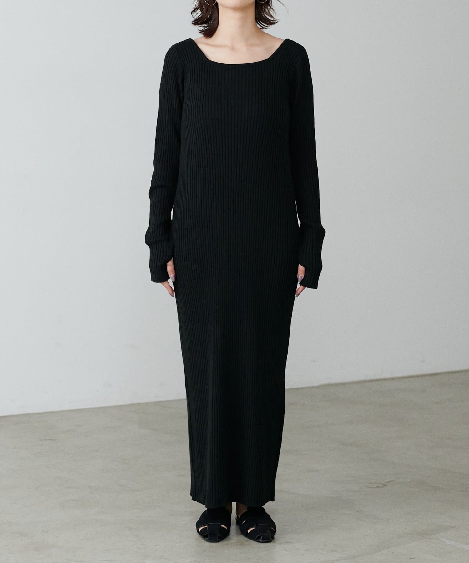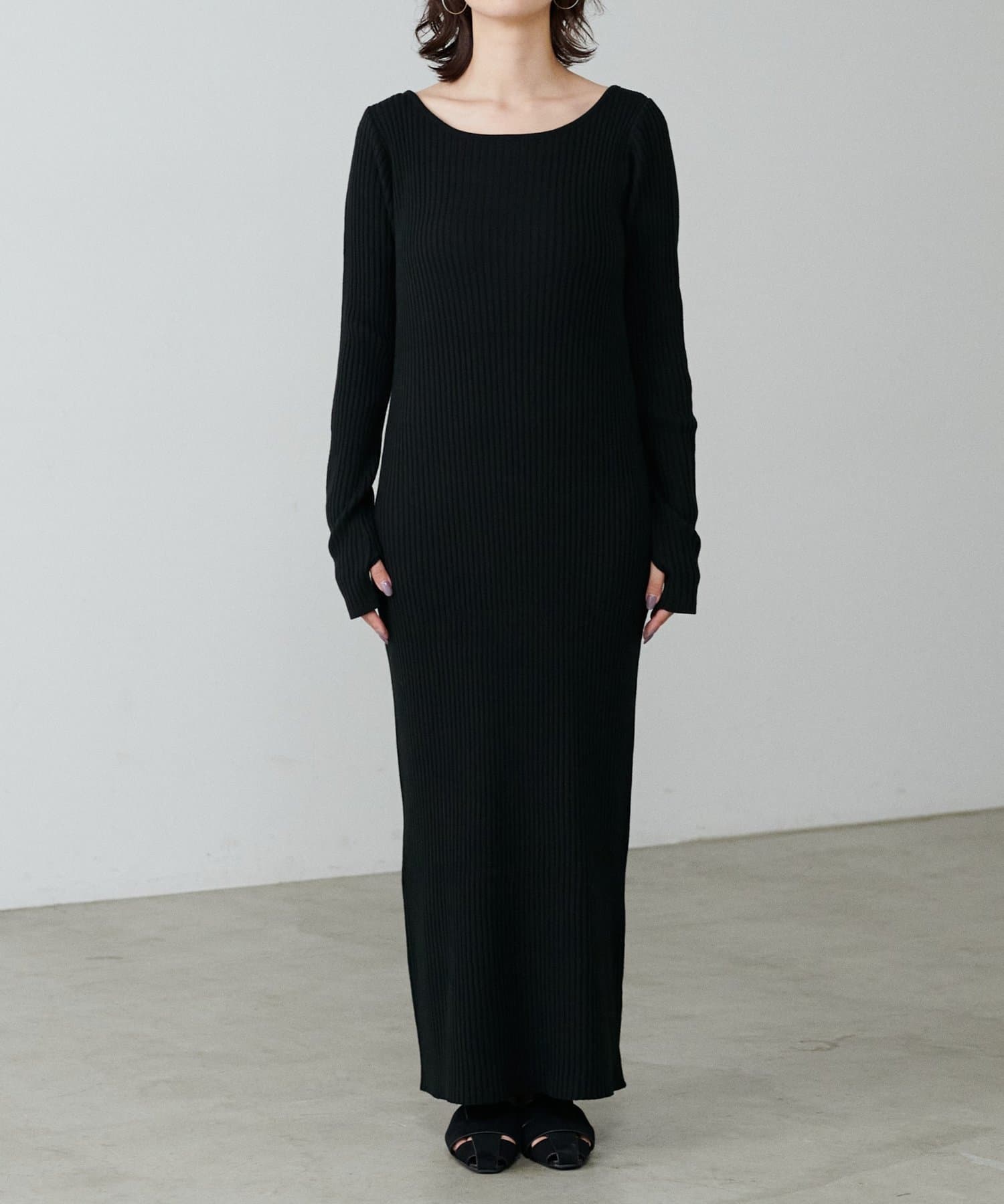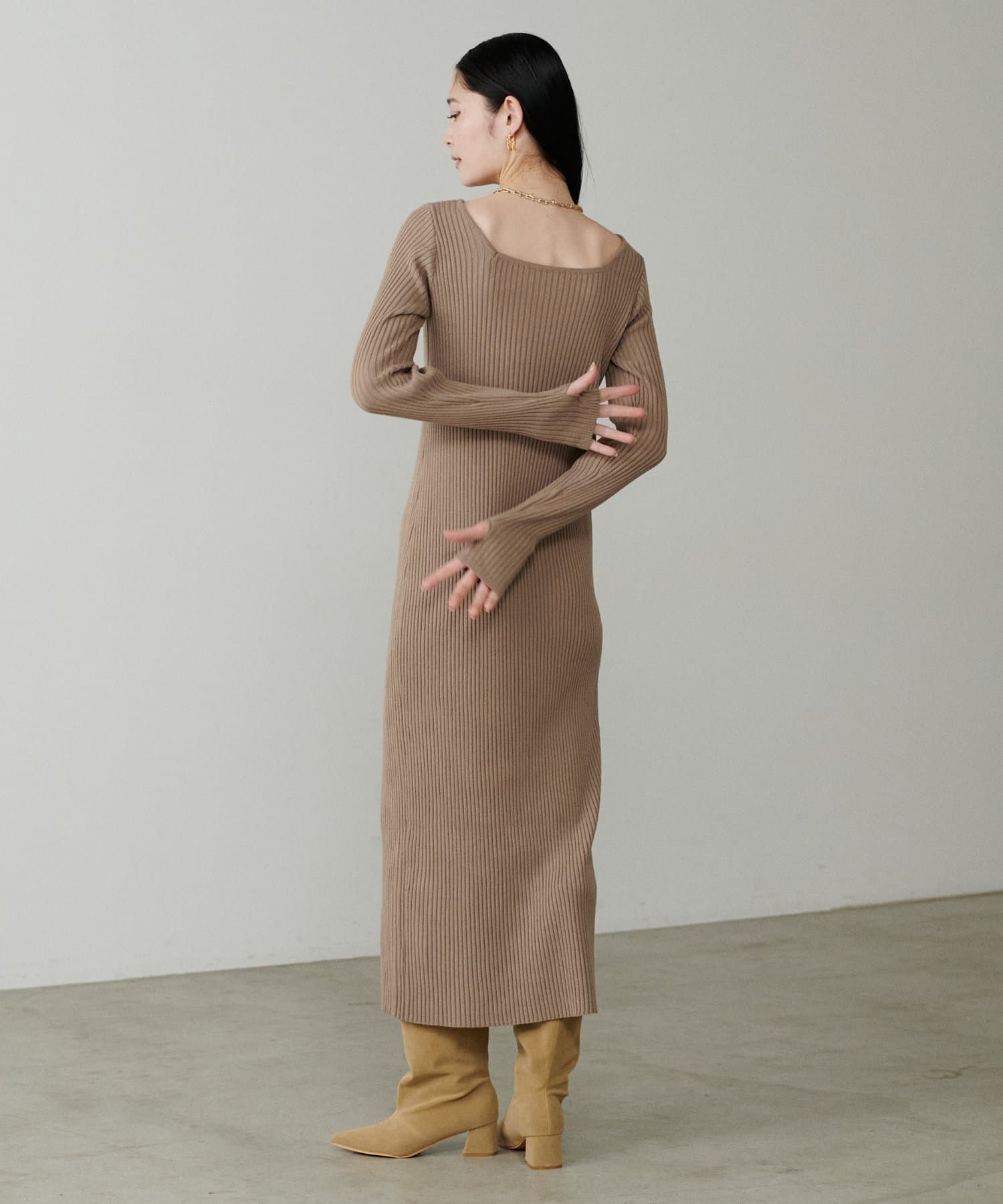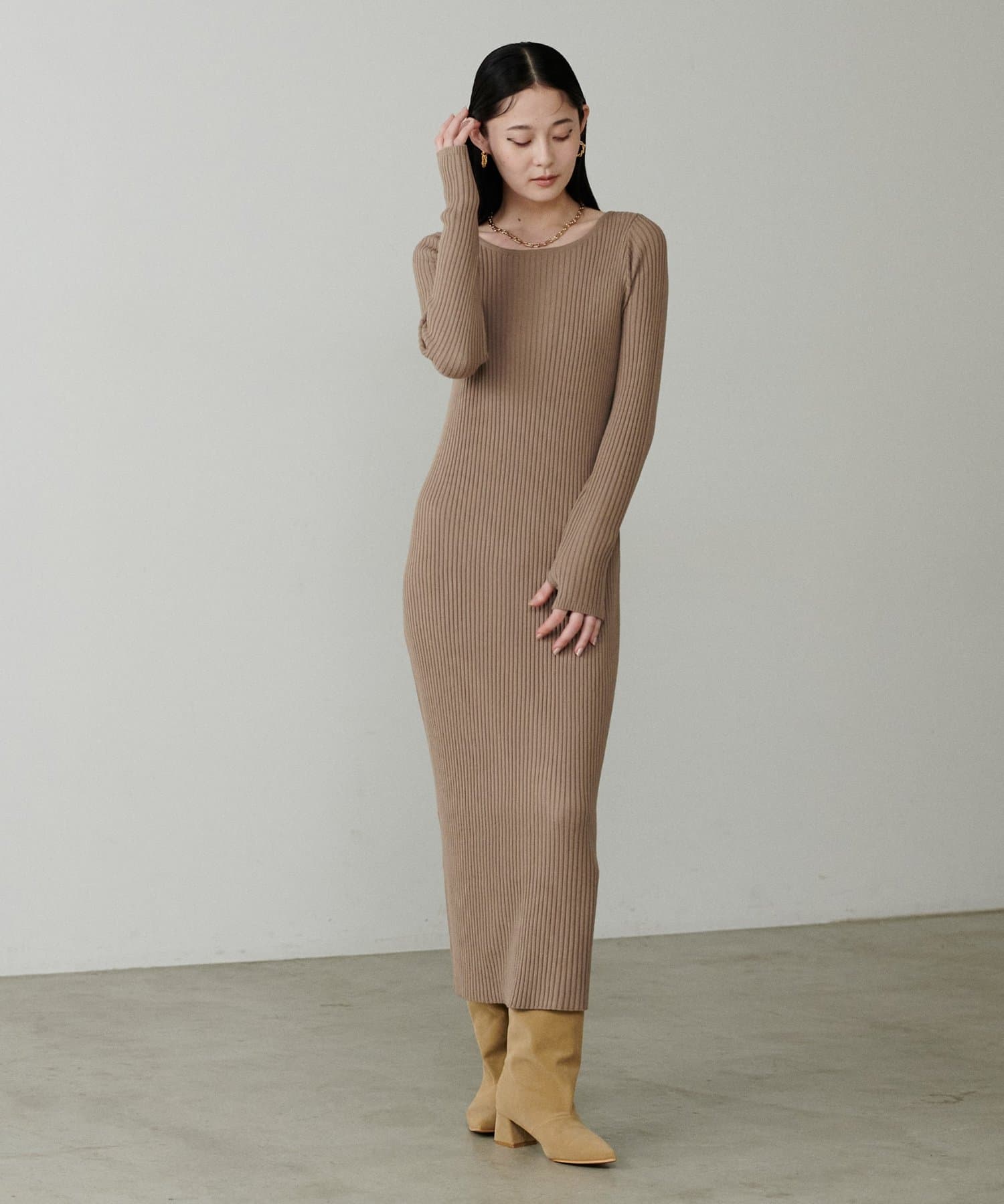 リブニットワンピは程よく肉厚で伸縮性が高く、柔らかく身体にフィットするのが魅力。