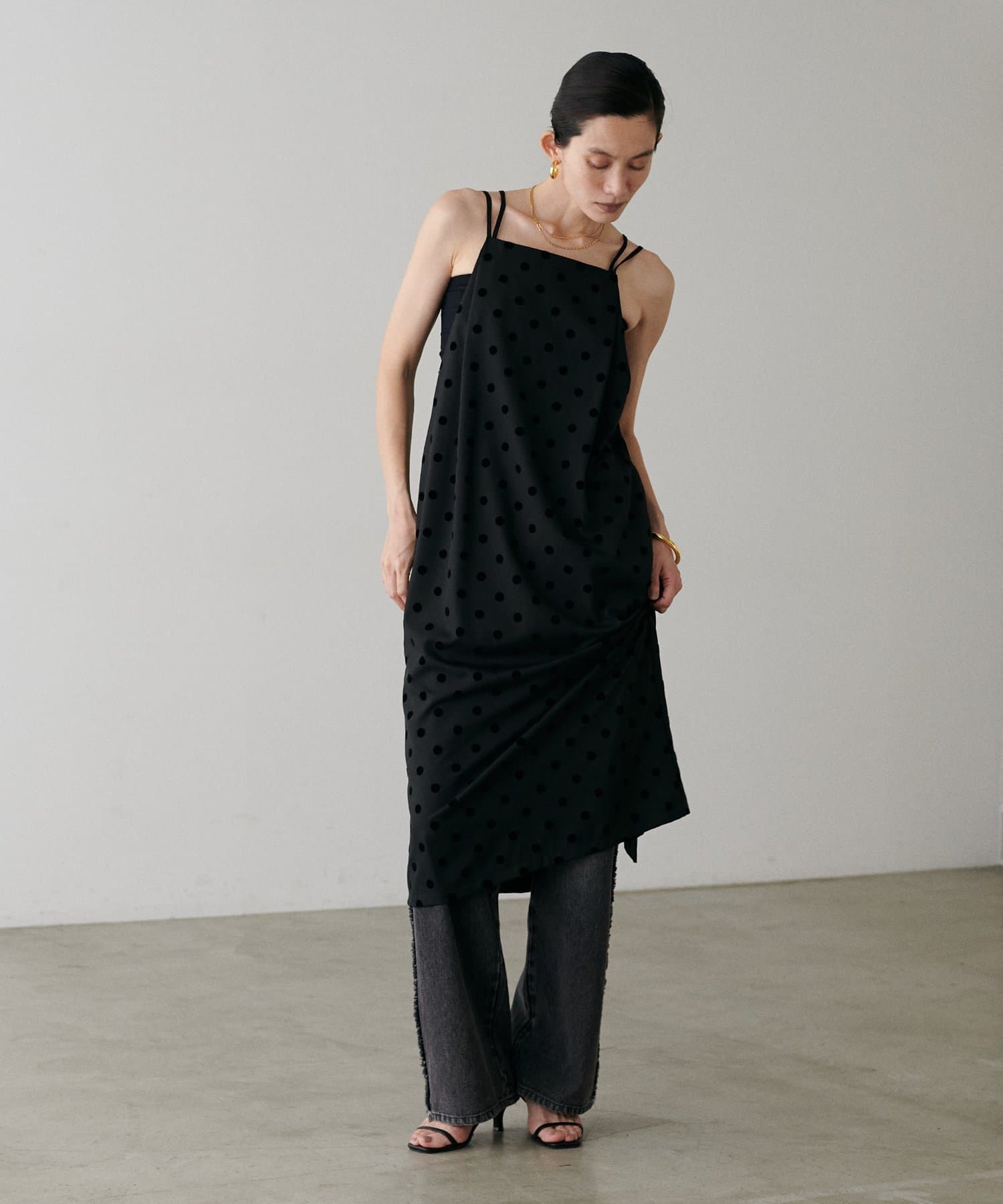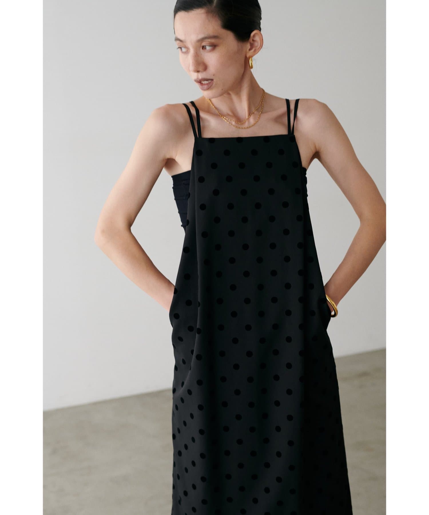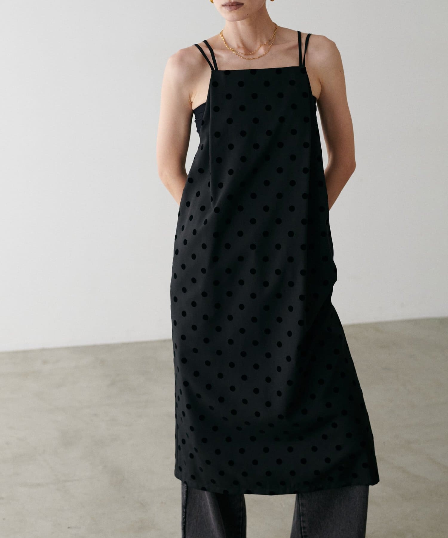 立体感のあるフロッキードットが施されたツイル素材のキャミワンピース。
