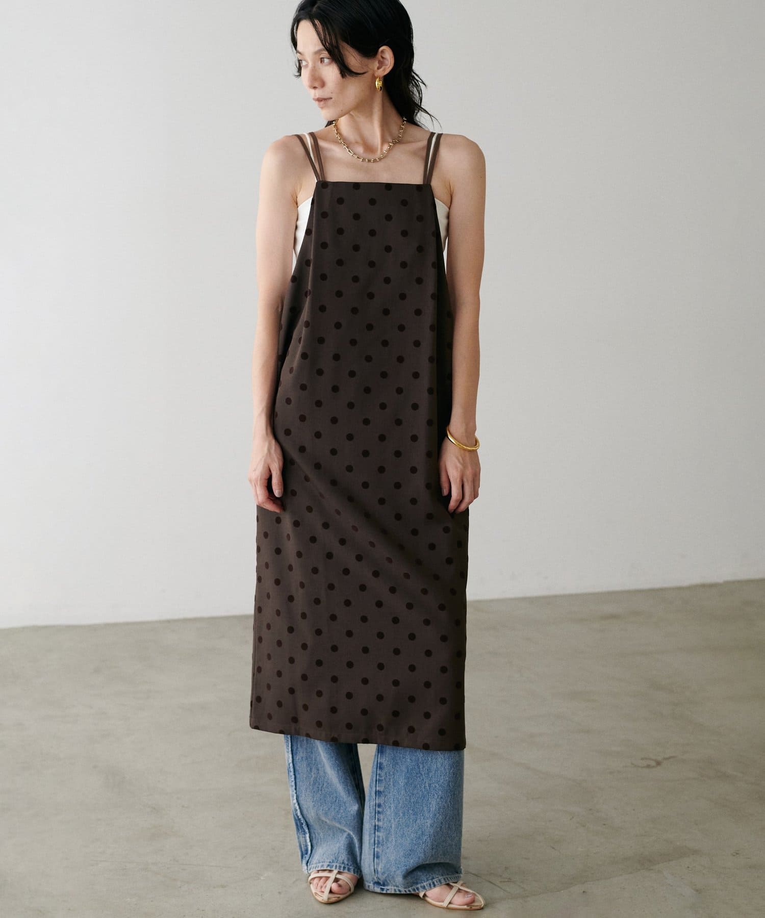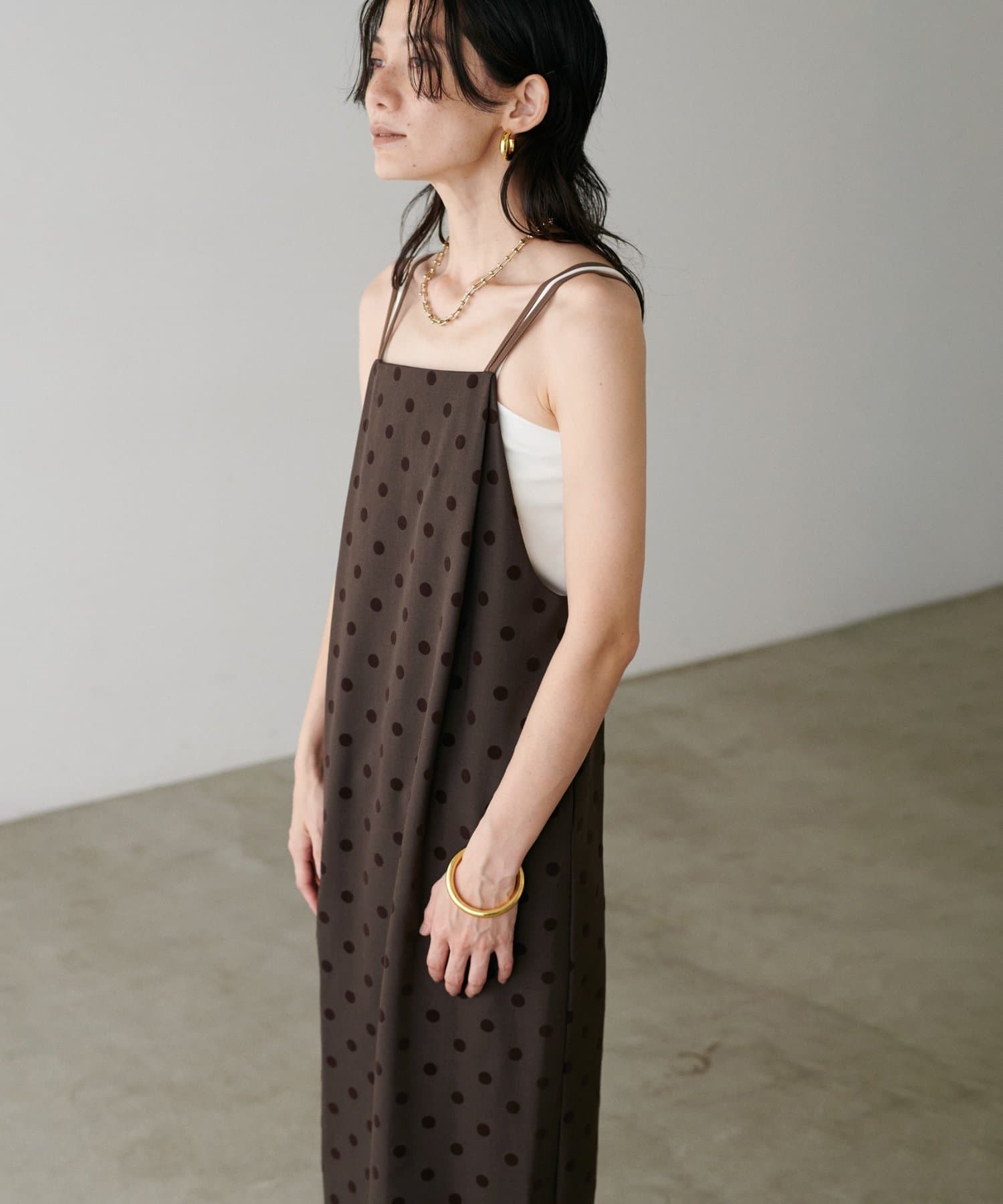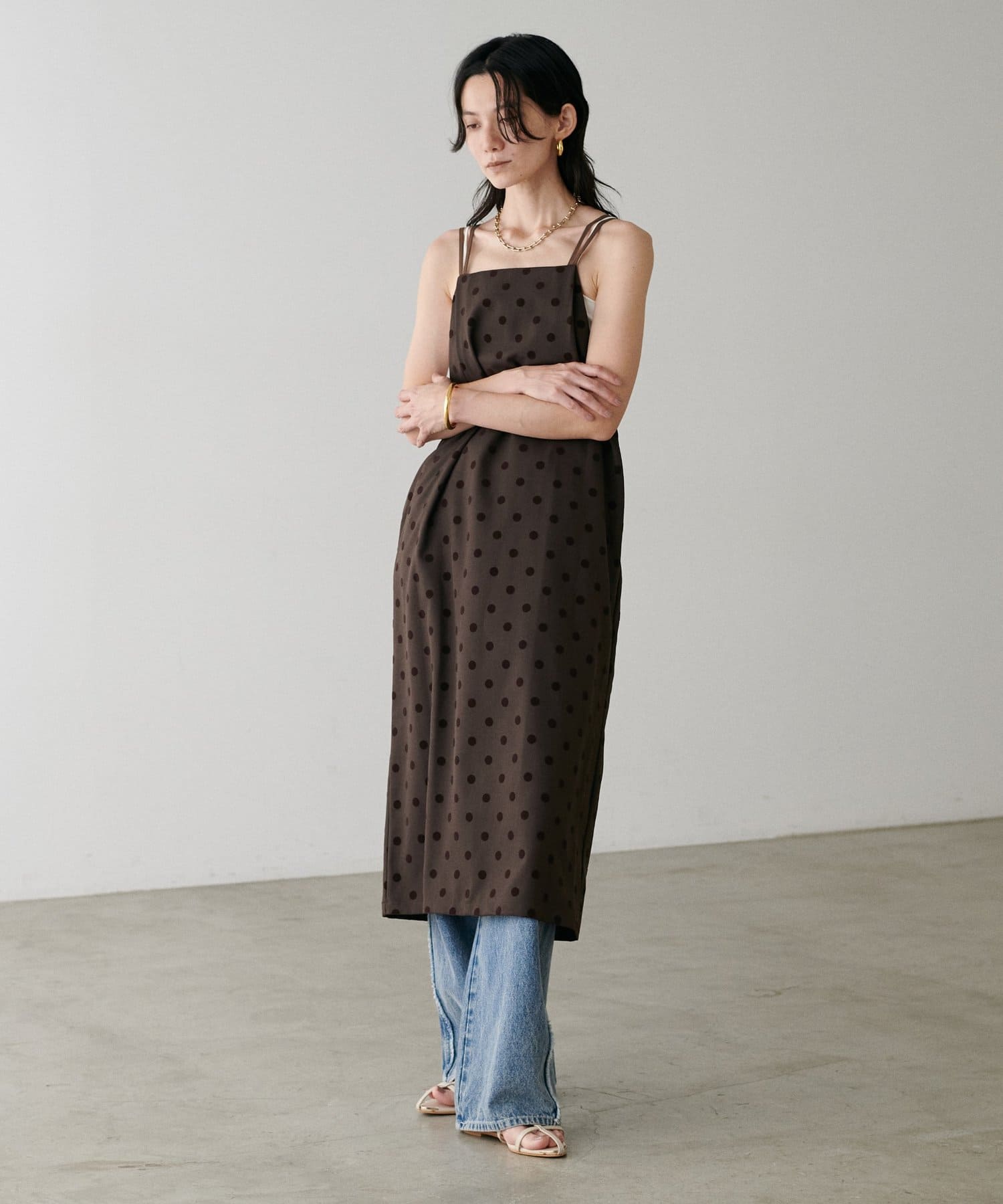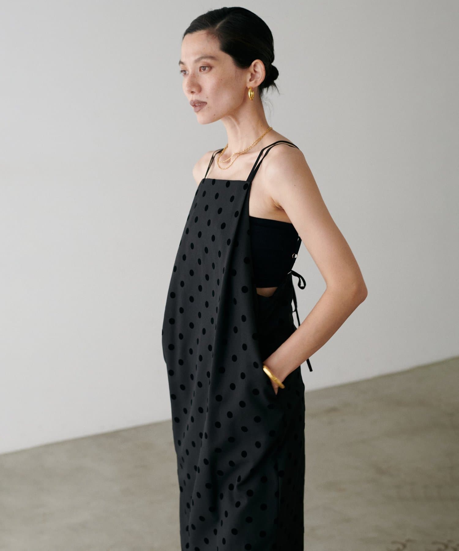 立体感のあるフロッキードットが施されたツイル素材のキャミワンピース。