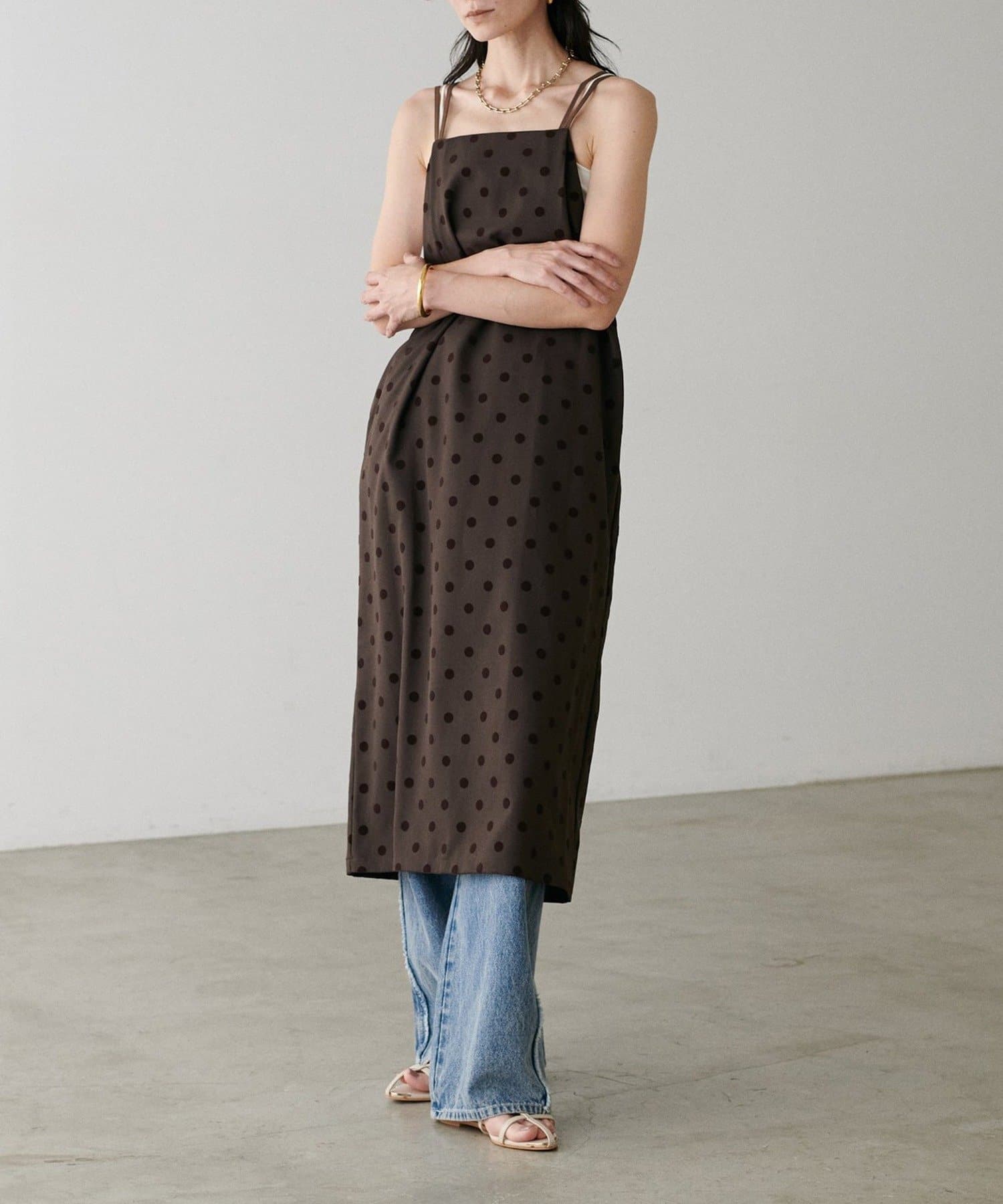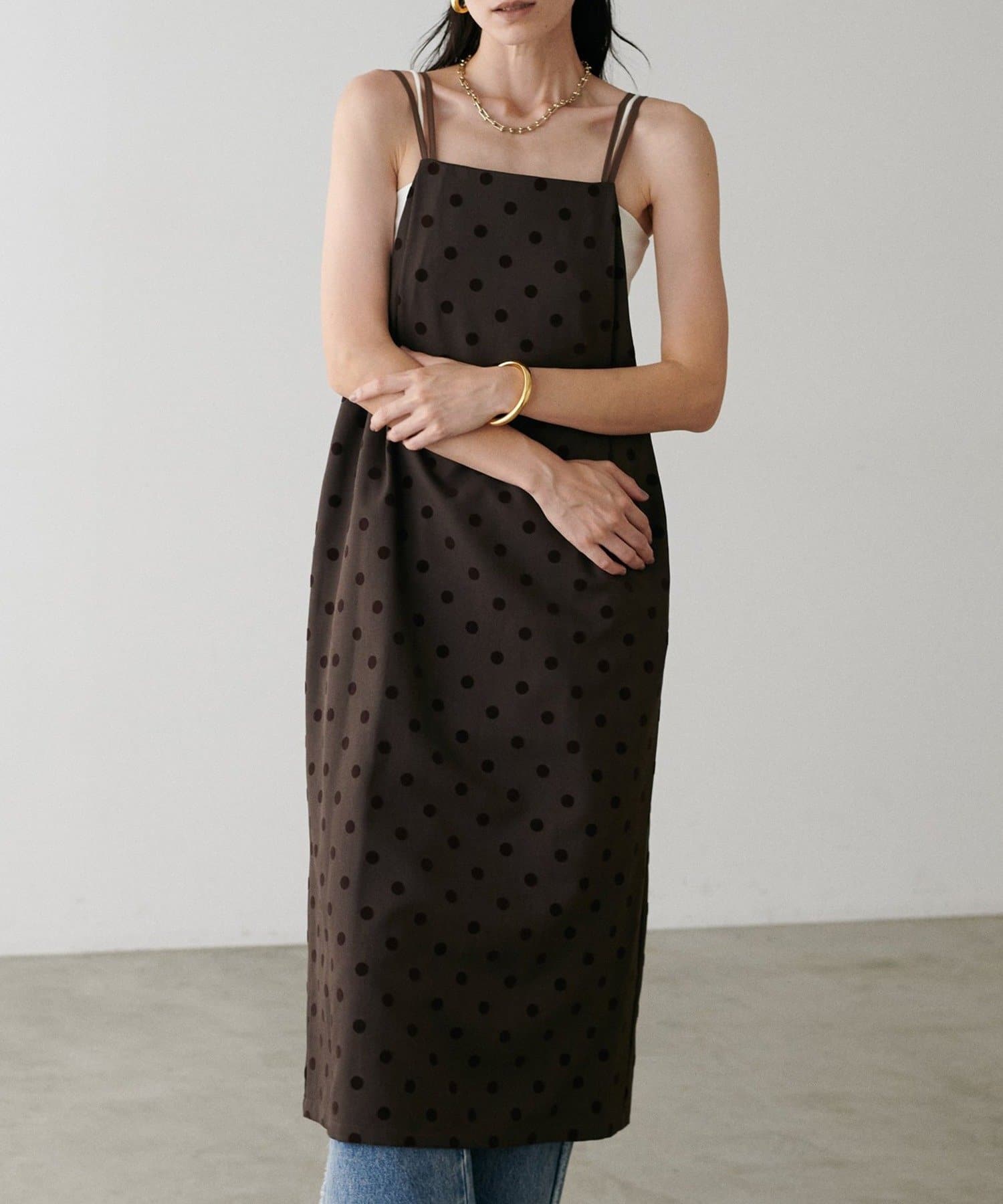 ツイルフロッキードットキャミワンピース
