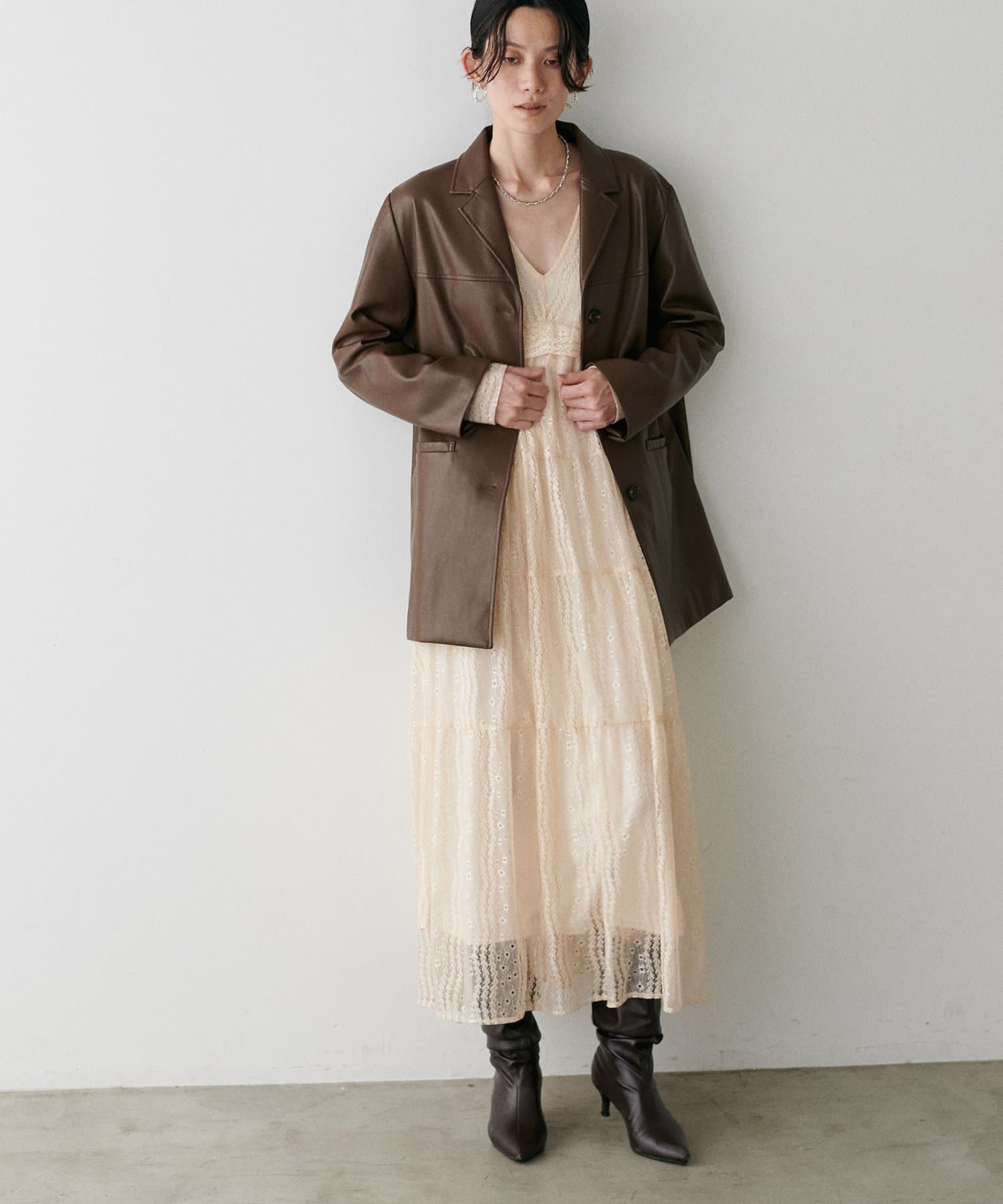 上からテーラードジャケットを羽織ってかっちりと締めたり、