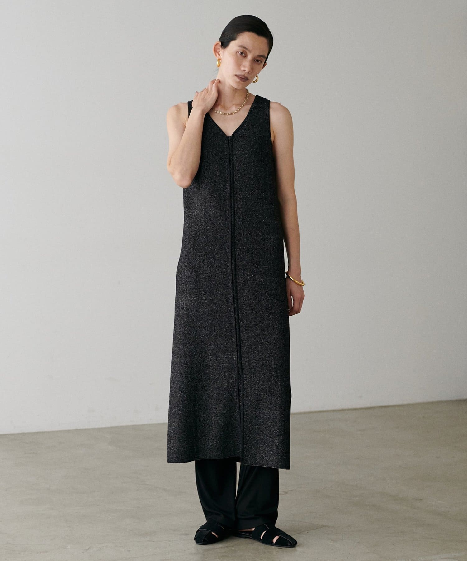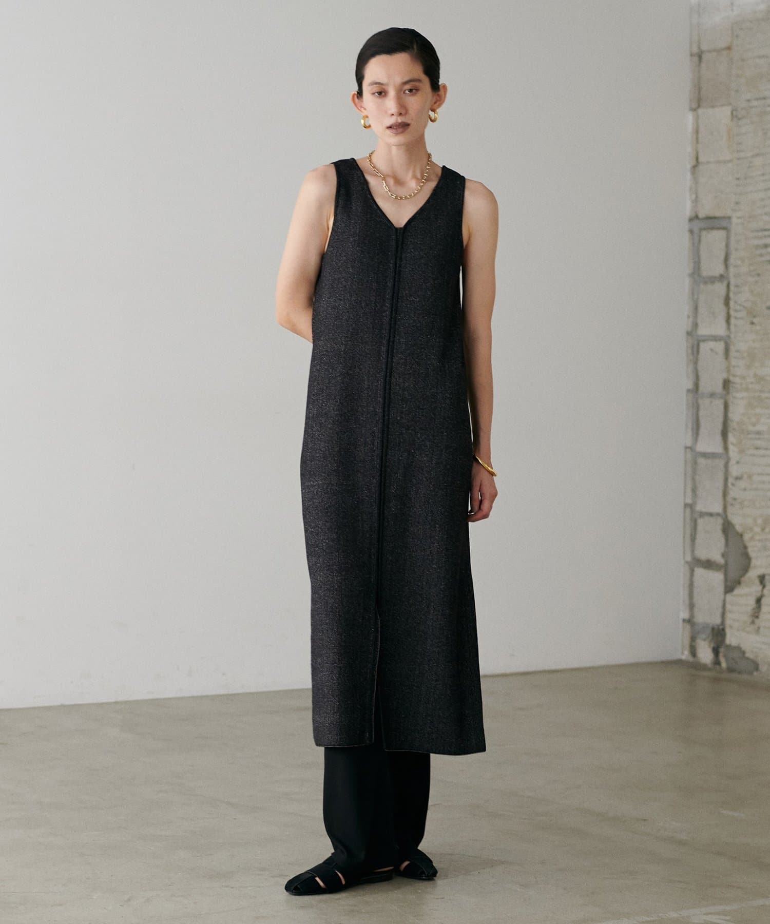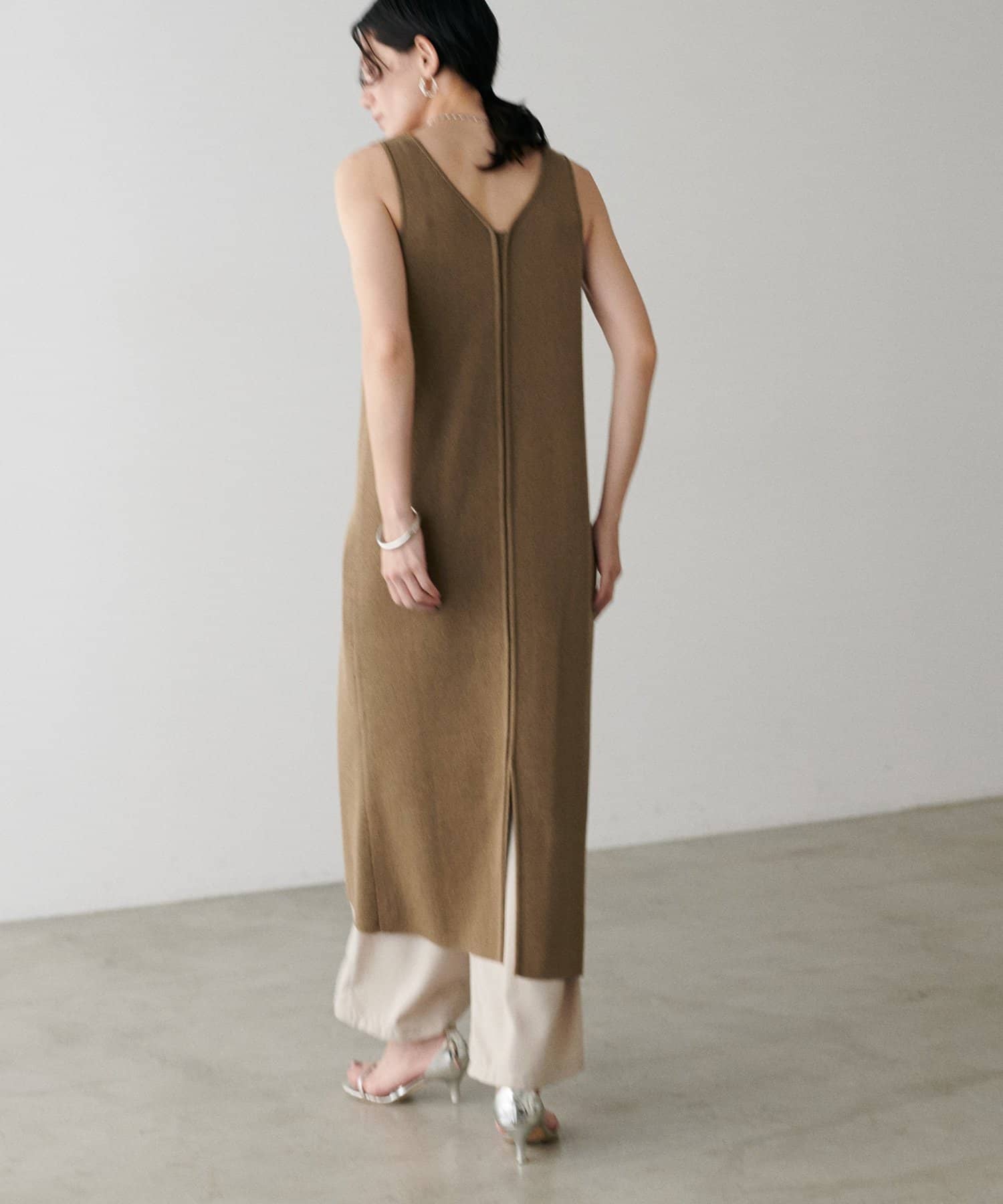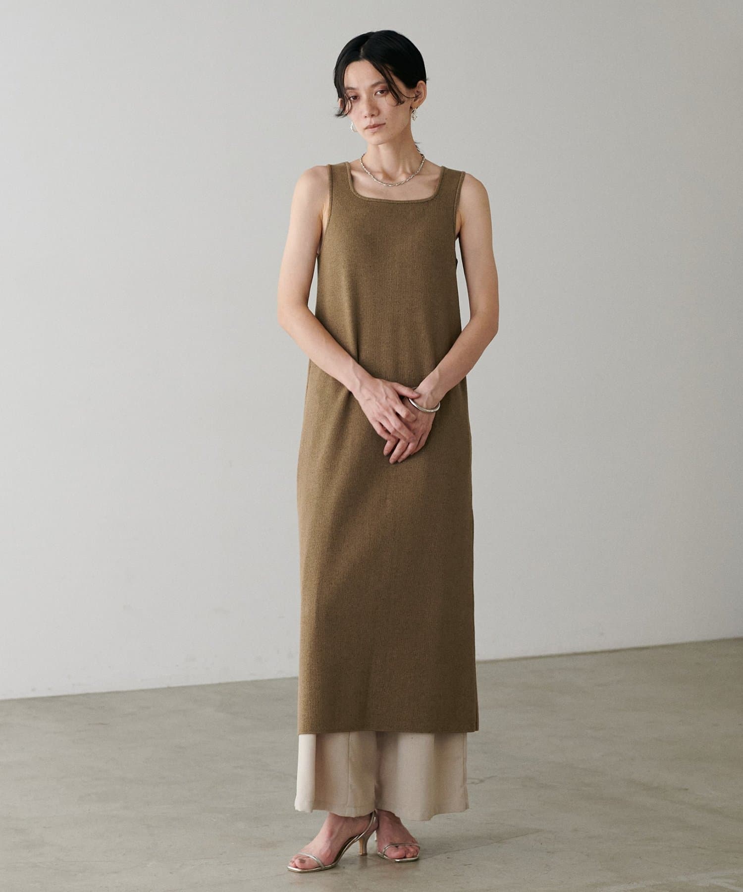 やわらかなメランジカラーの糸で編み立てた、前後2WAY仕様のノースリーブニットワンピース。