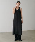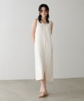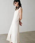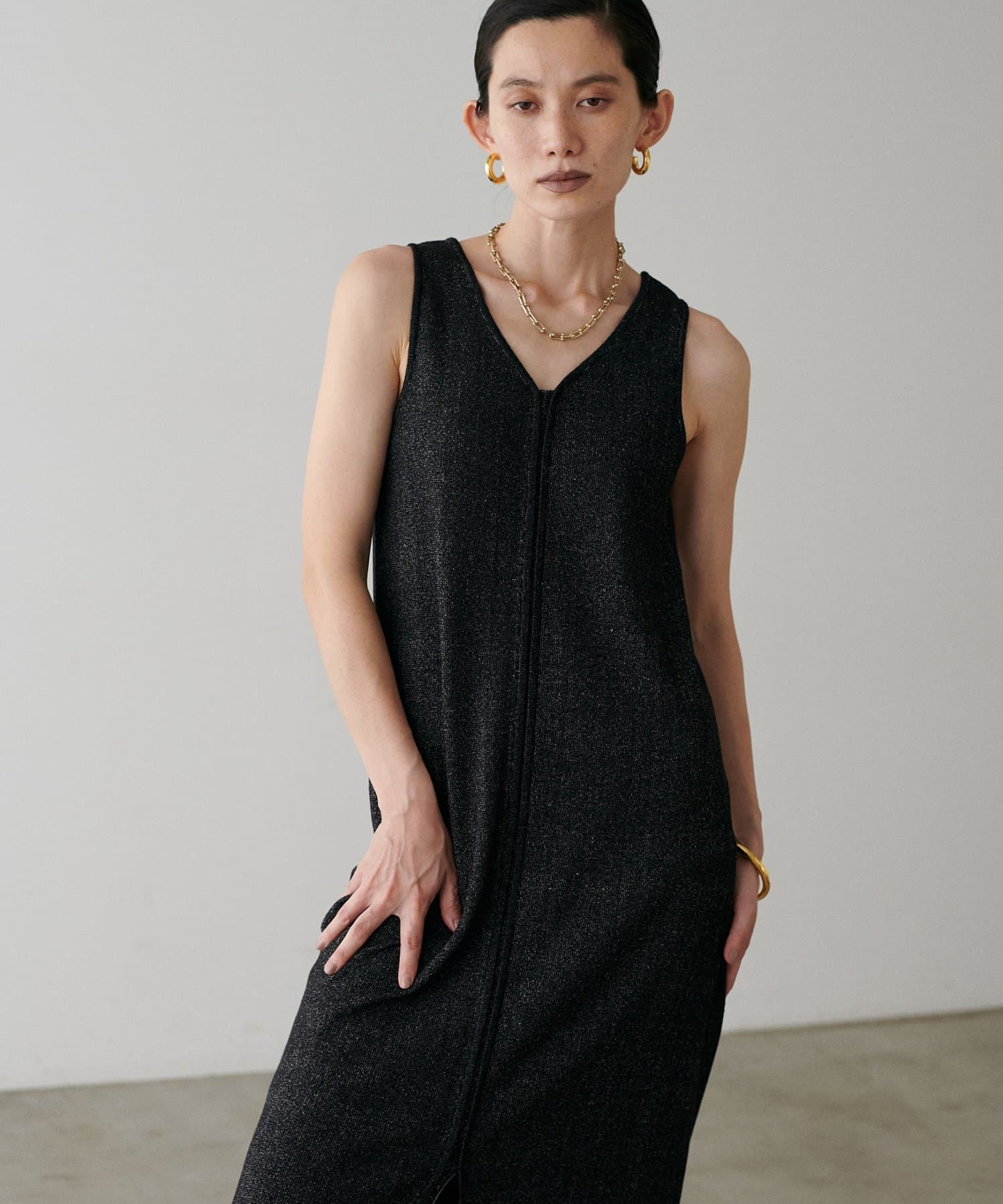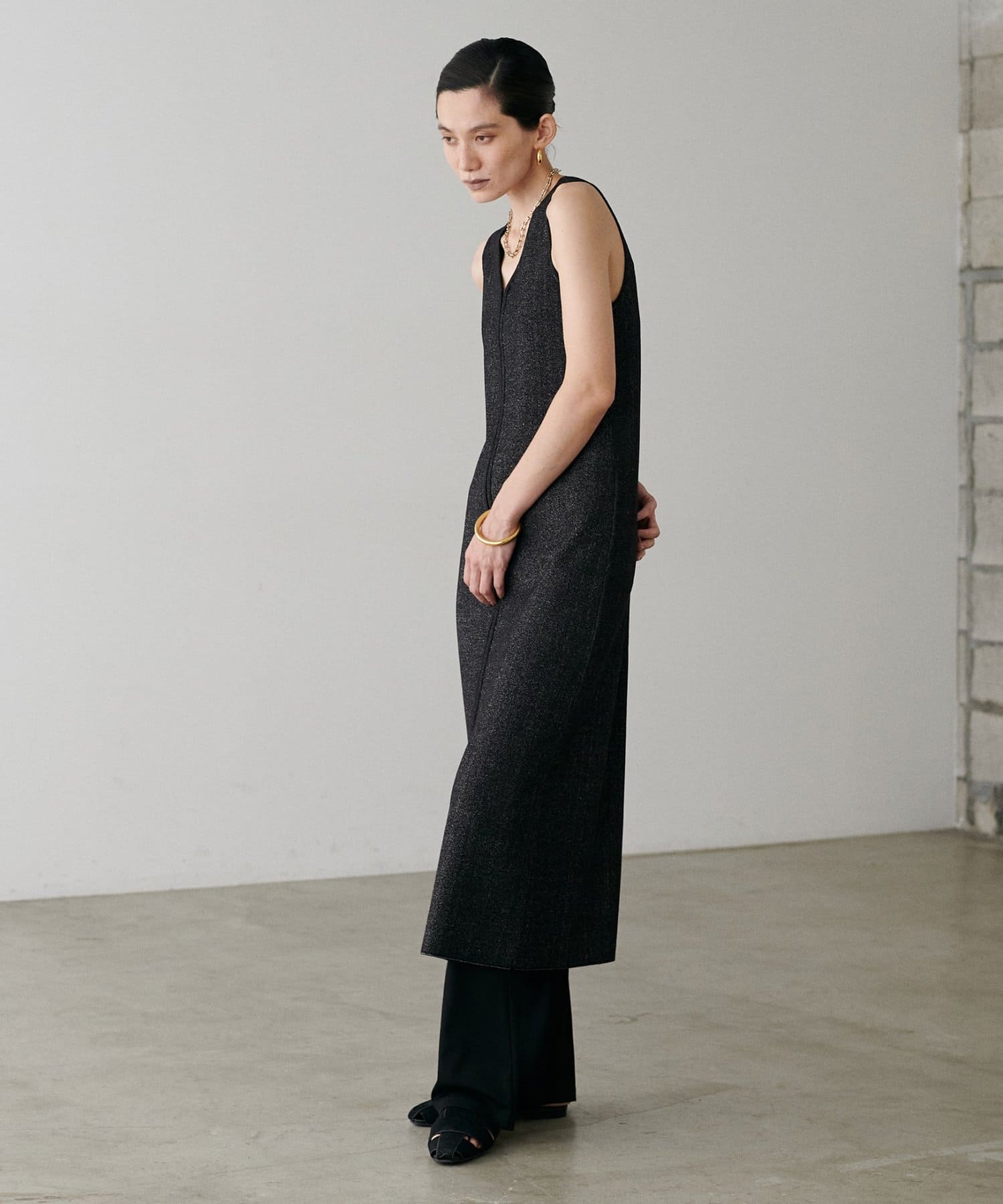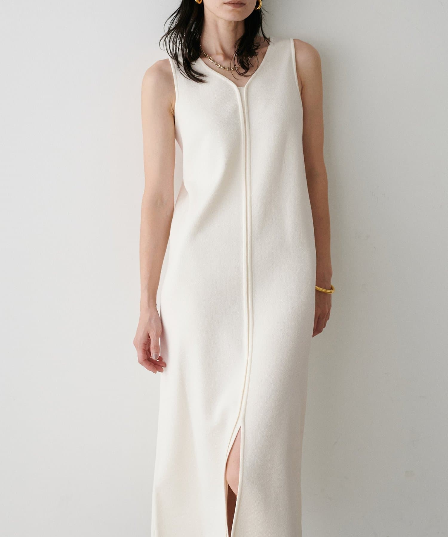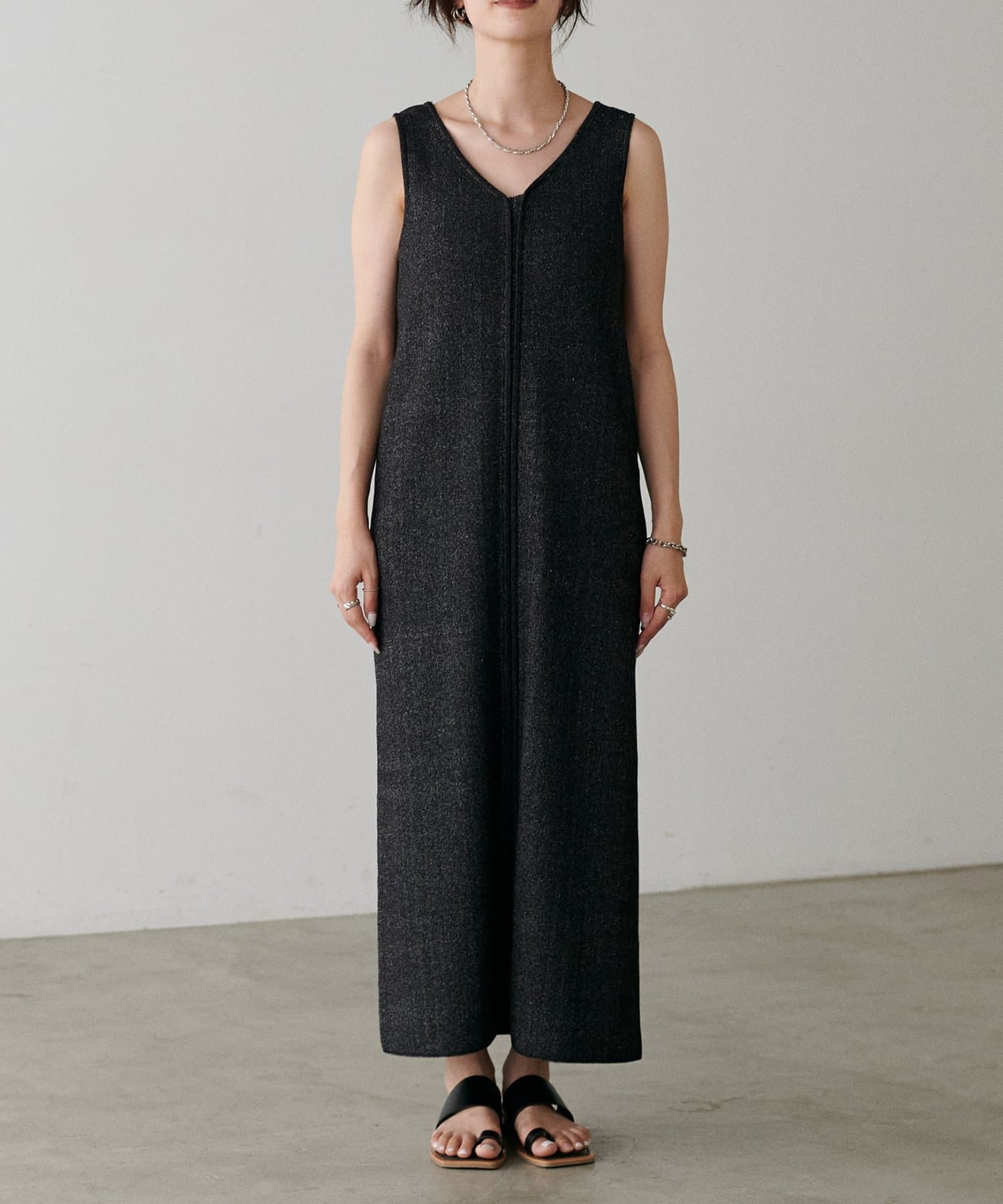 やわらかなメランジカラーの糸で編み立てた、前後2WAY仕様のノースリーブニットワンピース。
