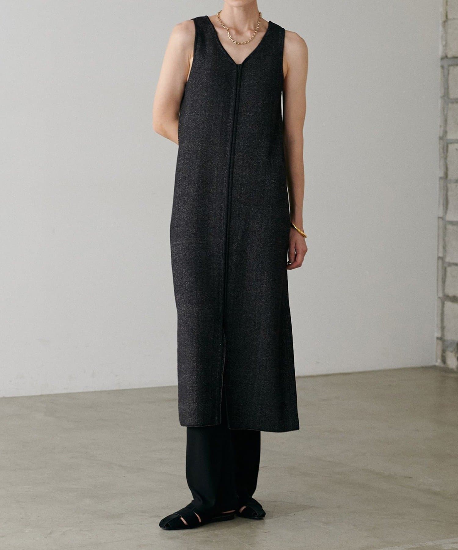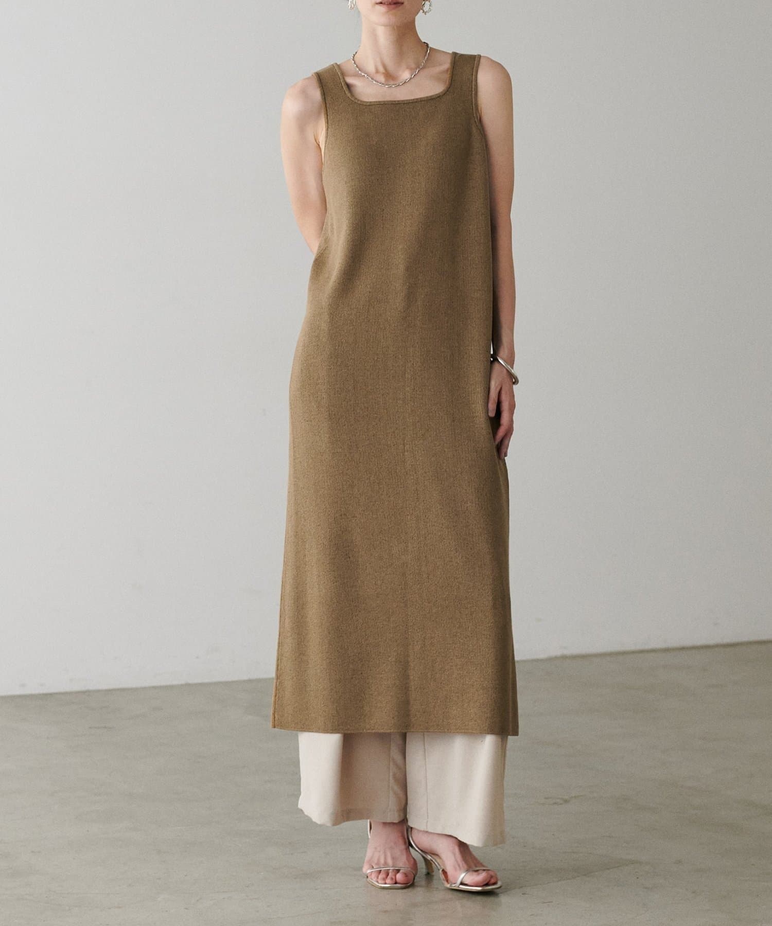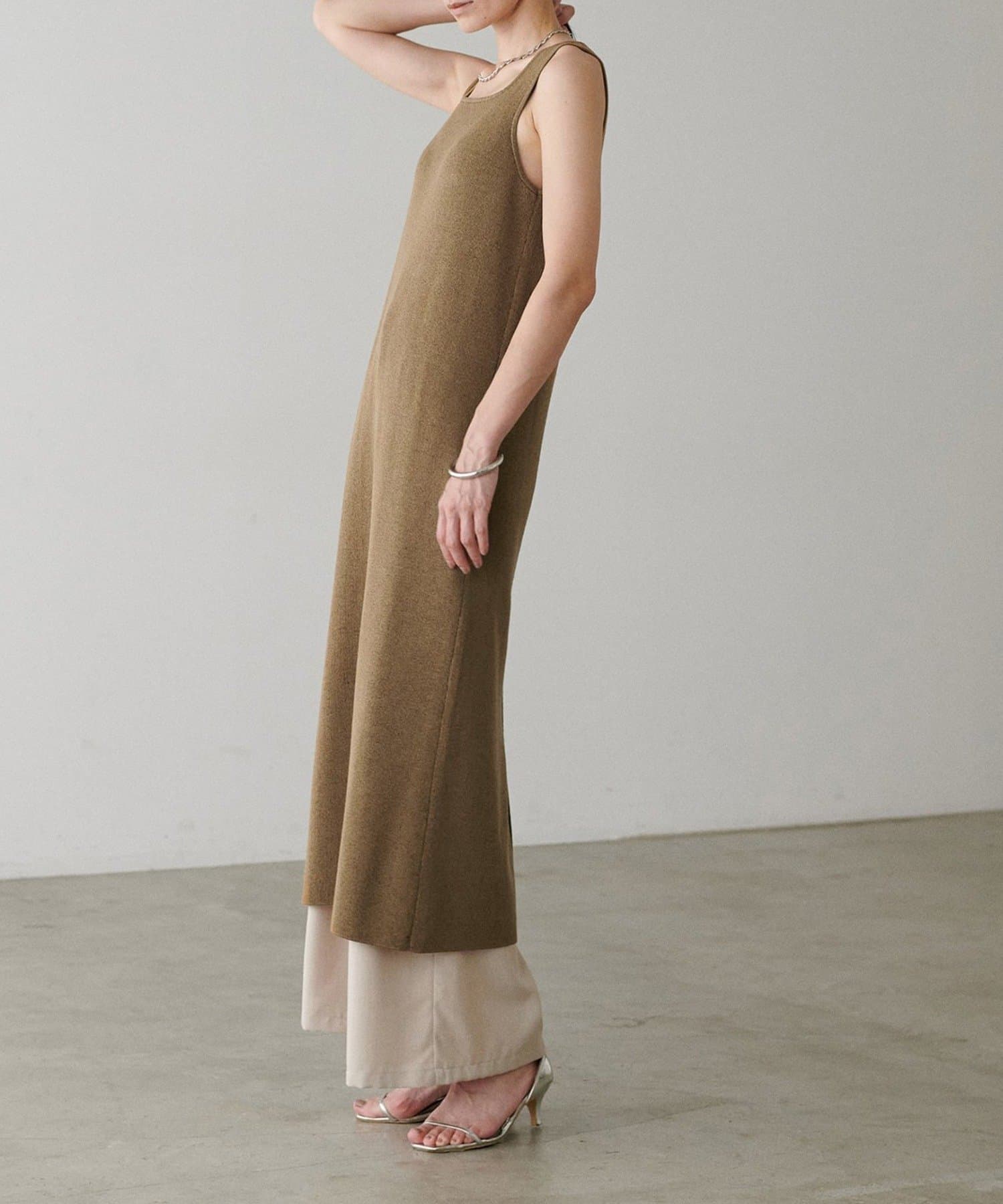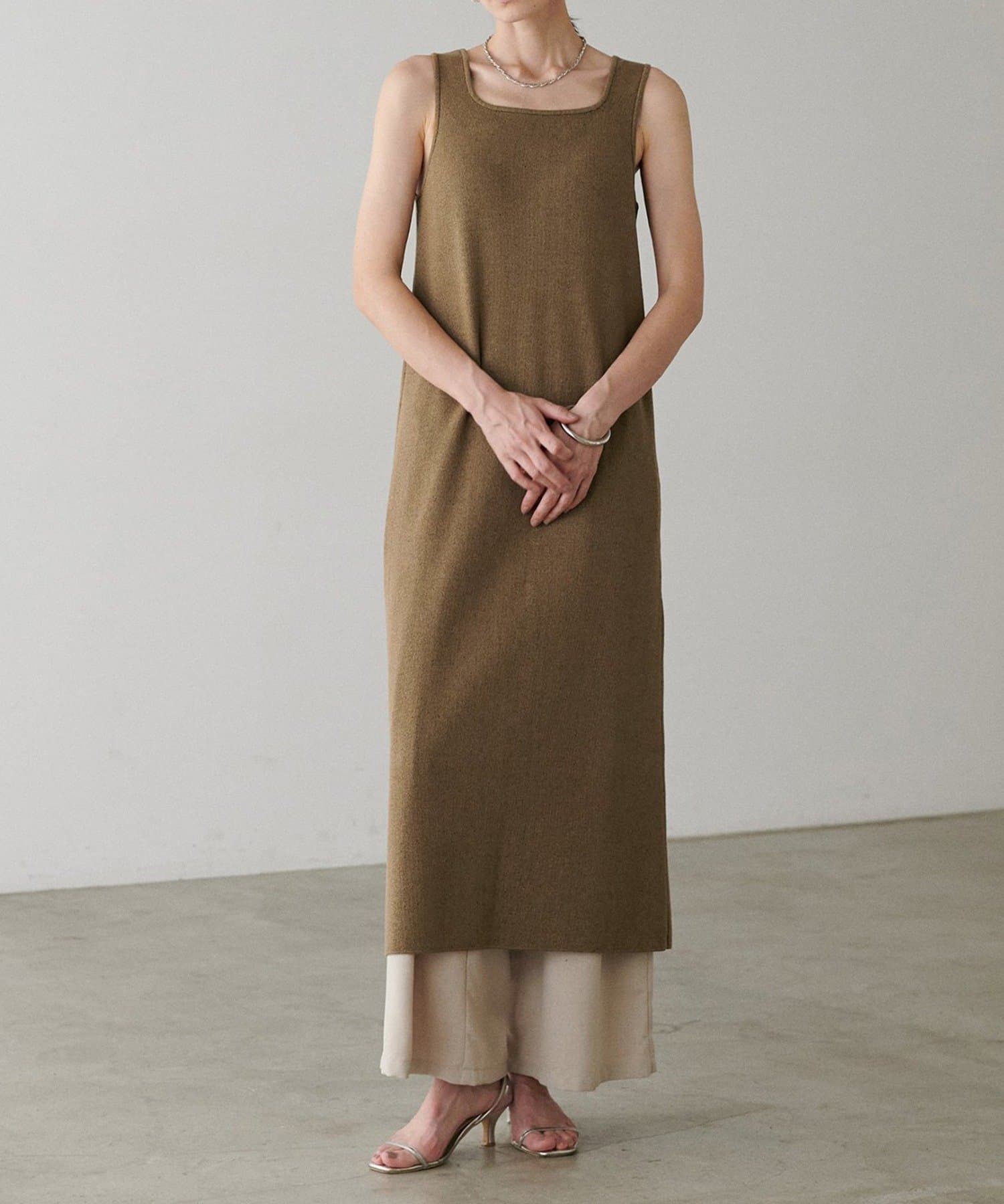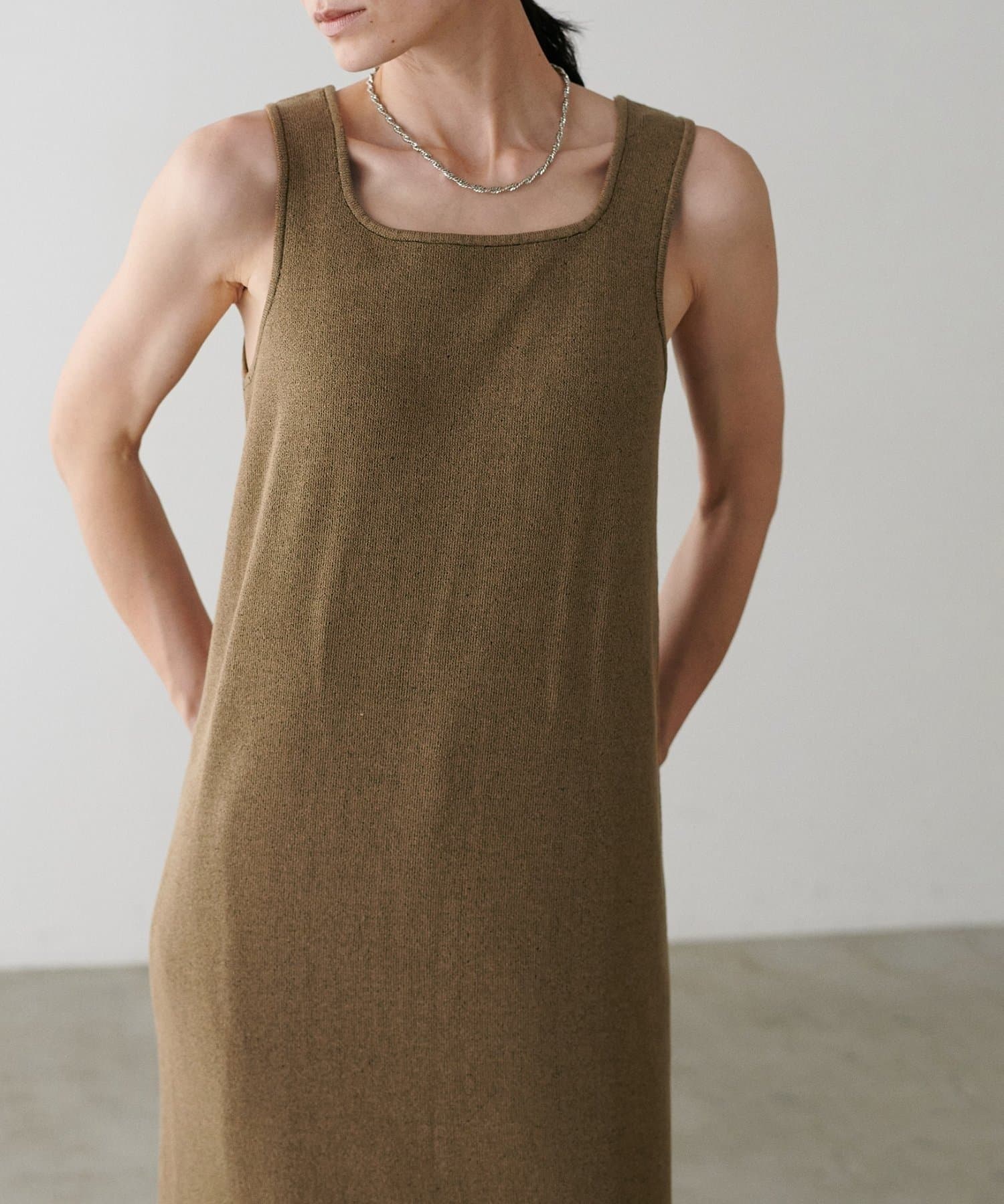 やわらかなメランジカラーの糸で編み立てた、前後2WAY仕様のノースリーブニットワンピース。