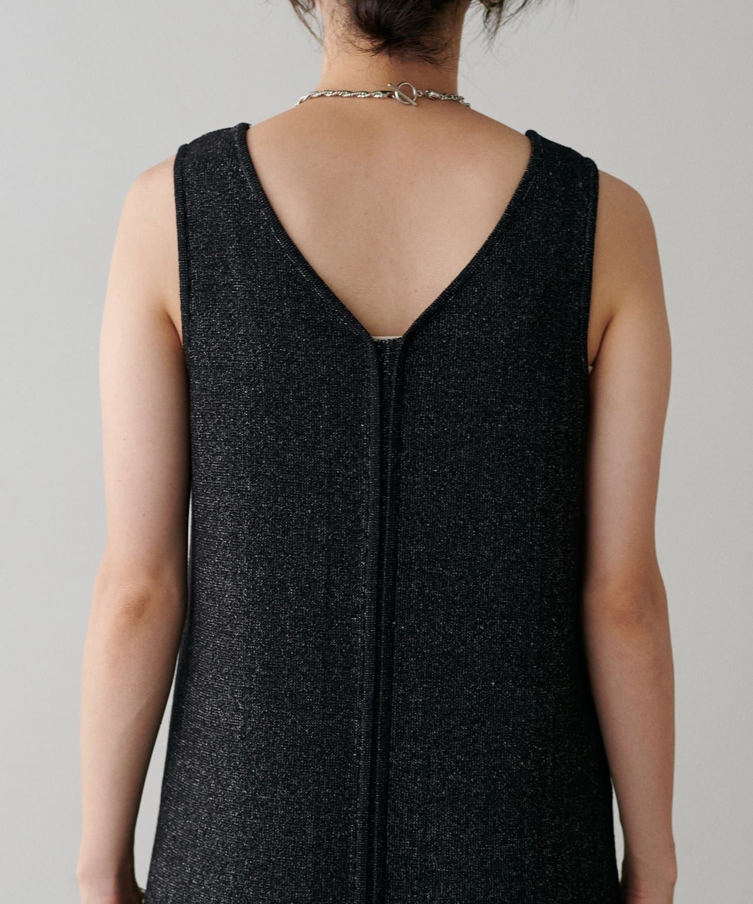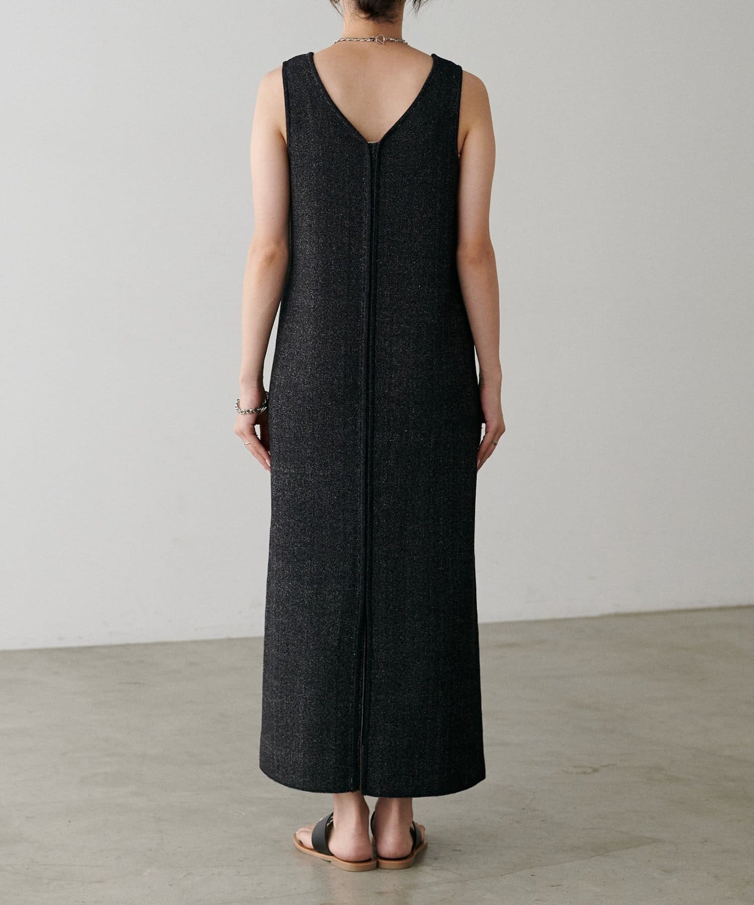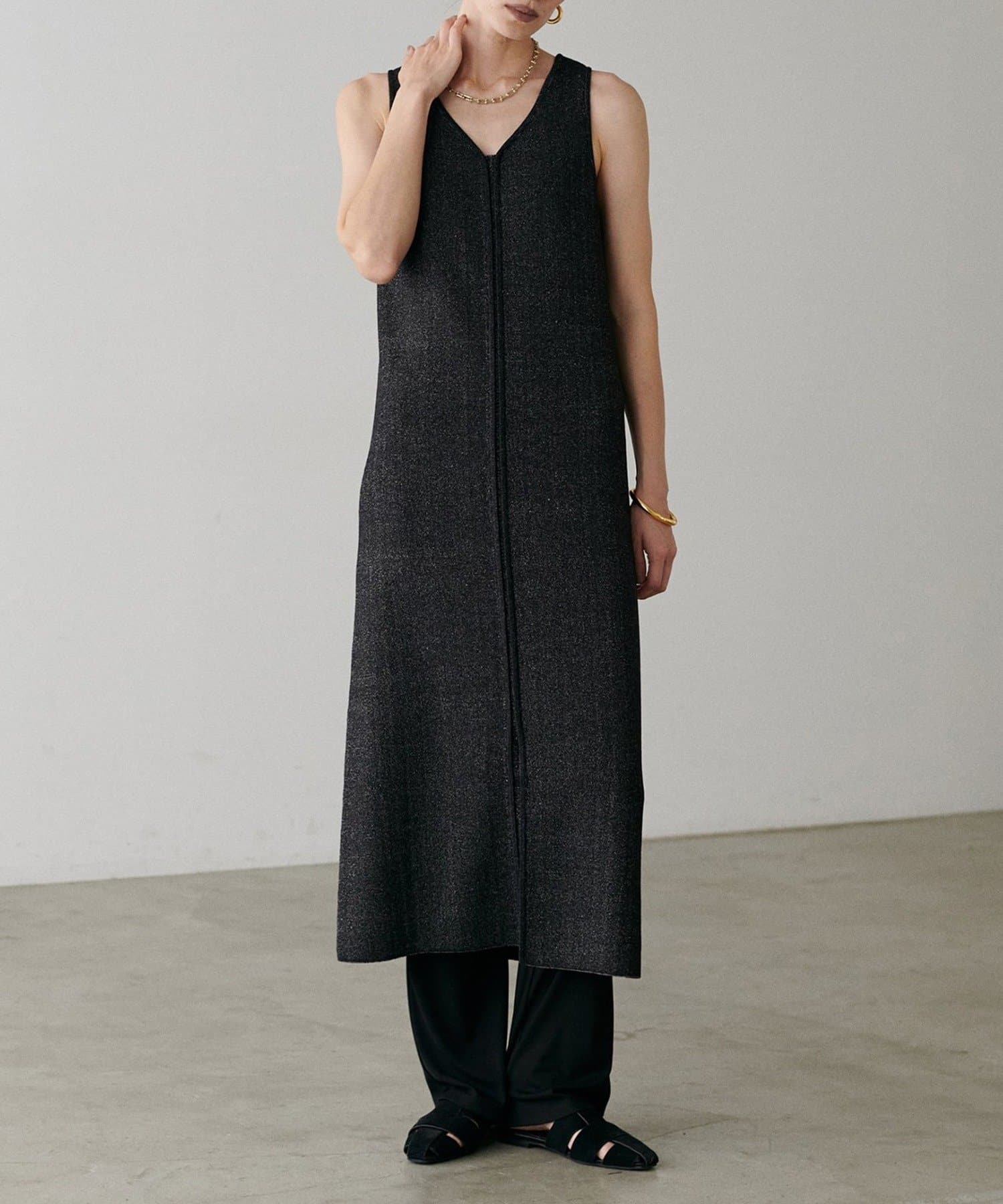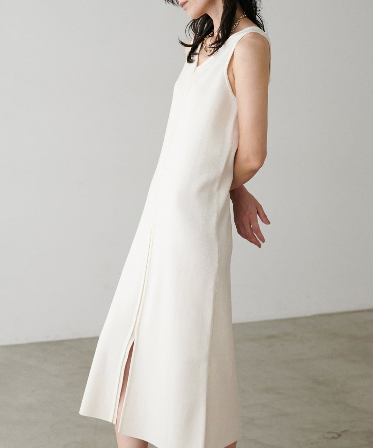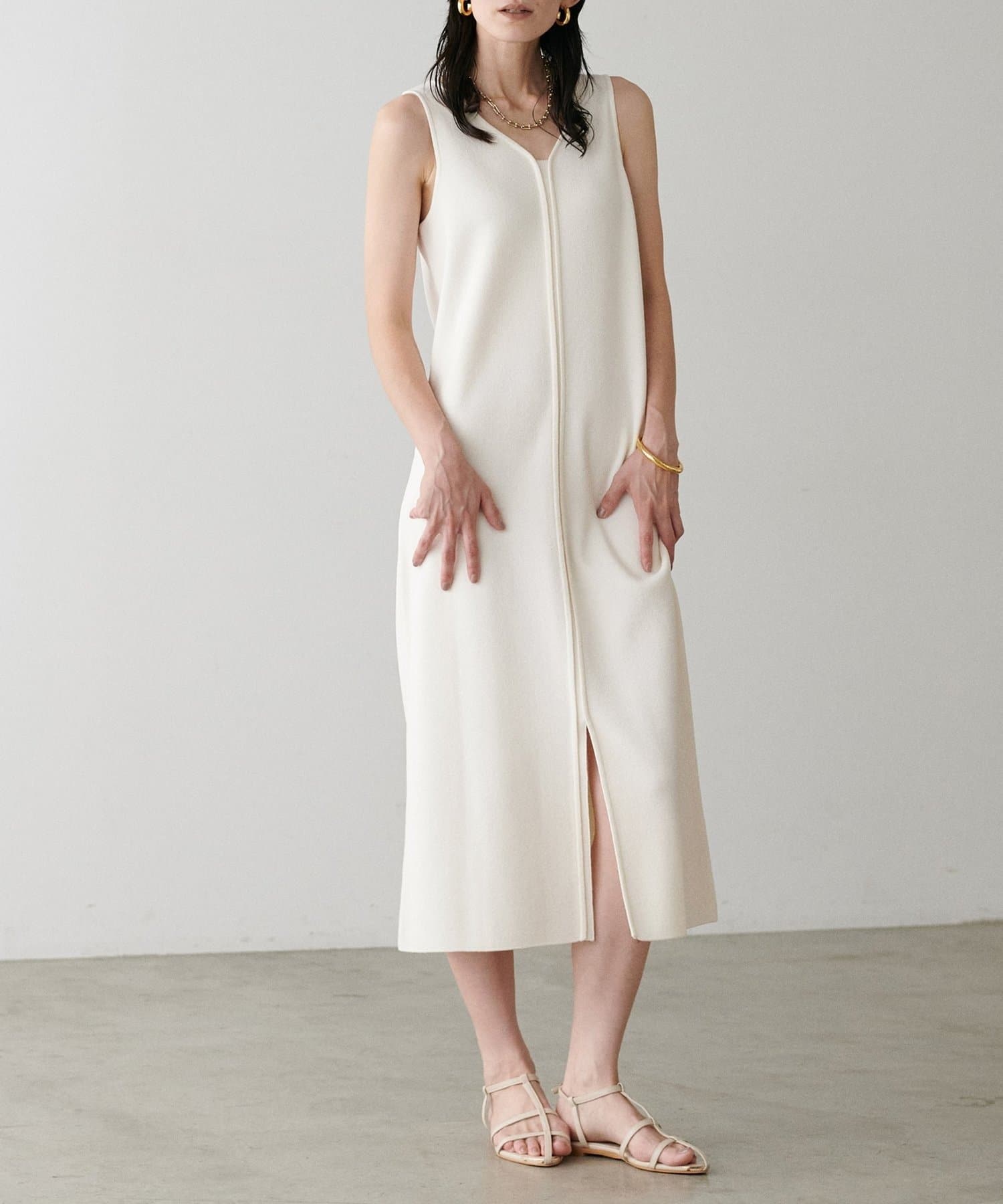 やわらかなメランジカラーの糸で編み立てた、前後2WAY仕様のノースリーブニットワンピース。