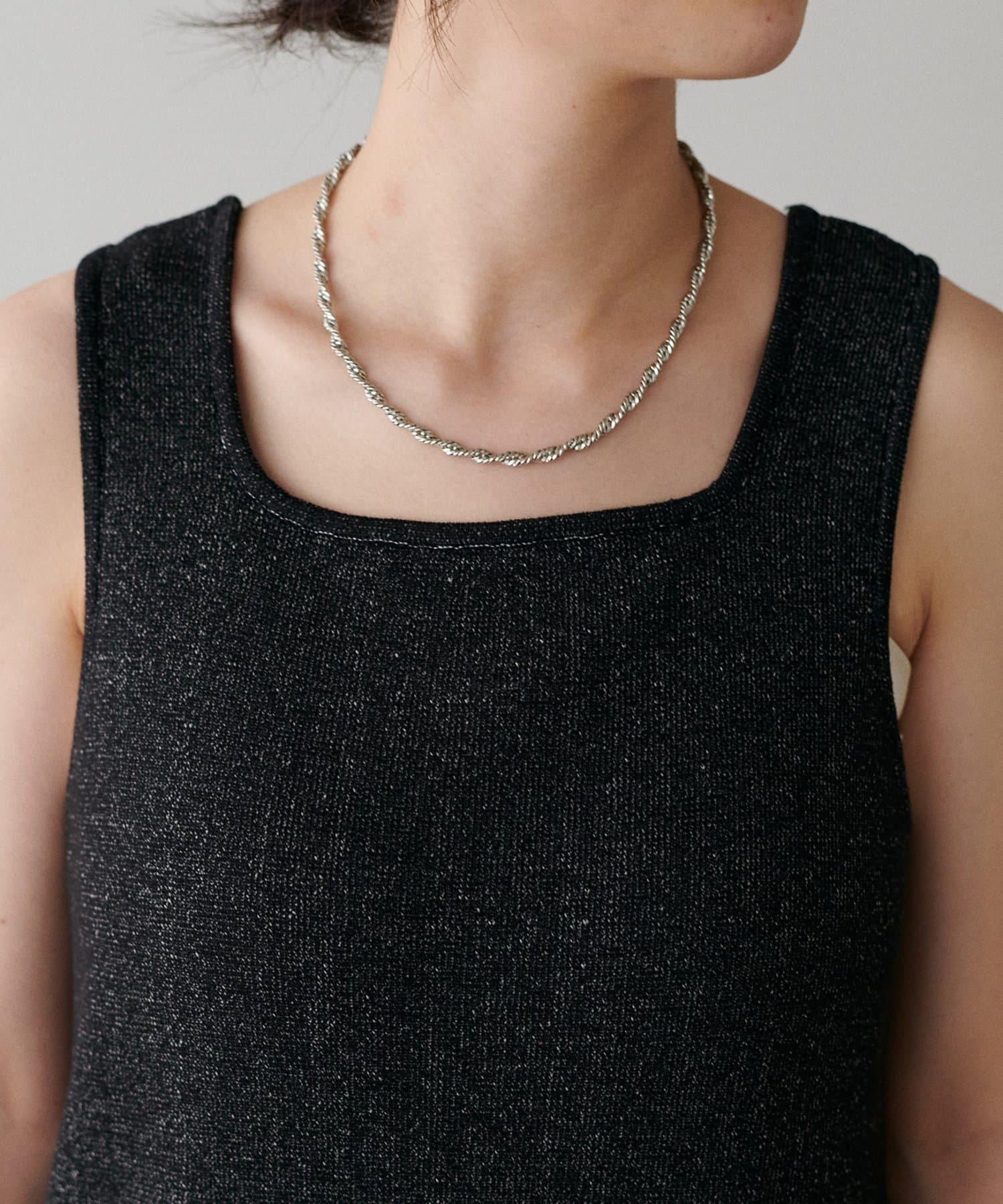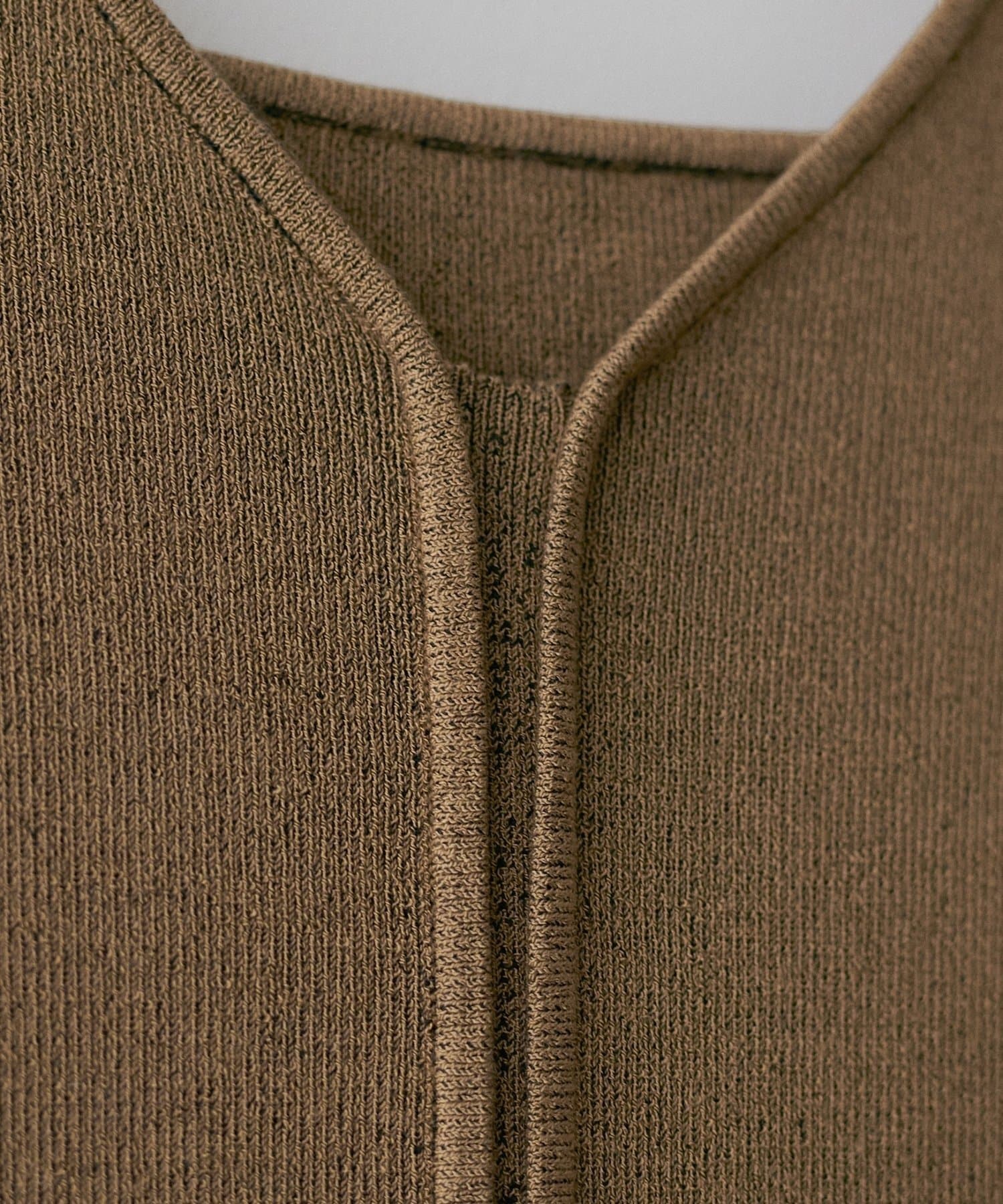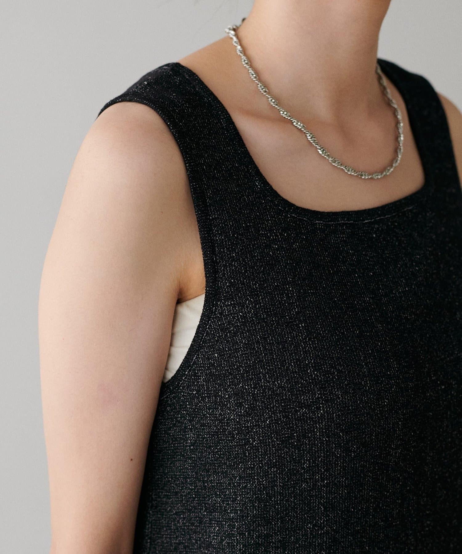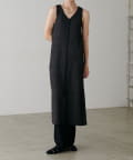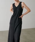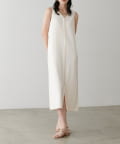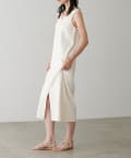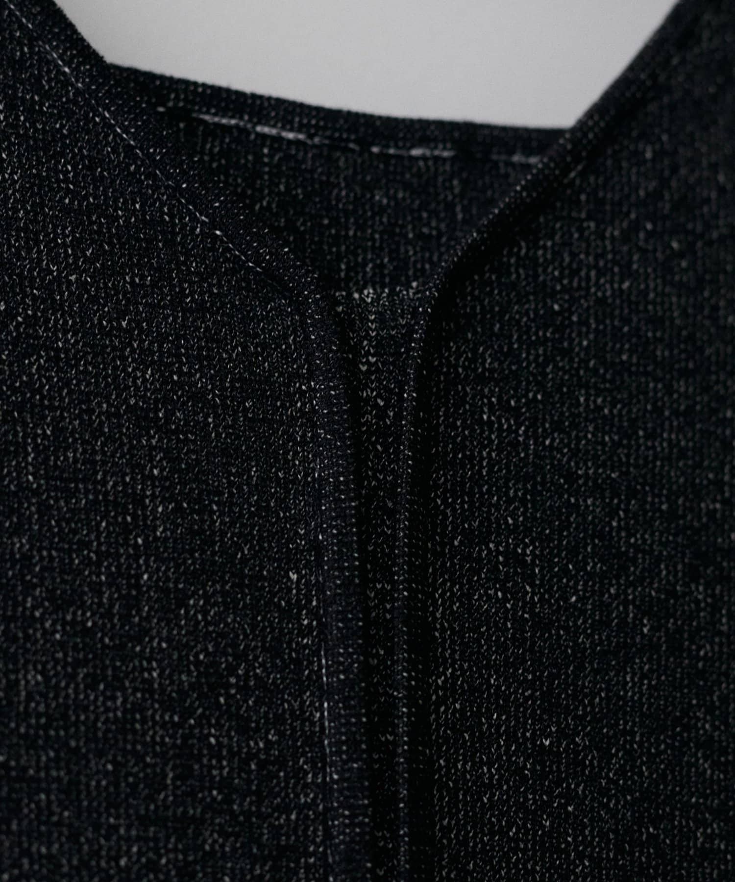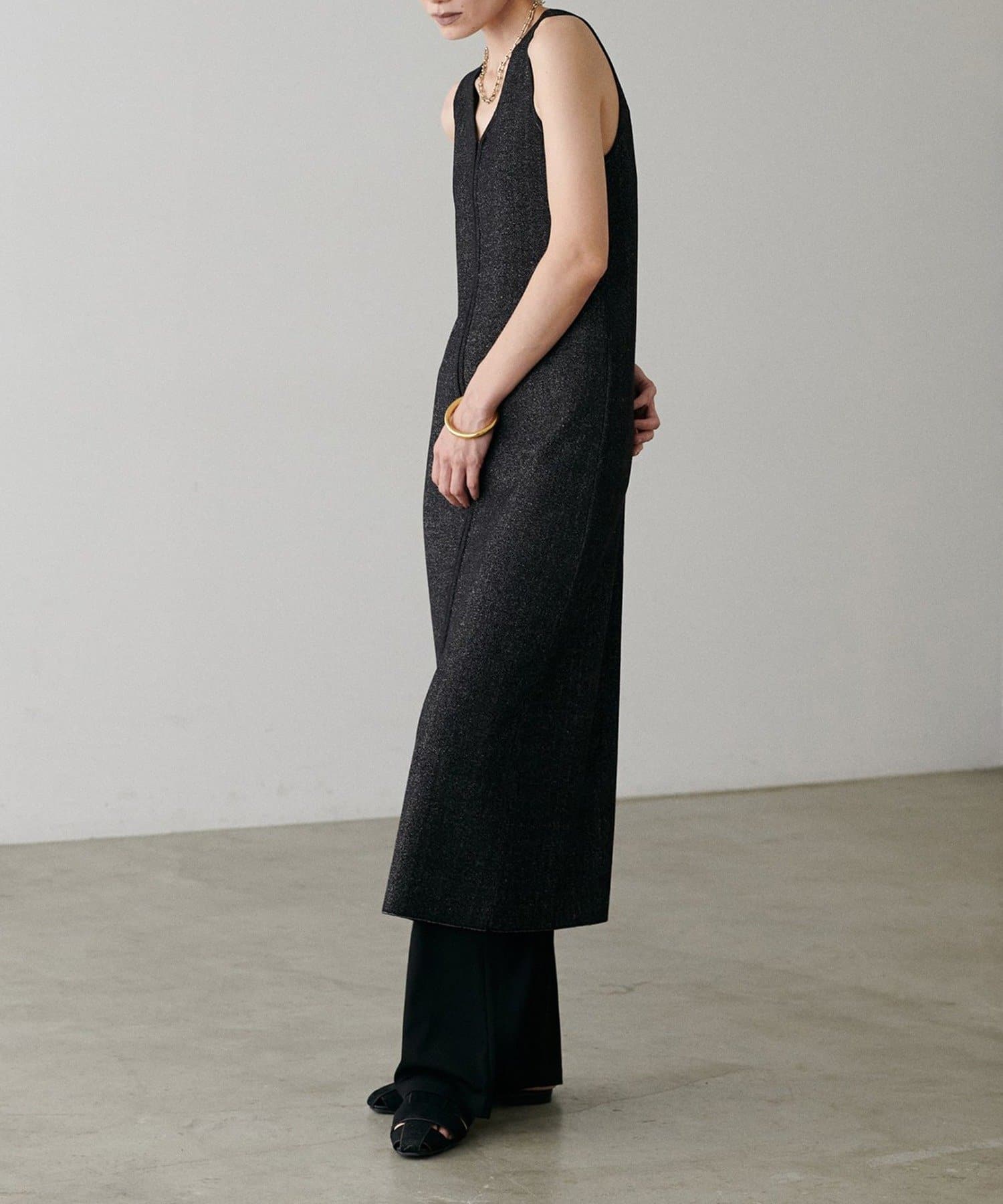 やわらかなメランジカラーの糸で編み立てた、前後2WAY仕様のノースリーブニットワンピース。